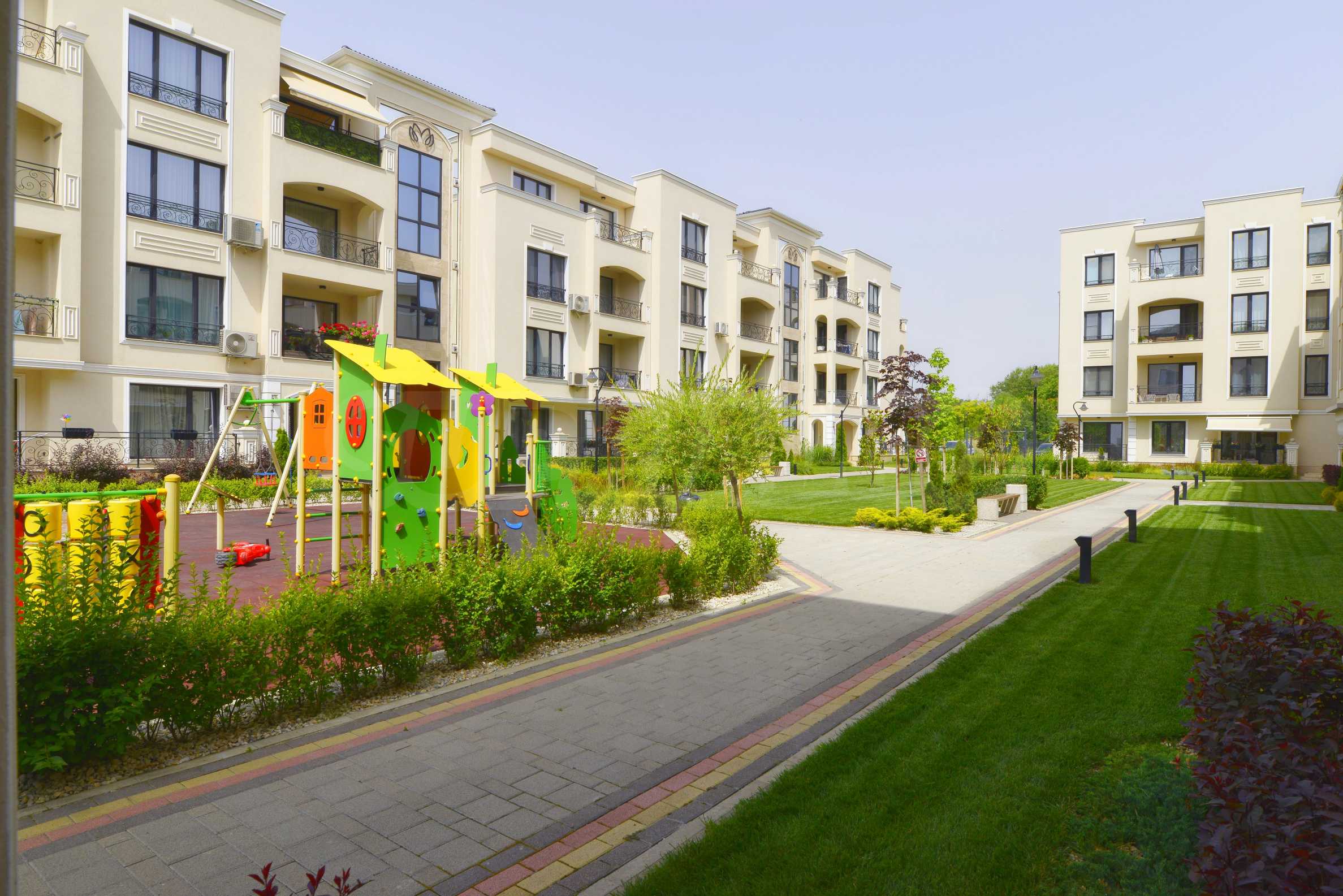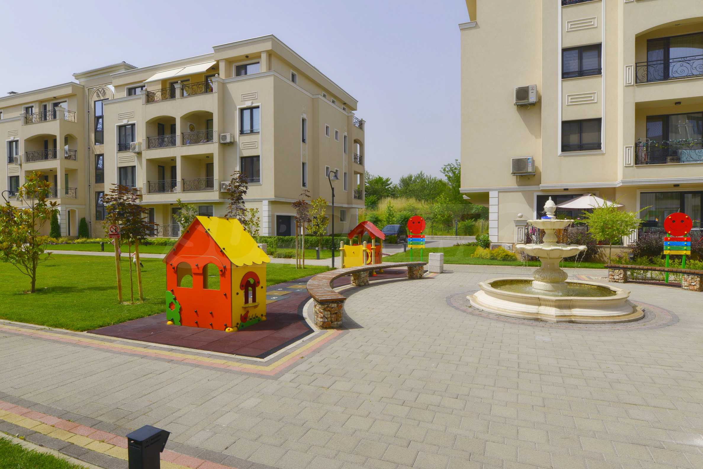 Комплексът предлага богато озеленен вътрешен двор с градини и детска площадка, а околността осигурява бърз достъп до центъра на Пловдив, Mall Plovdiv, училища, спортни зони и уютни кафенета.