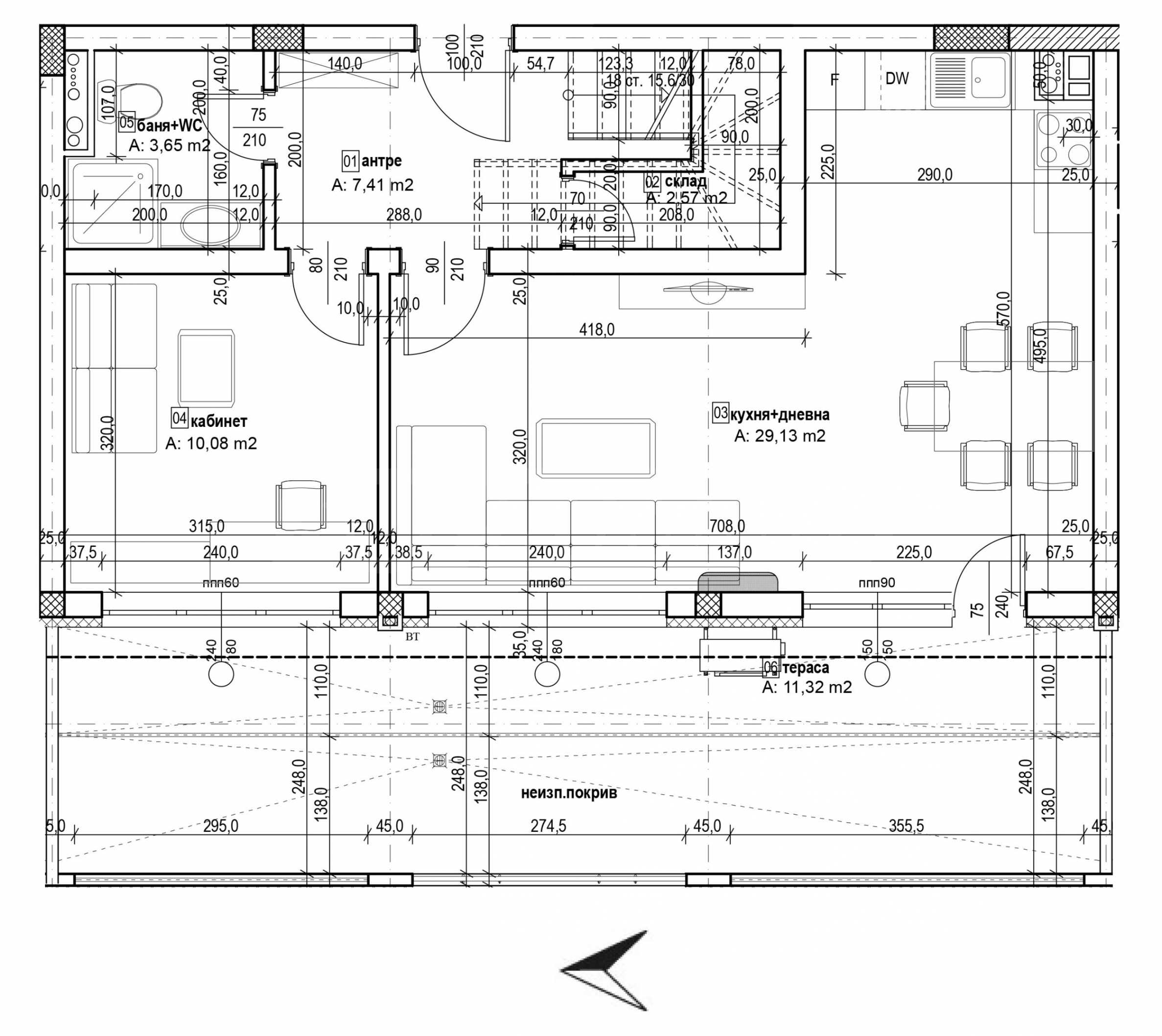 - второ ниво - 117.89 кв.м:три спални, две бани/тоалетни, два дрешника, мокро помещение, коридор, 2 тераси.