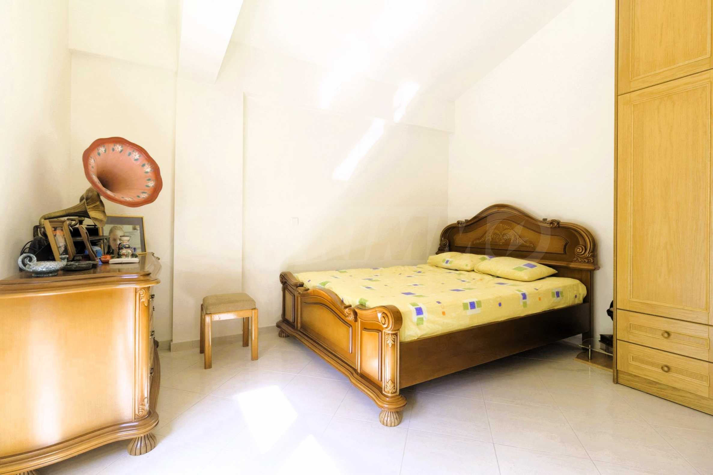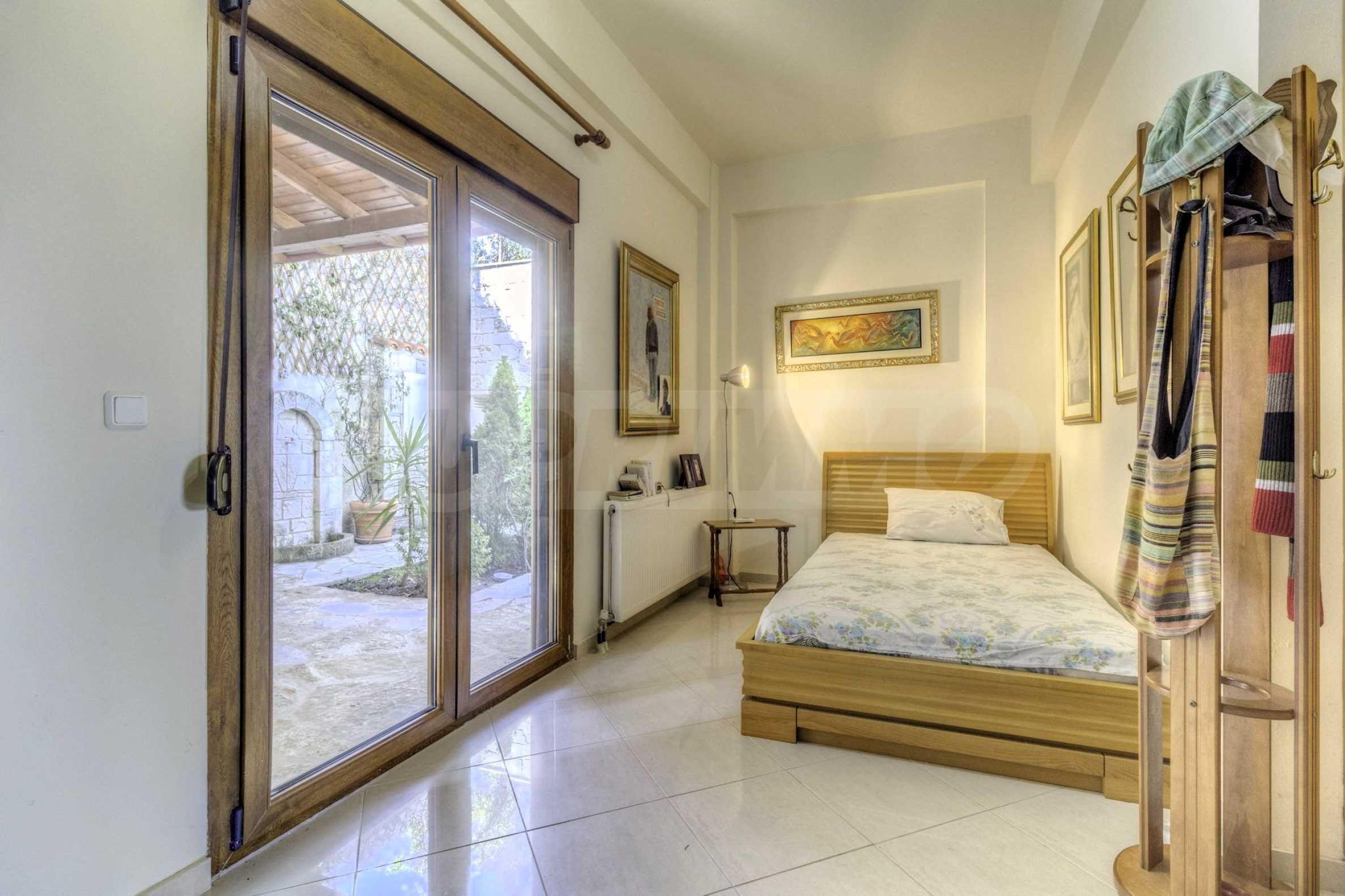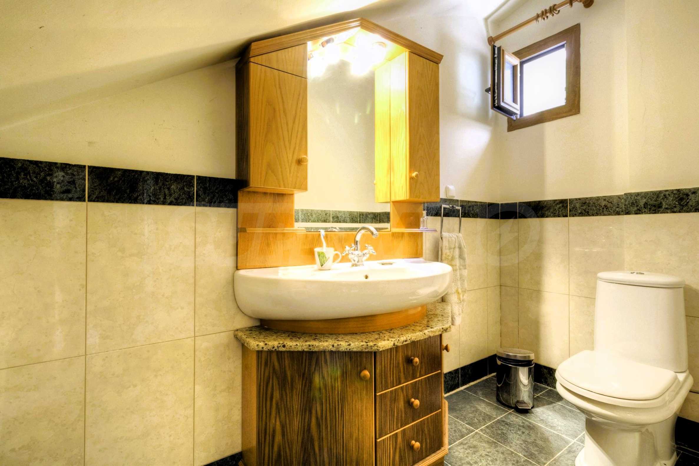 На първо ниво (приземен етаж) има голяма всекидневна с камина, прецизно обзаведена кухня, оборудвана с всички необходими уреди (от марката Miele), просторна баня и спалня. Спалнята има достъп до задния двор, където има уютно барбекю с беседка и трапезна маса с градински мебели. На второ ниво има две мансардни спални, всяка със собствен санитарен възел. Всички стаи и помещения са обзаведени стилно с внимание към всеки детайл с най-качествените материали.
