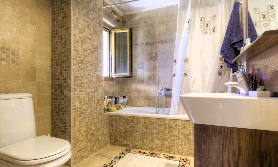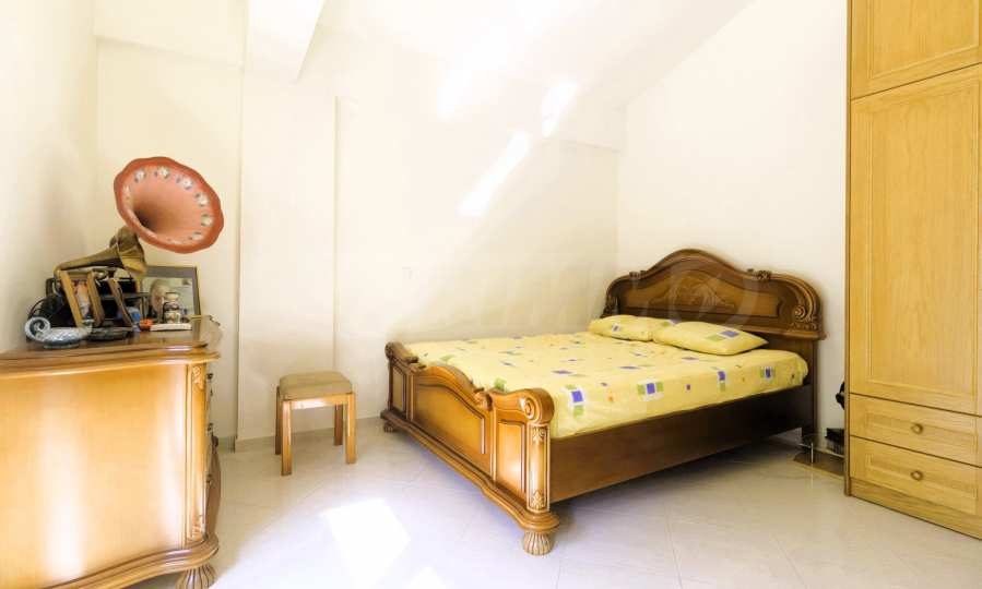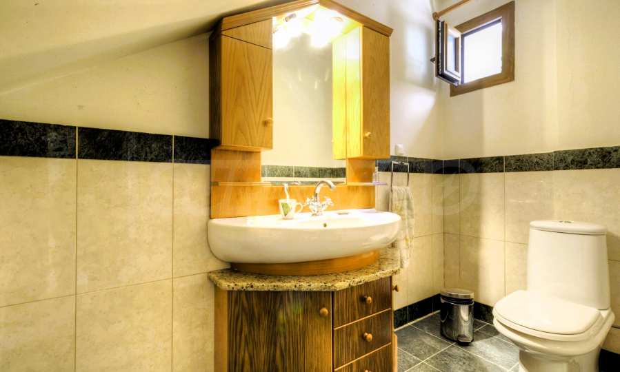 С три спални и три бани с тоалетни, къщата е разделена на две нива с обща застроена площ 150 кв.м. и градина с площ 341 кв.м. Имотът е със следното разпределение: