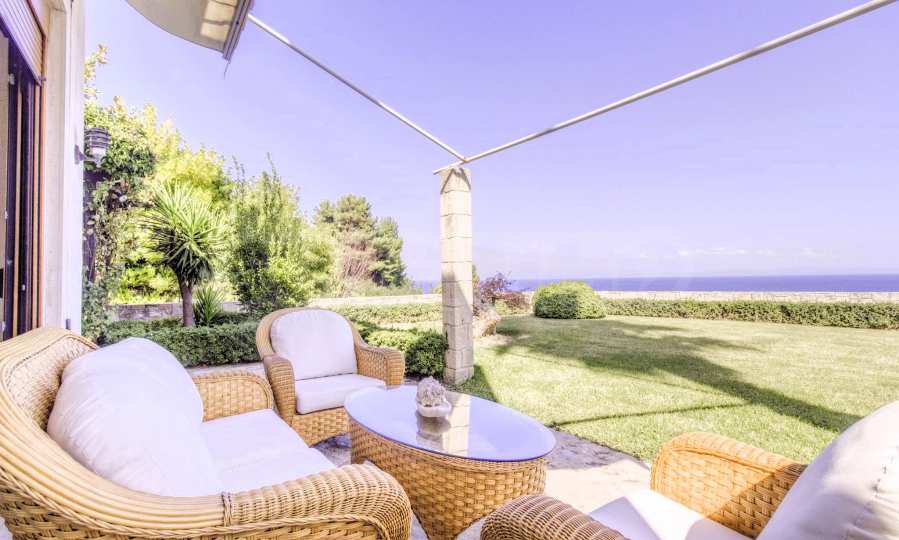 Едно от най-атрактивните места в къщата е предната веранда на първия етаж, със спираща дъха, безкрайна гледка към морето.