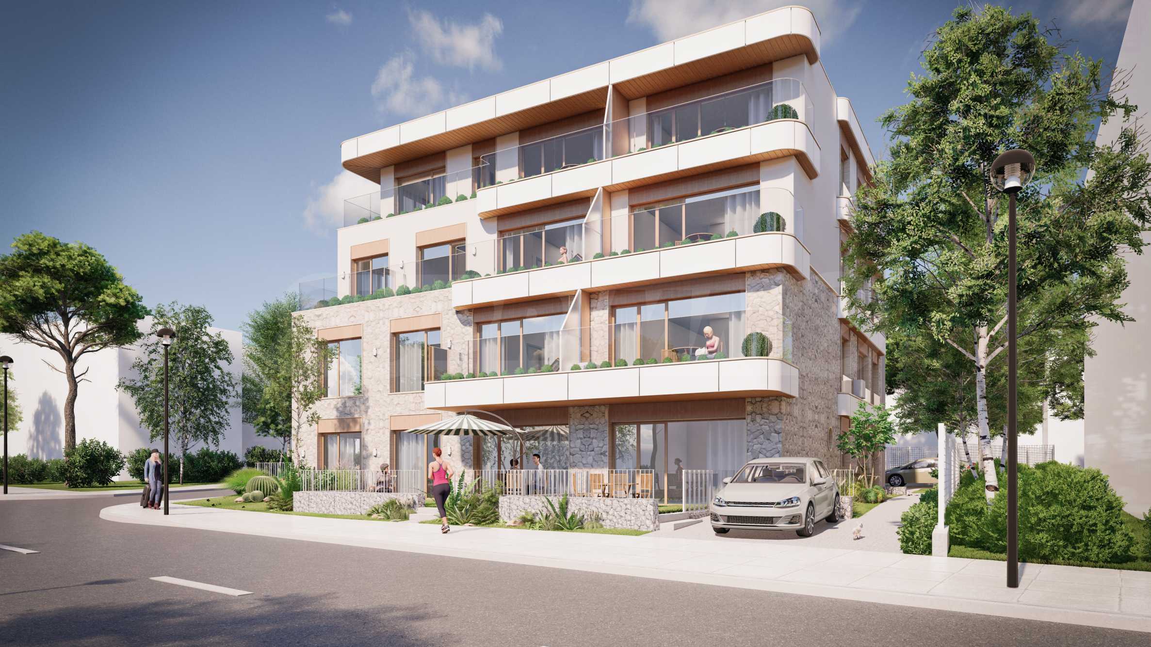 Представяме за продажба двустаен апартамент в нова, кокетна сграда на 2 мин пеша от плажа в Черноморец.