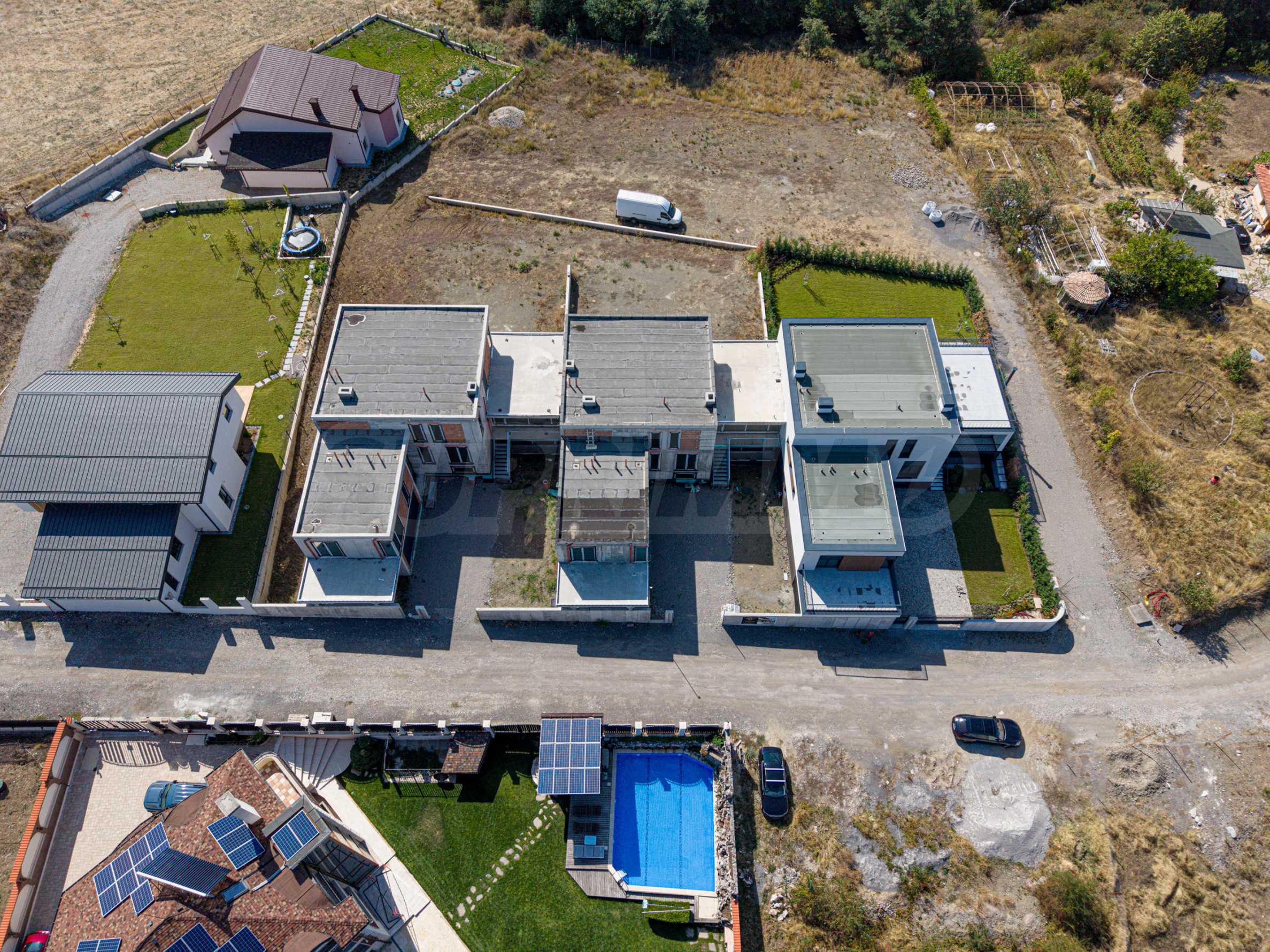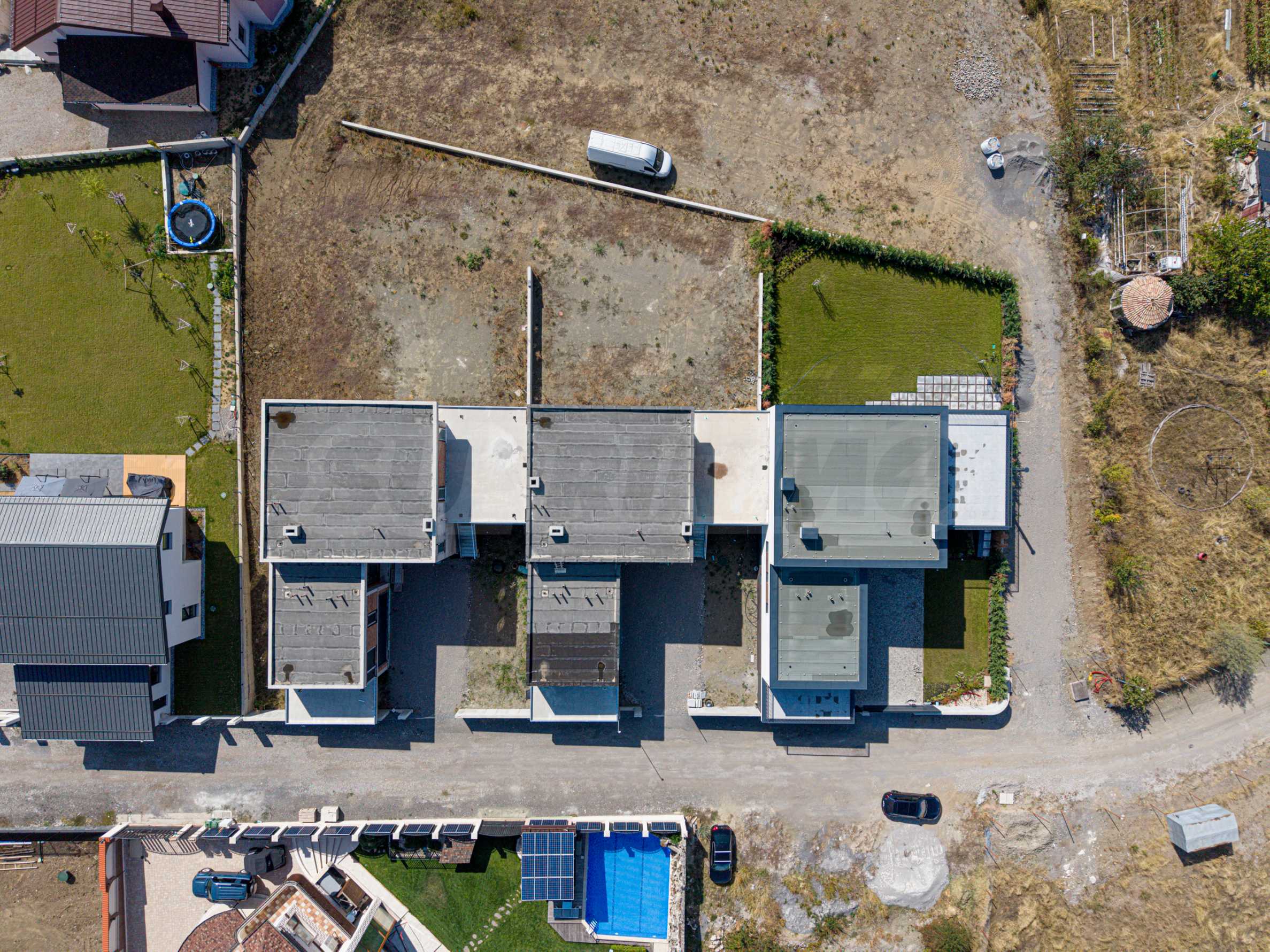 Всички къщи са с удостоверение по чл.181 ( Груб строеж, Акт 14). Къща 3 е изцяло завършена отвън.