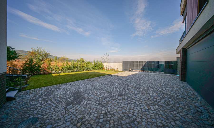 - Двор - самостоятелен двор, ограда от всички страни; настилки от гранитни плочи 3см 60*60см и Semmelrock; озеленяване; поливна система Reinbird, захранвана от сондаж; самостоятелен пешеходен входен портал, самостоятелен автомобилен плъзгащ се портал с дистанционно управление; плътна бетонова ограда от към улицата;