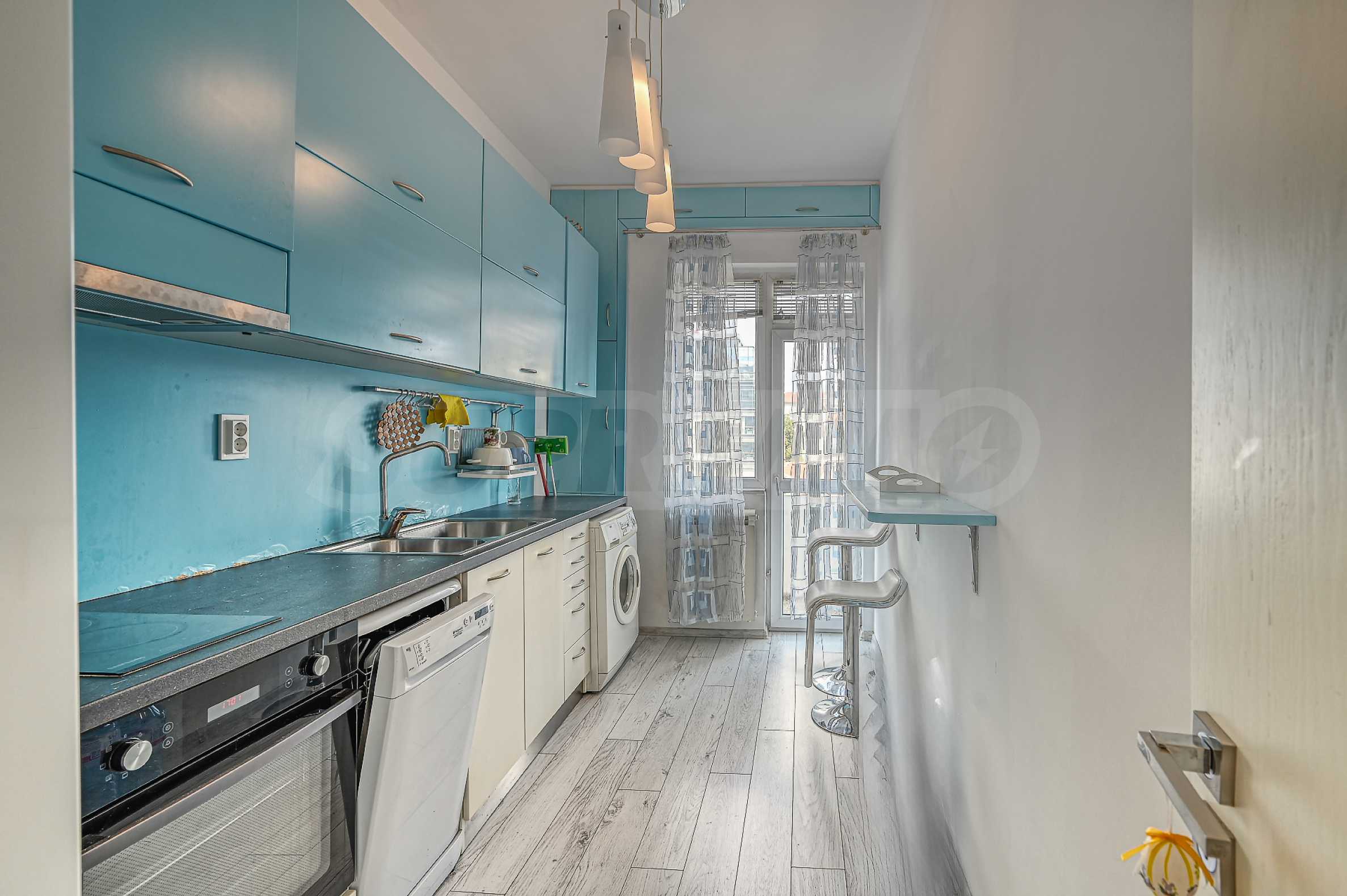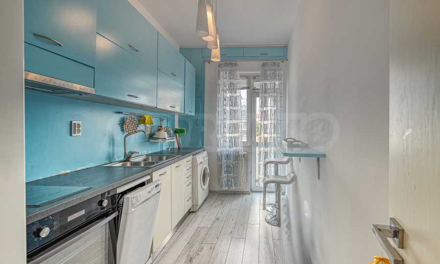 Кухня: Функционалната кухня е оборудвана с всички необходими електроуреди. Има достатъчно място за съхранение на посуда и други кухненски принадлежности. От нея има излаз към втората тераса.