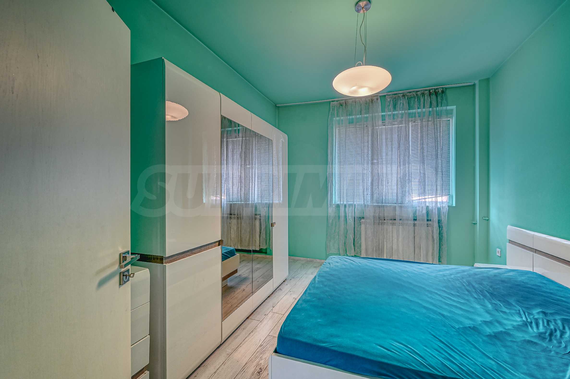 Спалня: Уютната спалня е обзаведена комфортно, разполага с голямо двойно легло, гардероб и шкаф.