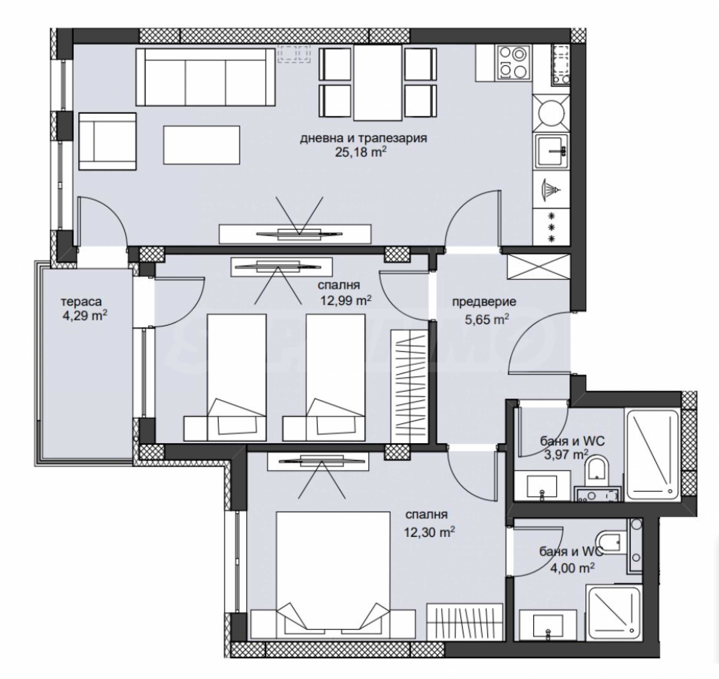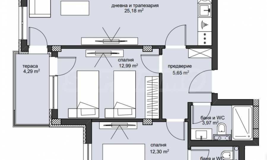 Имотът с площ от 101.62 кв.м е разположен на 9-и етаж от 11.