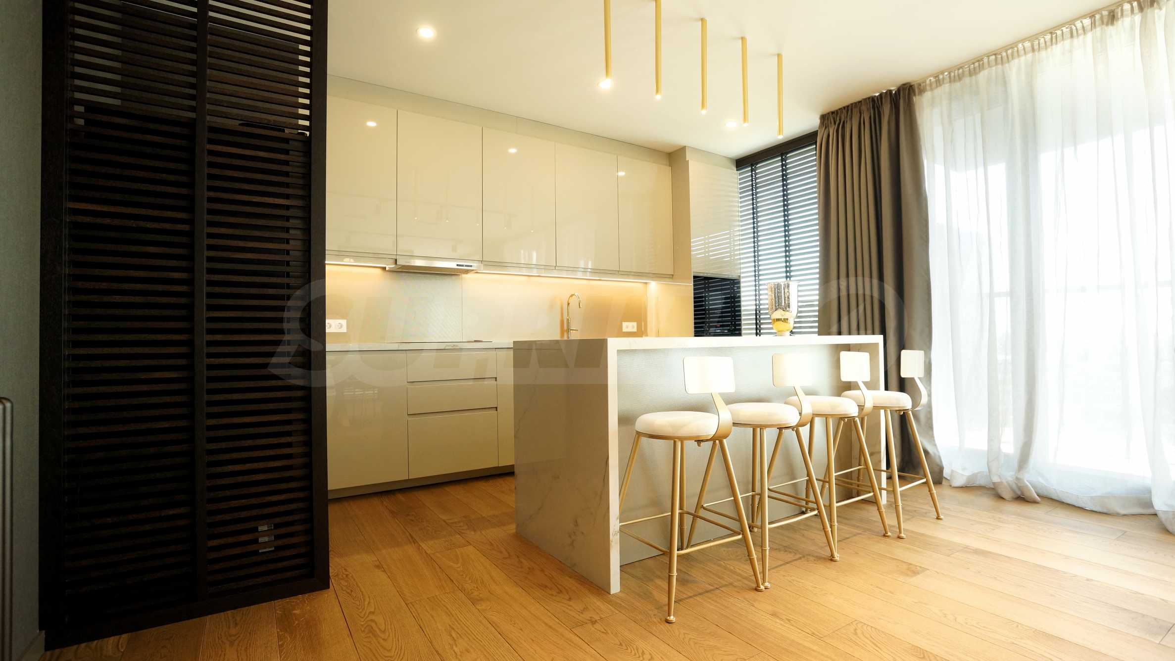 - елегантна всекидневна с кухня и трапезна част;
