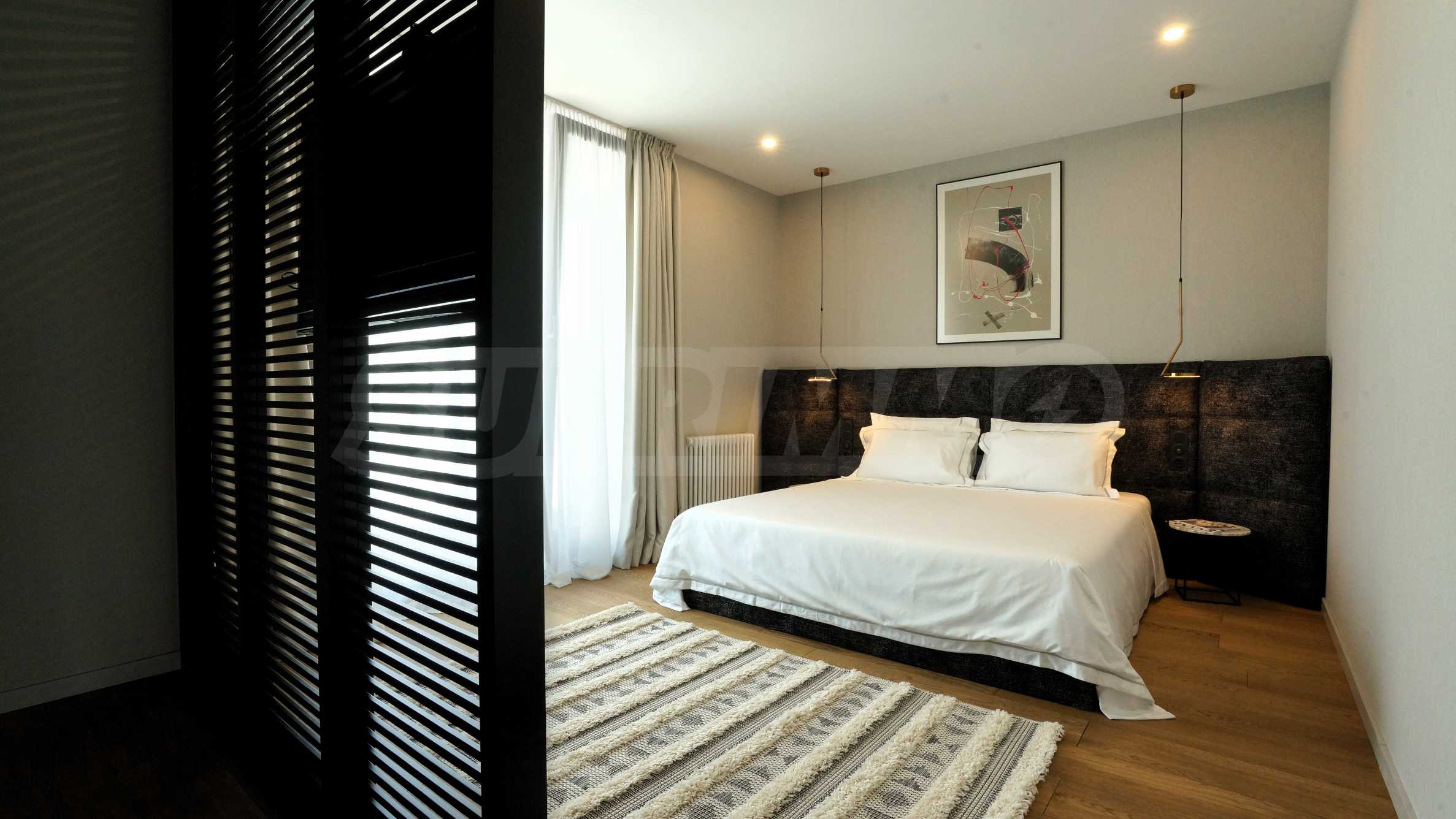 Апартаментът е просторен, светъл и с високи тавани, разположен на 7-и етаж от общо 12, със 165 кв.м площ. Завършен е по дизайнерски проект и предлага елегантен интериор с внимание към най-малкия детайл, мебели и техника от най-висок клас.