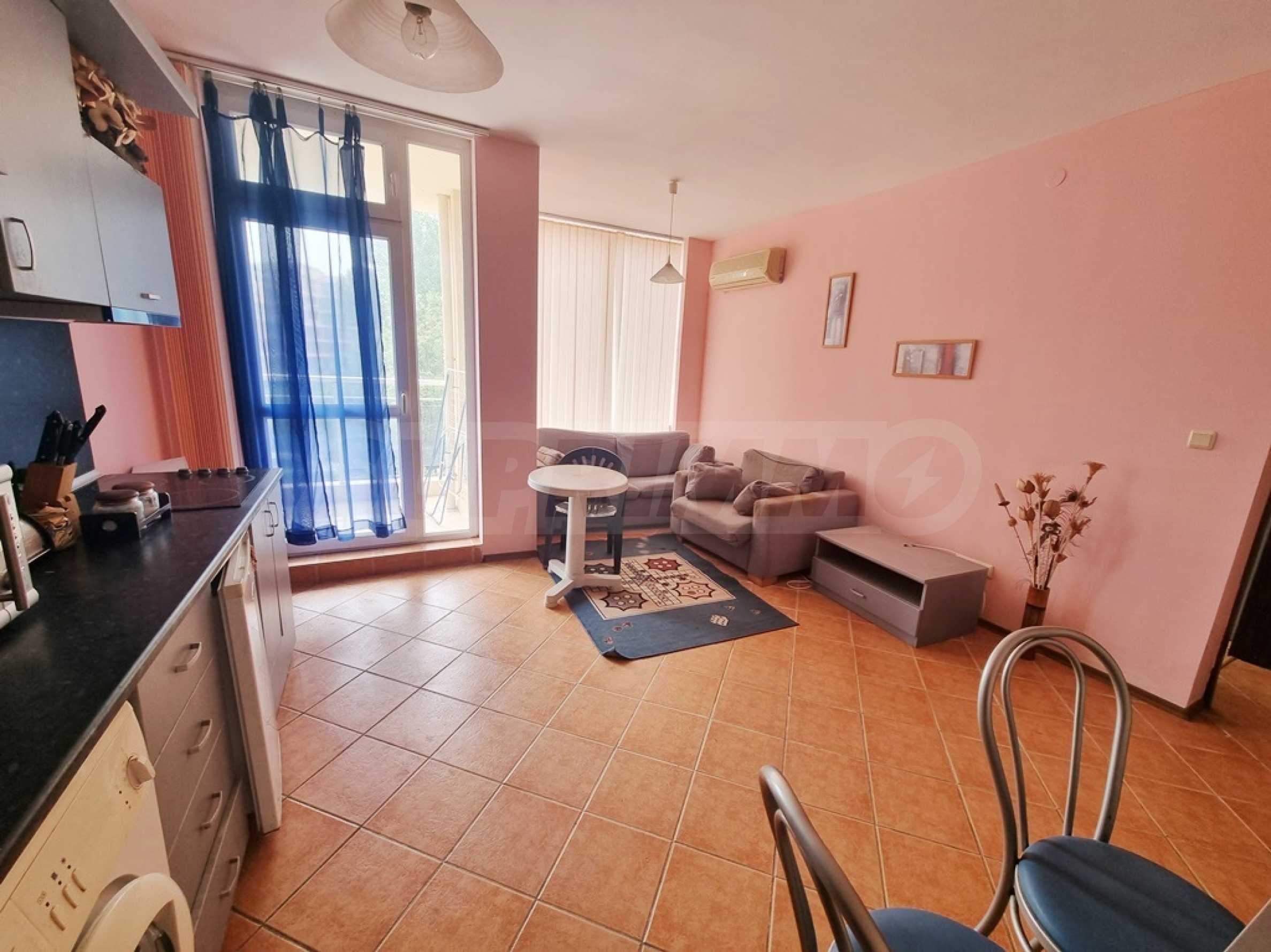 Апартаментът е подходящ както за лично ползване, така и за отдаване под наем. Предлага изглед към басейна на комплекса.