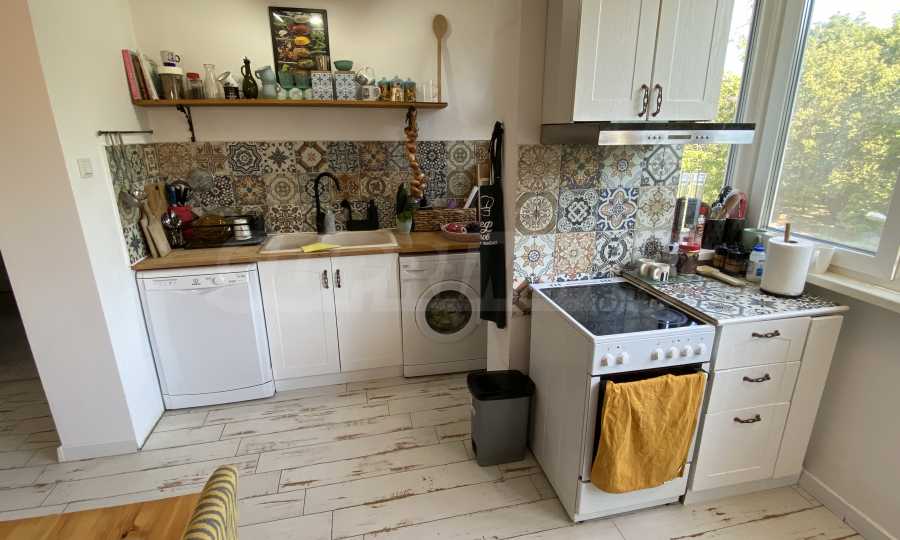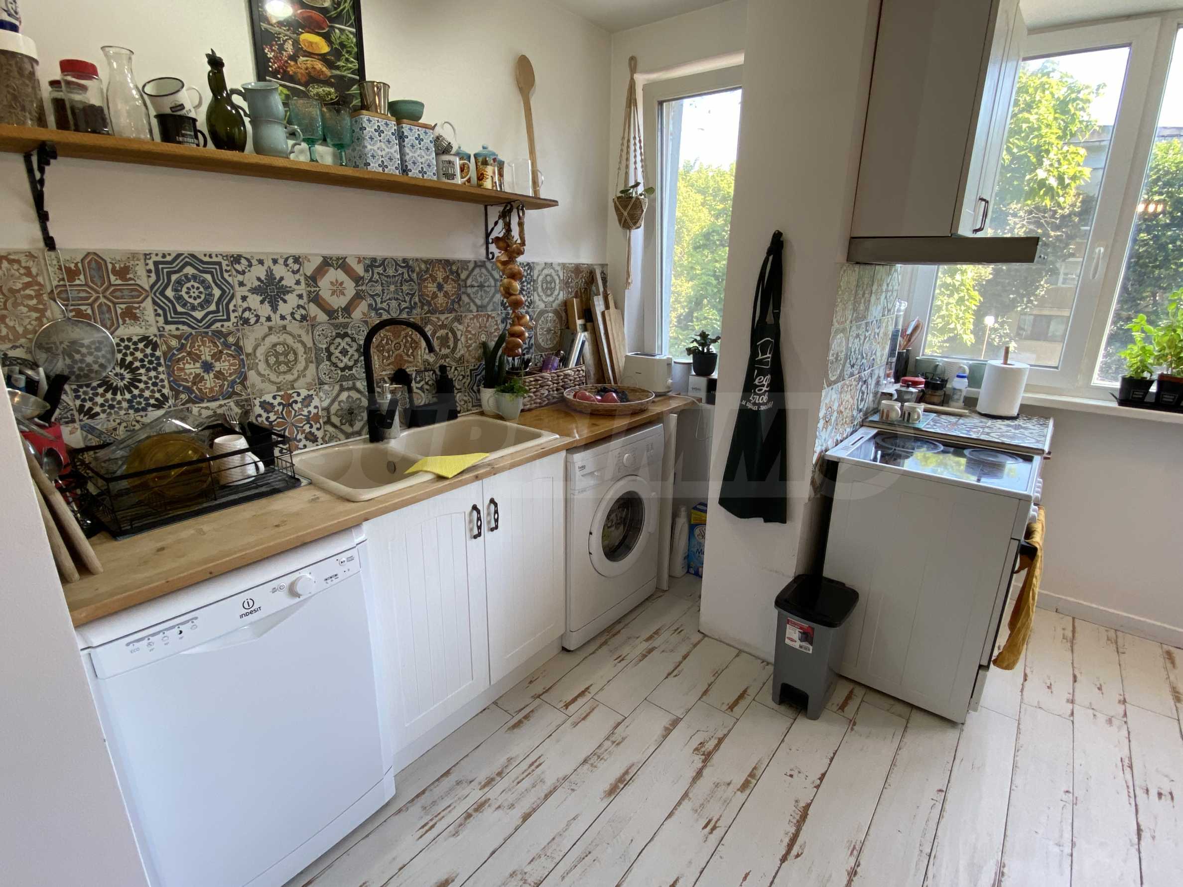 Жилището е с функционално разпределение, осигуряващо максимално удобство за всяко семейство. Кухнята е модерно оборудвана и разполага с достатъчно пространство за готвене и хранене. Големият хол е чудесен за семейни събирания и забавления. Двете спални са светли и просторни, създават уютна обстановка за отдих и релакс. Балконът предлага прекрасна гледка към околността. Предстои саниране на сградата.