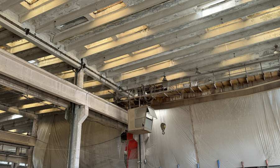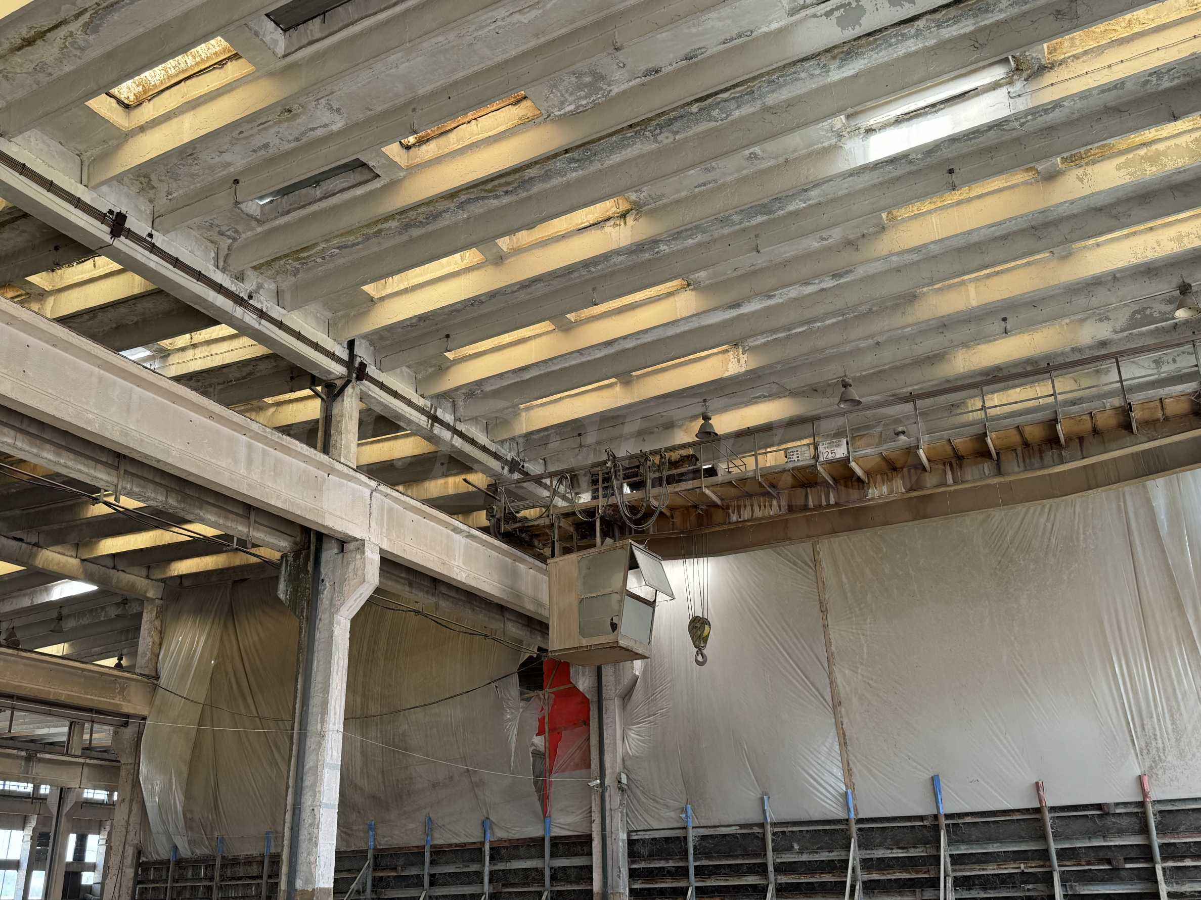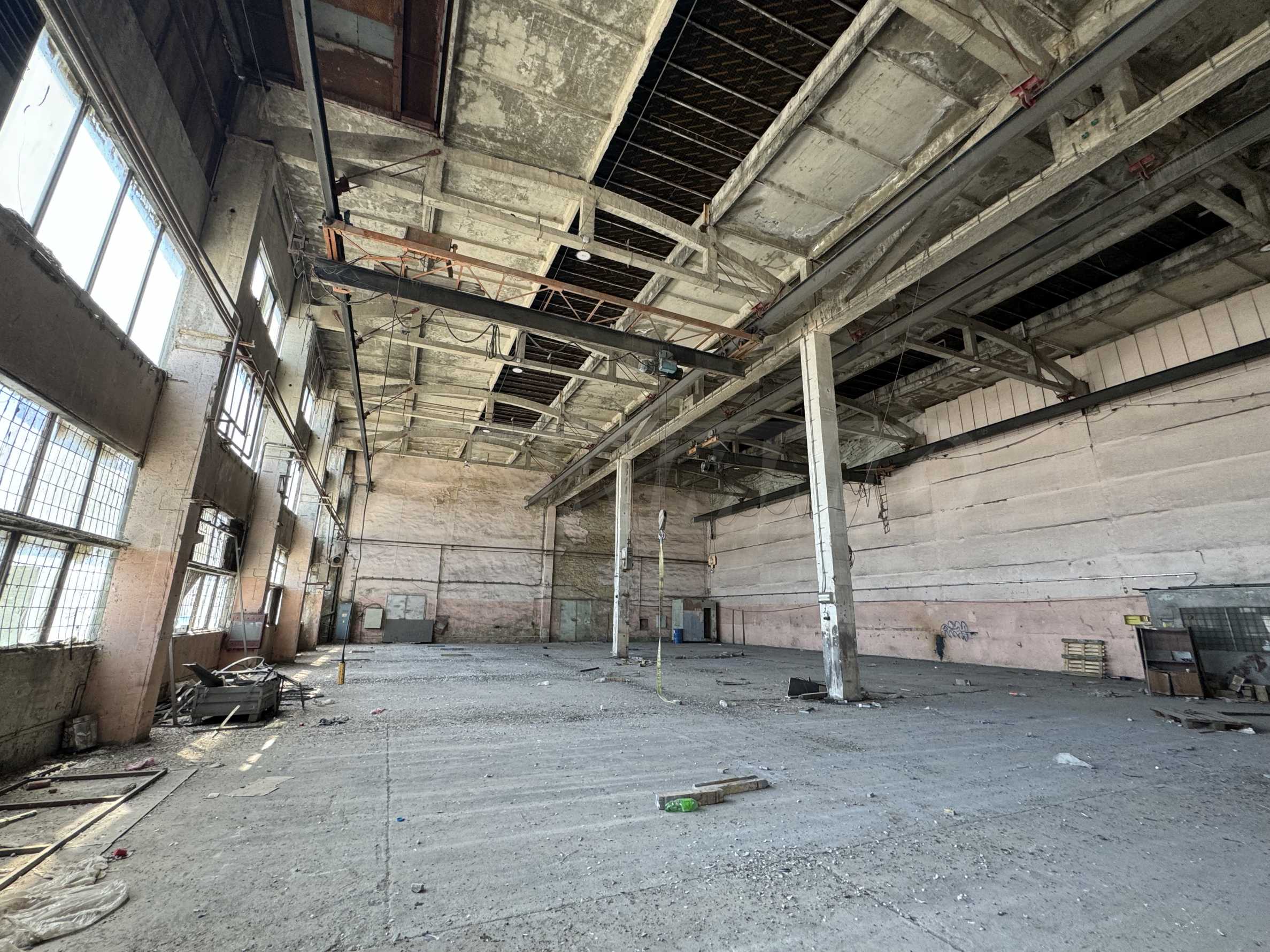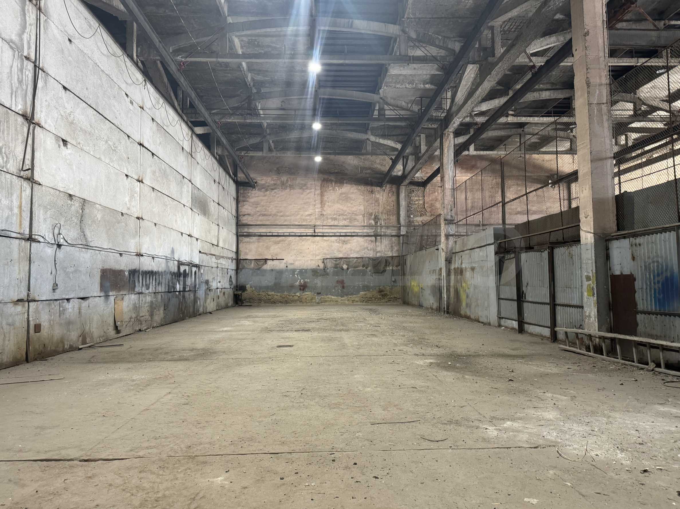 Имотът с обща площ от 432 кв.м е с подови настилки бетон, с дебелина от 20 см. Височината на помещенията е 10 м и има възможност за наемане на подемен кран.