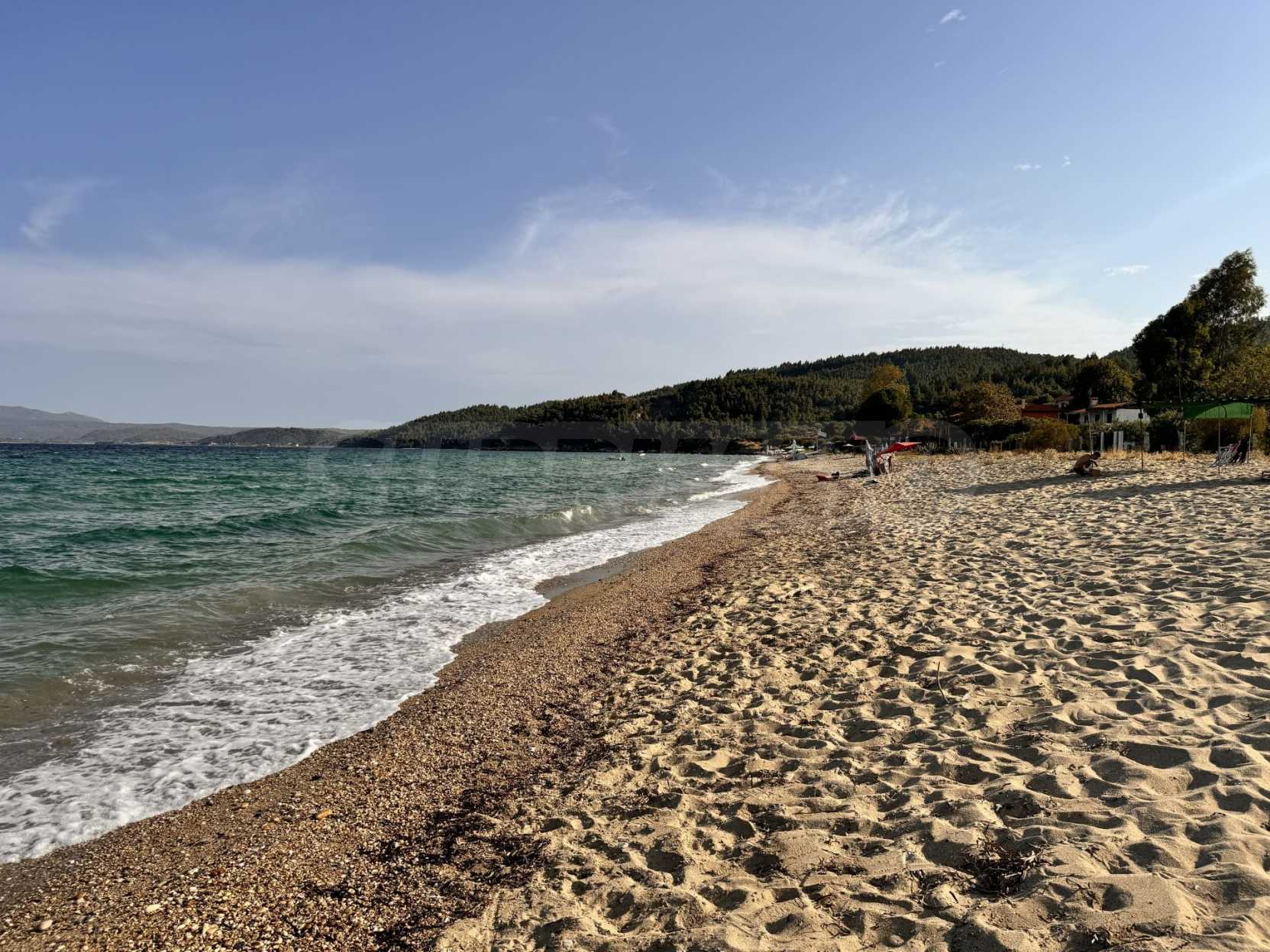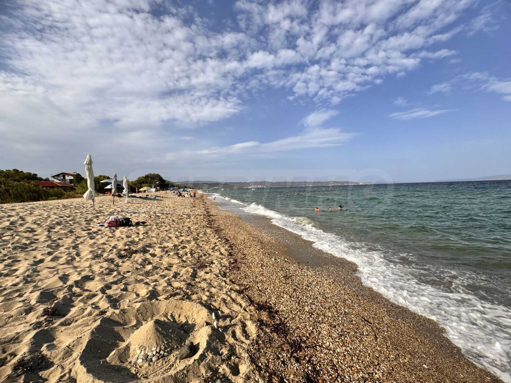 Невероятна ъглова земя на отлично място само на 50 метра от пясъчен плаж в Халкидики, Гърция. Може да се строи при специални разпоредби. 1550 кв.м. с ток и вода. Намира се в Ситония с пътен достъп. Идеален за бизнес дейност чрез изграждане на жилищни блокове или малки вили или за изграждане на имоти за продажба. Също така е много подходящ за изграждане на собствена къща край морето!