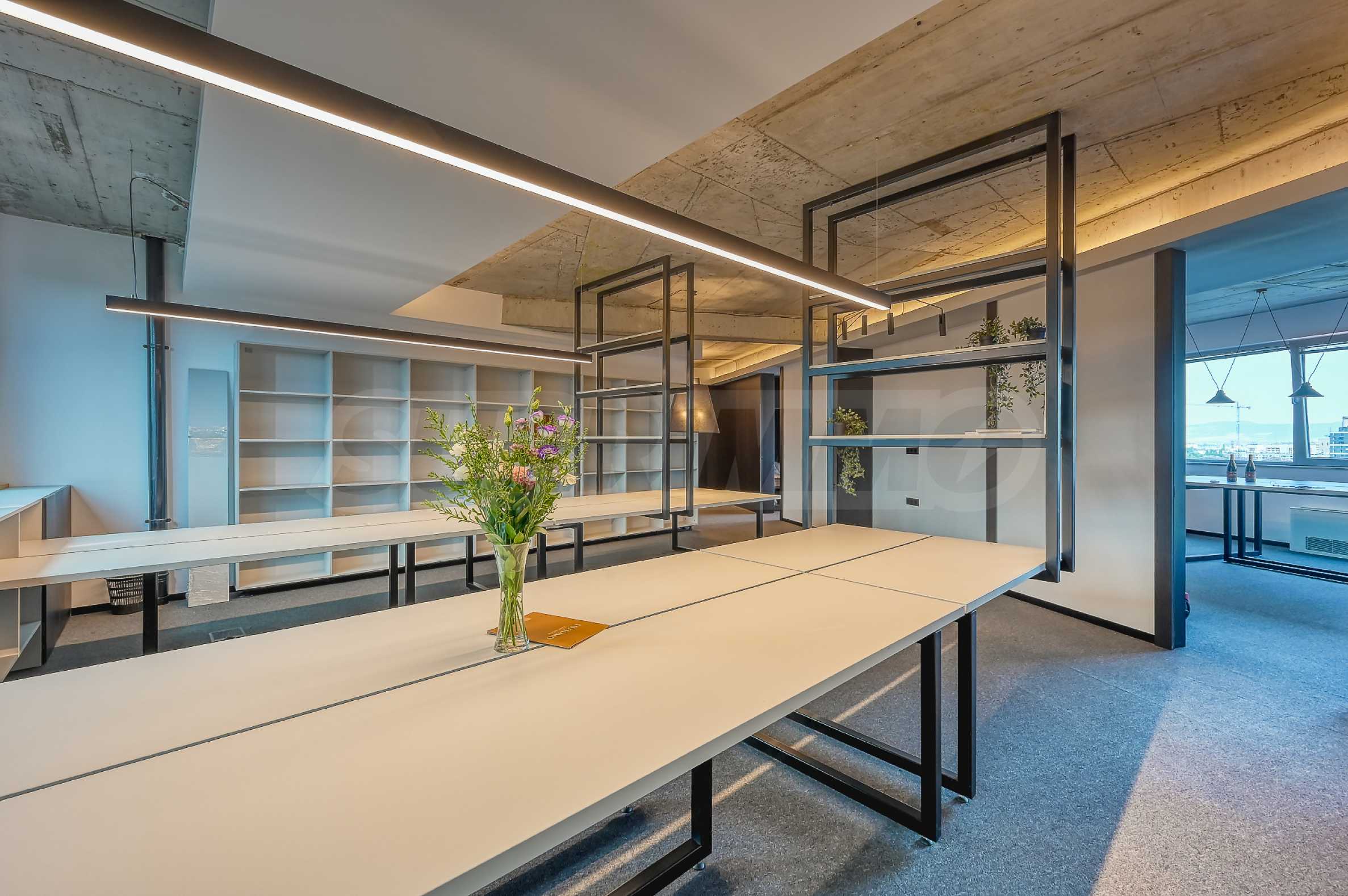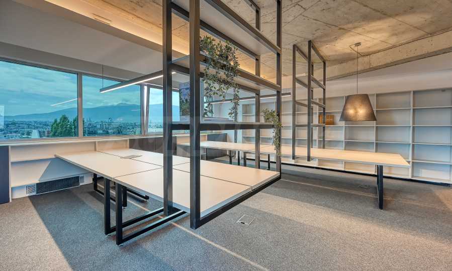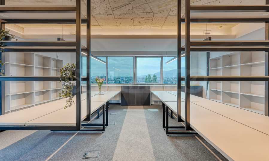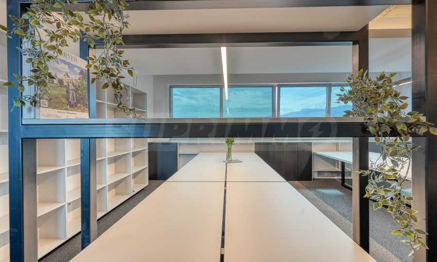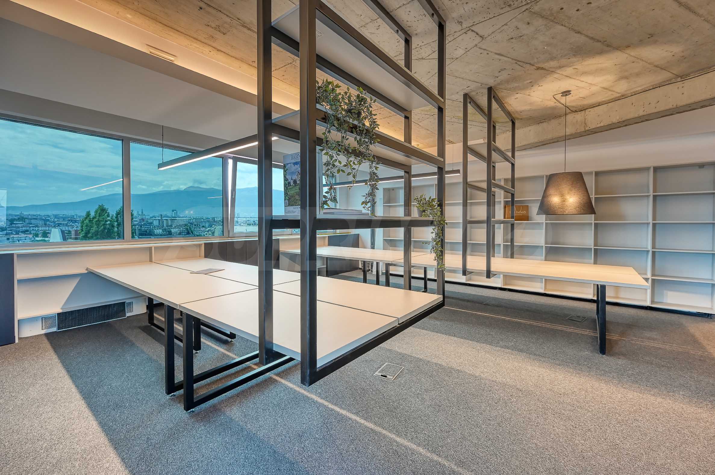 Представяме на Вашето внимание представителен офис в Бизнес център, сграда клас „А”. Офисът представлява просторен и модерен работен център, създаден да удовлетвори нуждите на взискателните клиенти. Основното помещение е широко и светло, с достатъчно пространство за работни места, обособени зони за срещи и креативни сесии. Високият клас на обзавеждане и технологично оборудване гарантира комфорт и продуктивност на служителите.
