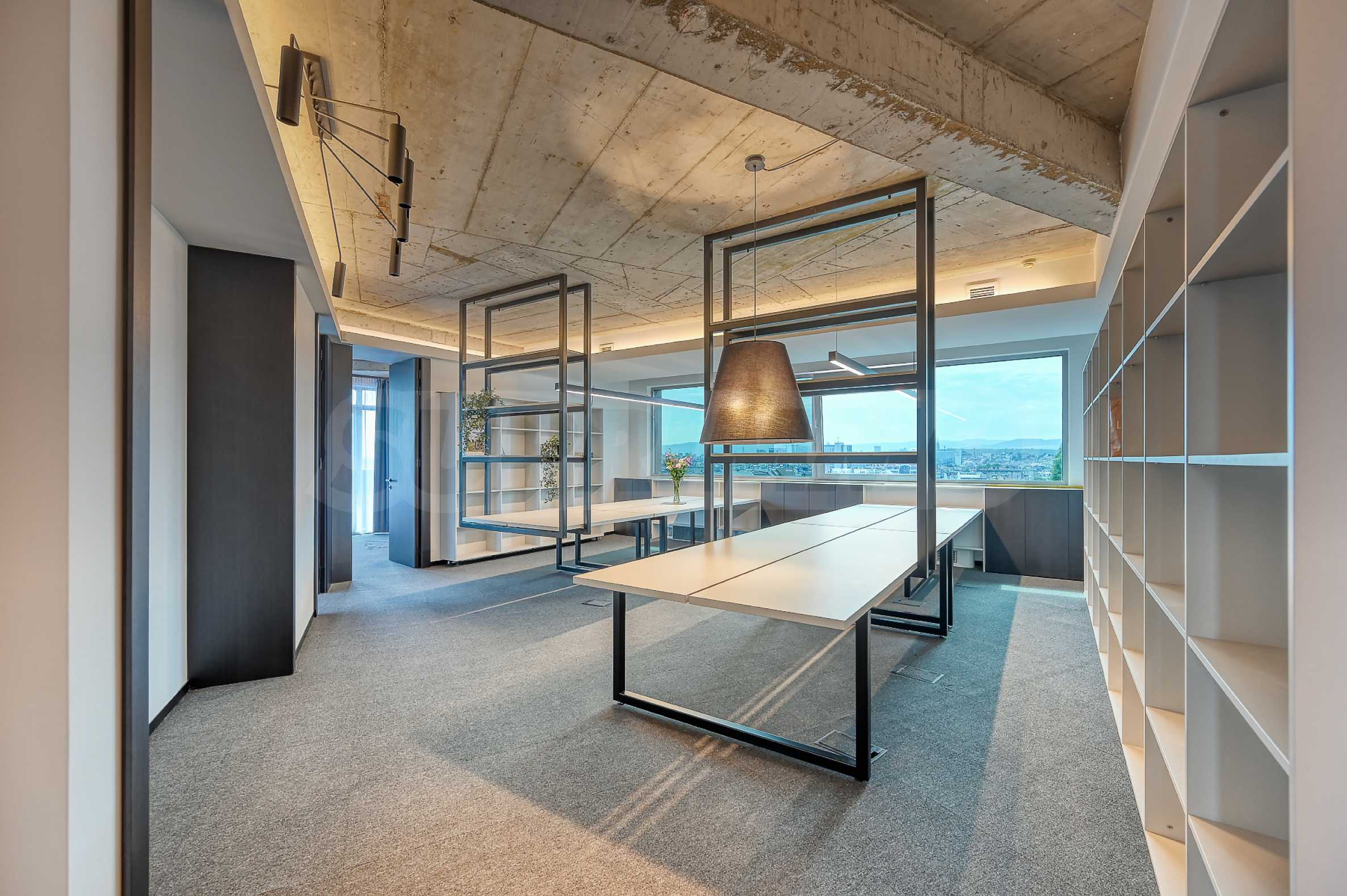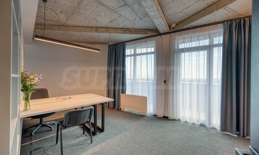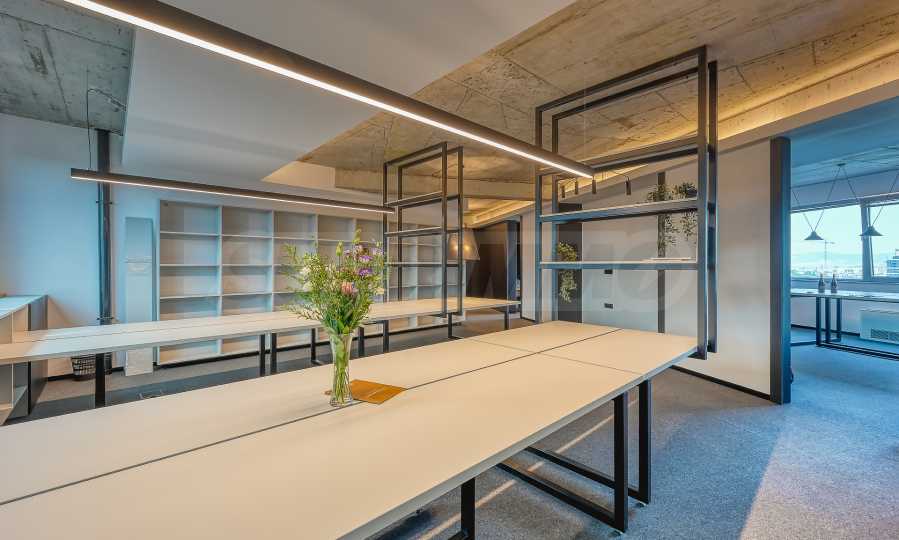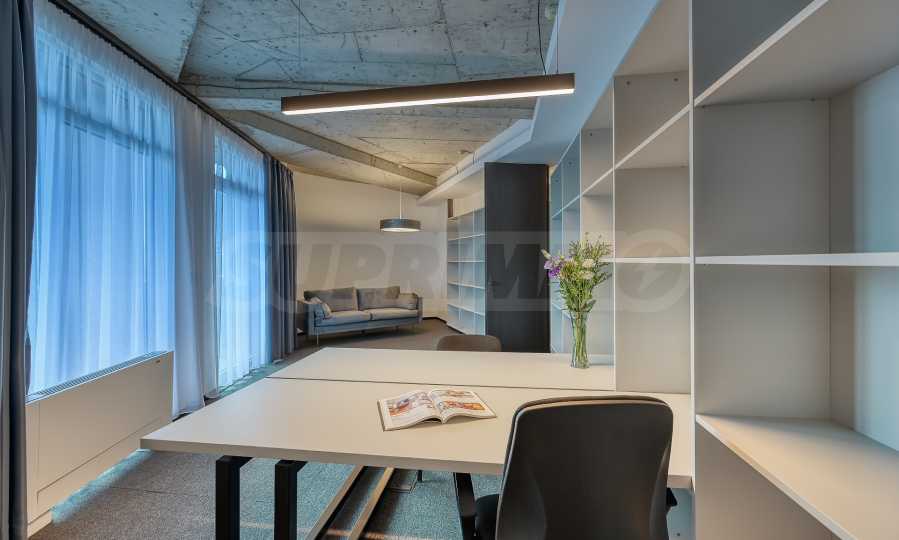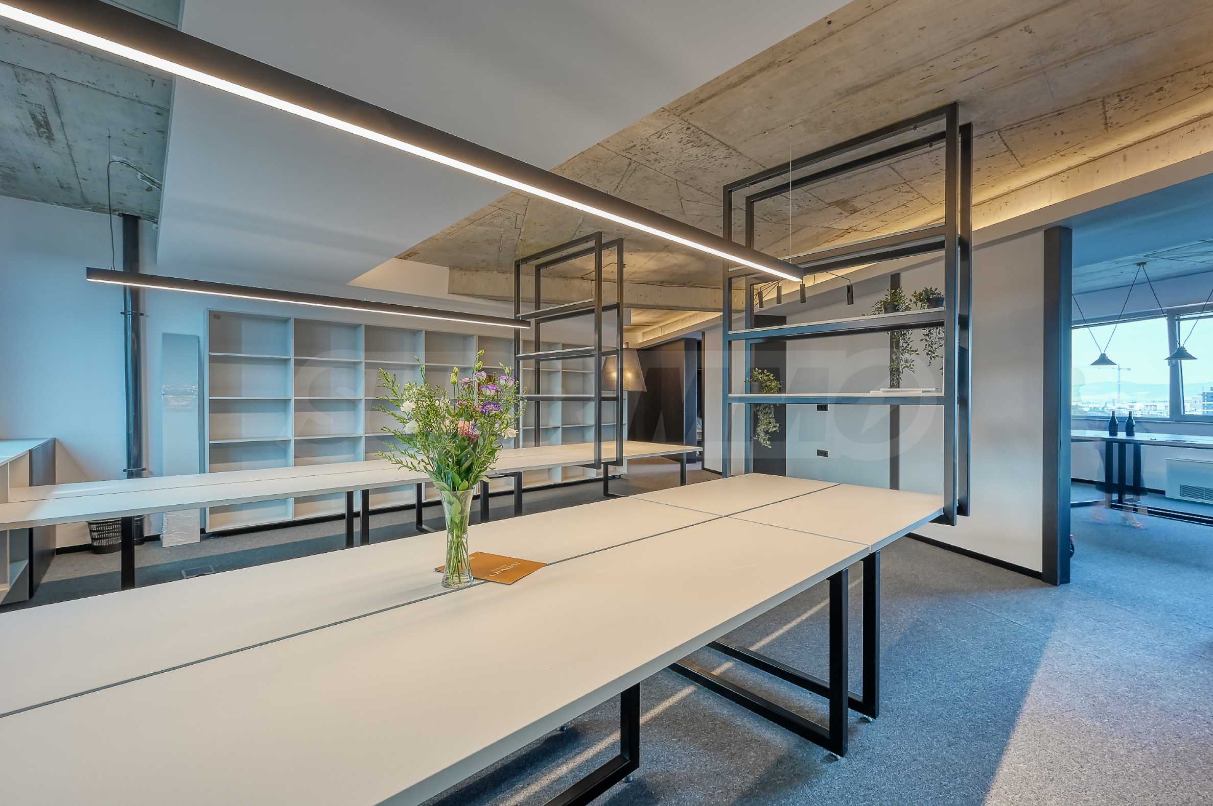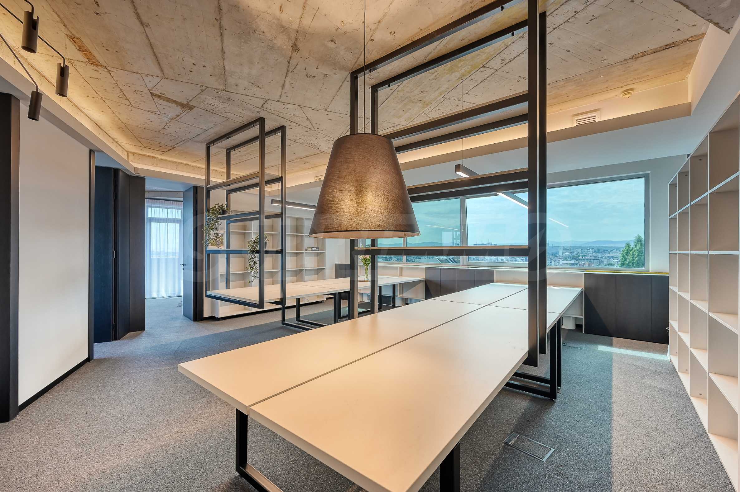 Представяме на Вашето внимание представителен офис в Бизнес център, сграда клас „А”. Офисът представлява просторен и модерен работен център, създаден да удовлетвори нуждите на взискателните клиенти. Основното помещение е широко и светло, с достатъчно пространство за работни места, обособени зони за срещи и креативни сесии. Високият клас на обзавеждане и технологично оборудване гарантира комфорт и продуктивност на служителите.