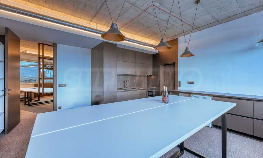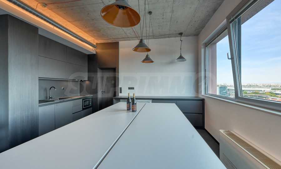 Кухнята е стилно обзаведена, оборудвана с всичко необходимо за приготвяне на храна и напитки. Тя е функционална и уютна, идеална за кратки почивки или неформални разговори между колеги.