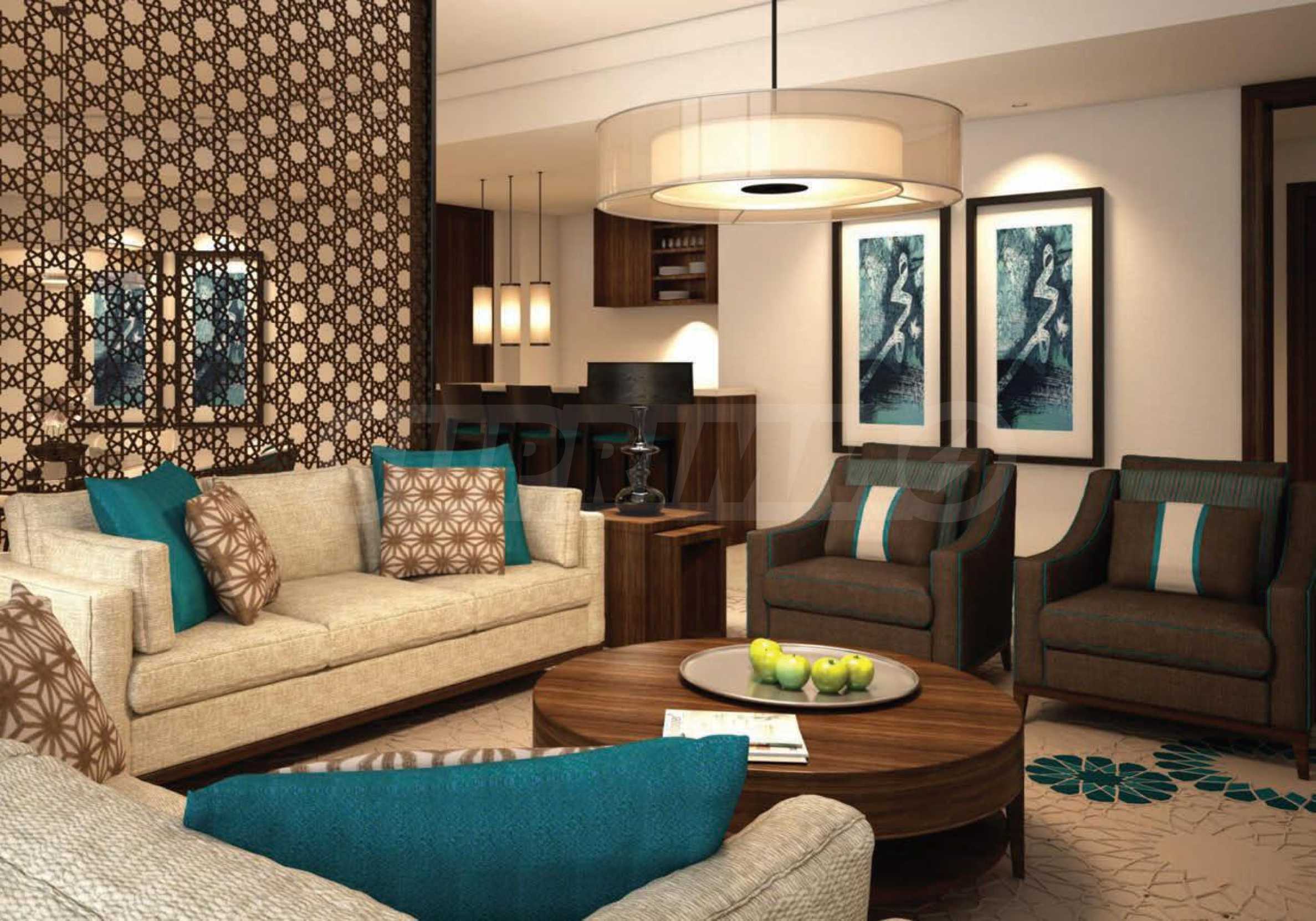 Жилищата са просторни и разполагат панорамни прозорци от пода до тавана, които осигуряват естествена светлина и впечатляваща гледка към Арабския залив и зашеметяващия силует на града. В цветовата палитра преобладава бялото, както и благородните нюанси на кафявото и тюркоазеното, които са в хармония с морските пейзажи около комплекса. Кухните са напълно оборудвани с вградени уреди Siemens, а баните включват Villeroy & Boch, Bravat и Grohe оборудване. В зависимост от типа имот, жилищата ще разполагат с 1 или 2 паркоместа.