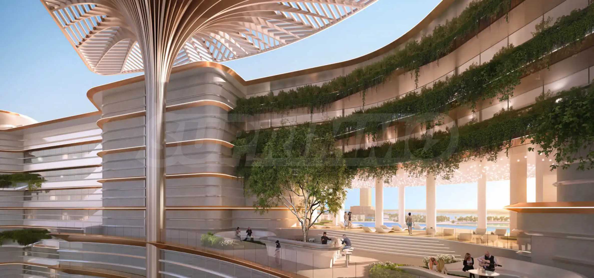 Една от забележителните характеристики на комплекса е 300-метровия частен плаж, предлагащ на жителите спокойно бягство само на няколко крачки от прага им. Независимо дали предпочитате да се излежавате на слънце, да се освежите в инфинити басейна до бара или да се разхождате по брега, всяко удобство е на една ръка разстояние. Жителите ще могат да прекарат приятно време сред повече от 52 развлекателни съоръжения в комплекса, някои от които включват консиерж услуги за домакинство и поддръжка, джогинг пътеки, фитнес, търговски център и селекция от ресторанти и кафенета. Децата могат да се забавляват в площадките за игра, докато възрастните релаксират в СПА центъра или салона за красота. Да не забравяме и пищните градини, осигуряващи спокоен фон за приятни разходки.
