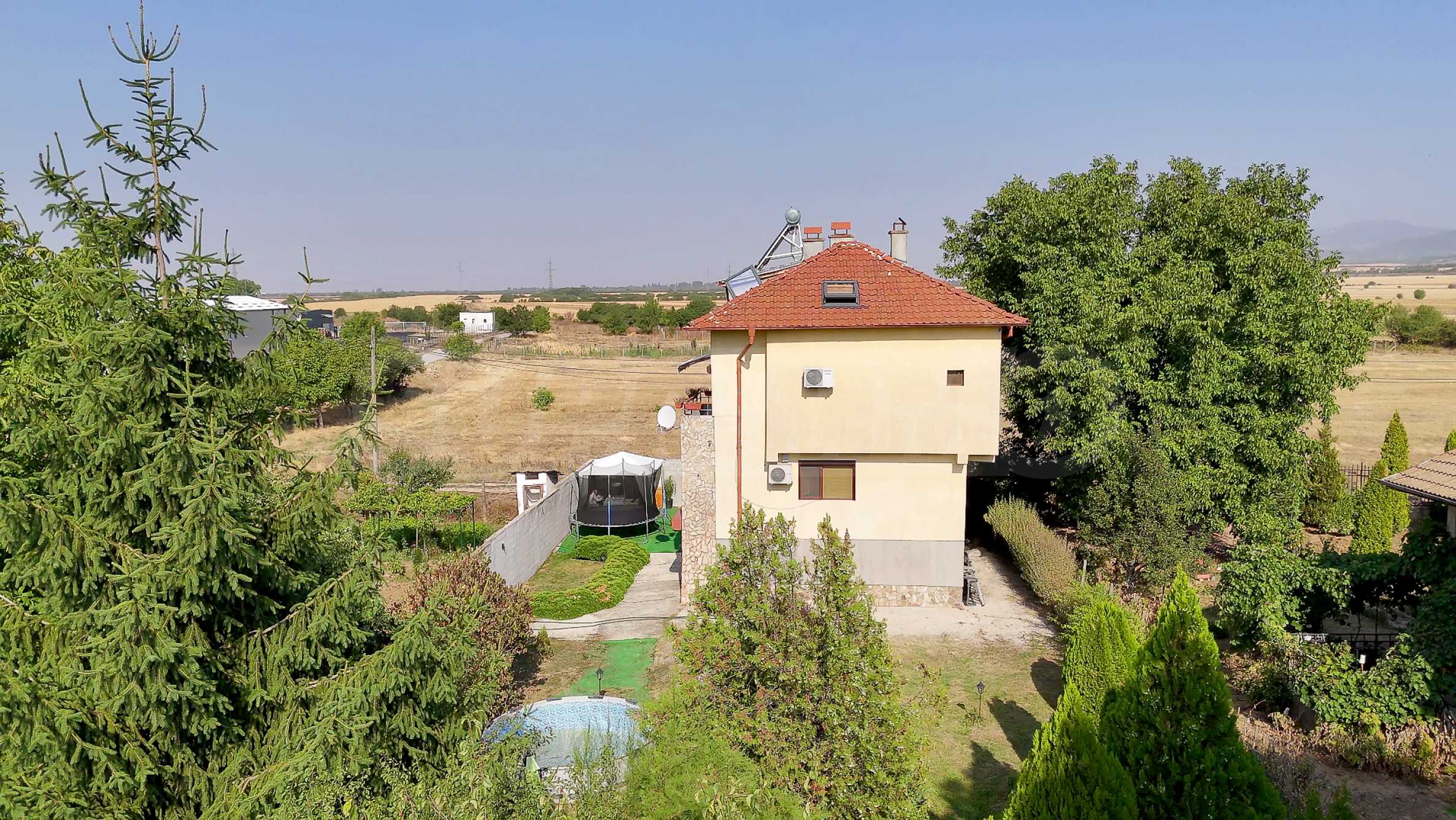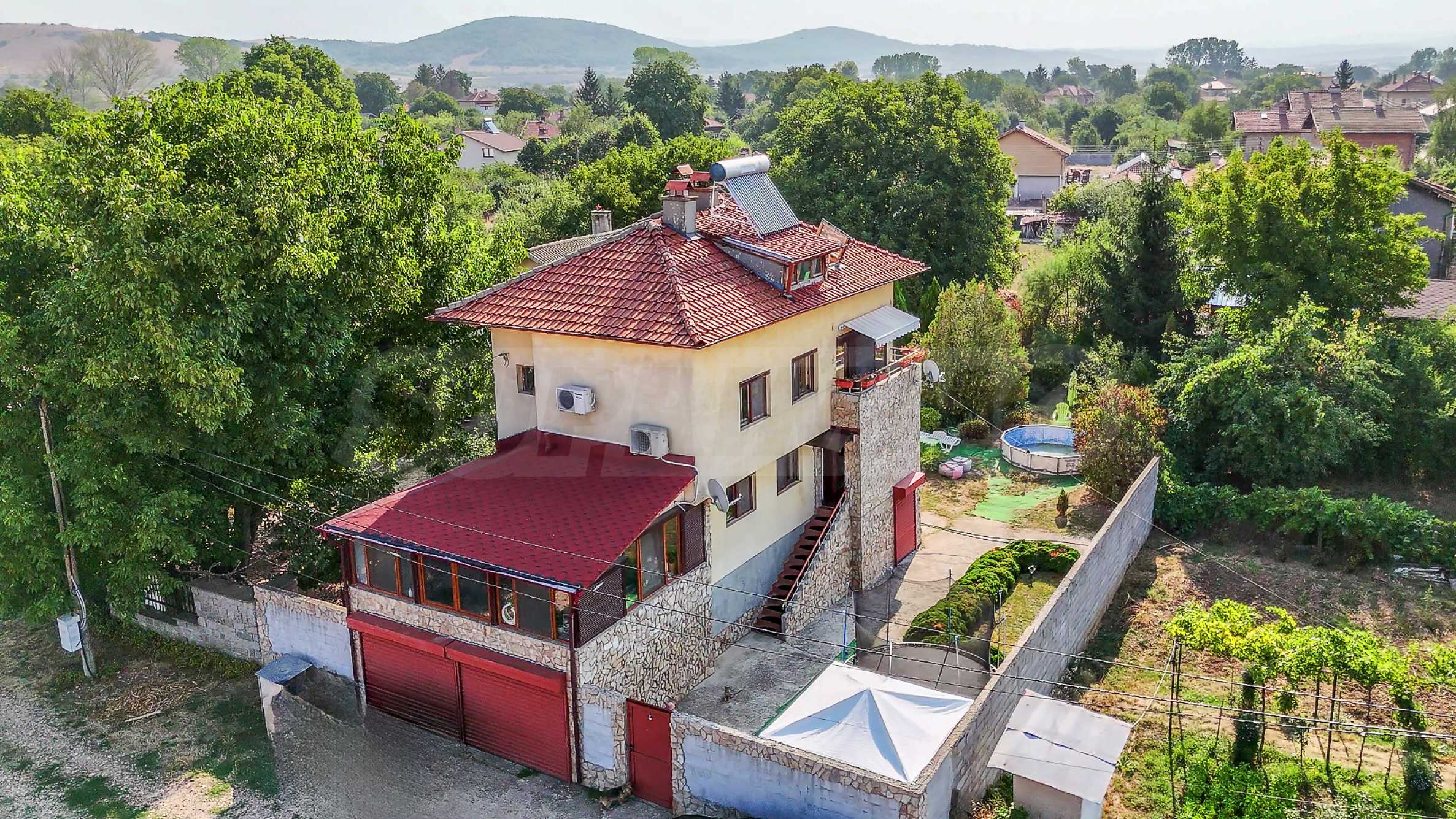 Двуетажна, напълно обзаведена къща с басейн, канализация и два гаража в село Долна Малина