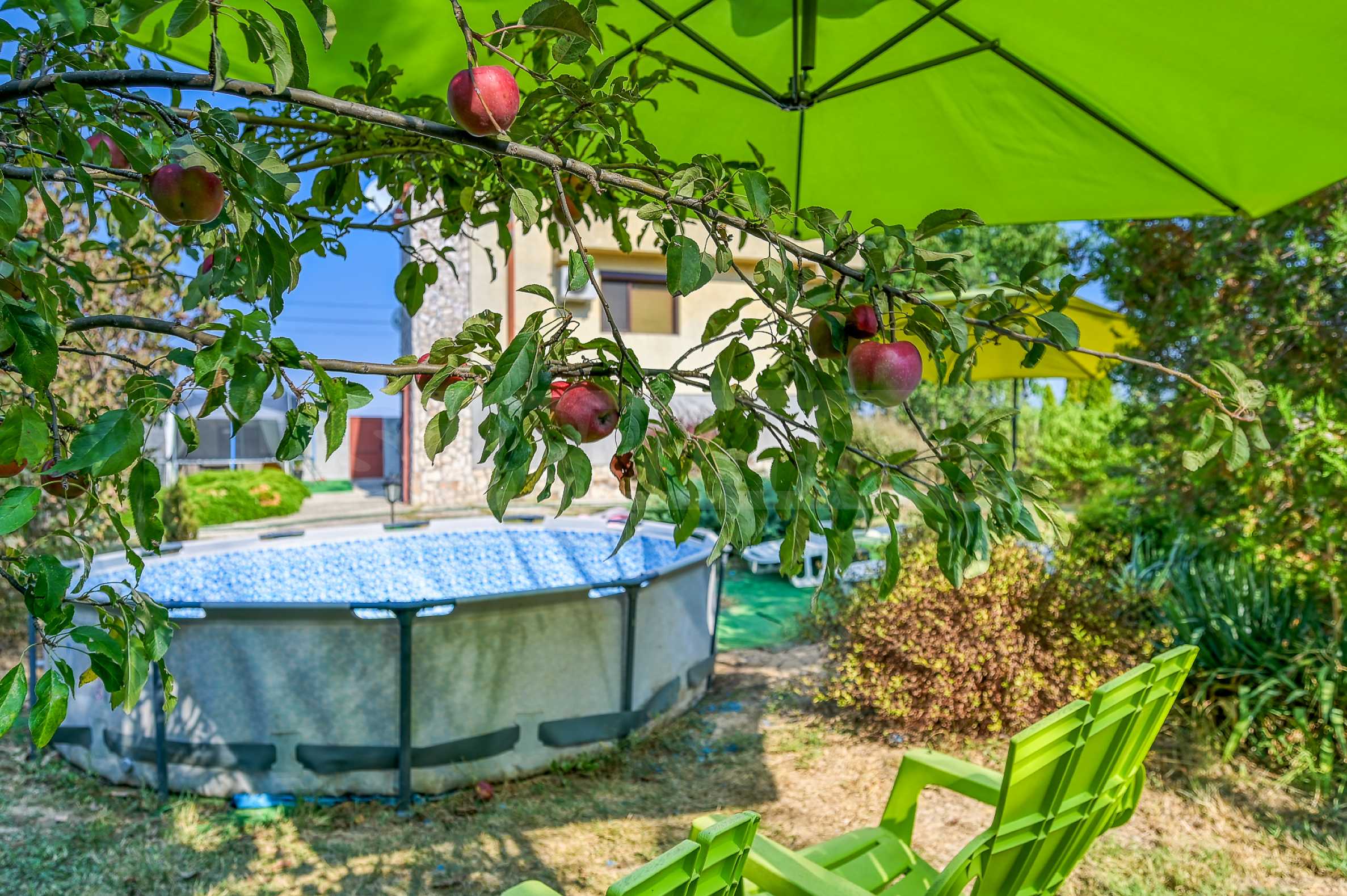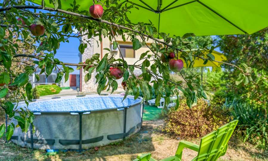 На разположение са два гаража, което осигурява удобство и сигурност за вашите автомобили. Дворът е равен и лесен за поддръжка. Къщата е оборудвана със слънчев панел, който осигурява топла вода, басейн, който е идеален за релакс през летните месеци, както и с камина, която създава уют и топлина през зимните месеци.