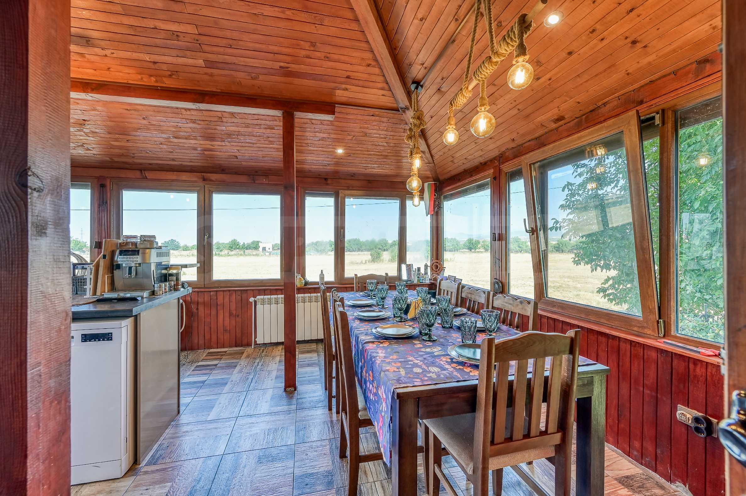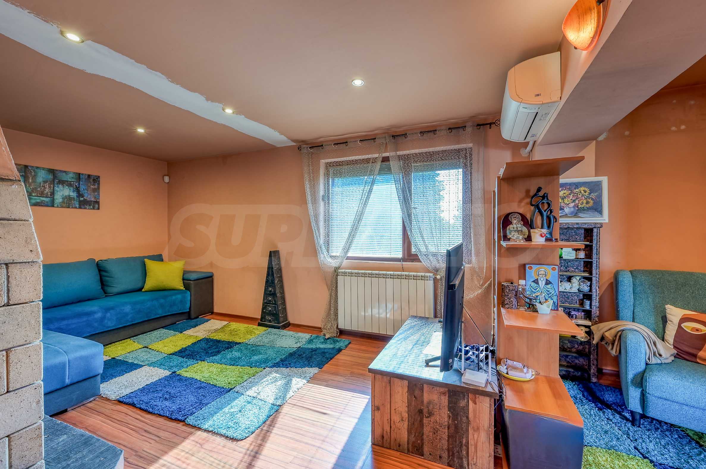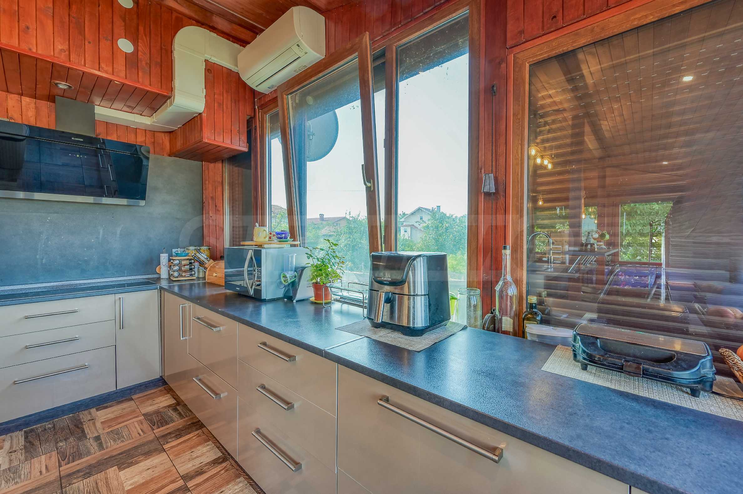 Имотът е разположен на парцел от 620 квадратни метра, като застроената площ на къщата е 284 квадратни метра. Къщата е обзаведена, като предлага съвременен дизайн с просторни и светли помещения и предлага всичко необходимо за комфортен живот сред природата. Местоположението на имота осигурява тишина и спокойствие, далеч от шума и суетата на столицата, като същевременно пътуването до София е бързо и удобно. Отоплението на имота е посредством климатици и котел на пелети/дърва. Имотът разполага с дневна част, кухня с трапезария, 3 спални, 2 санитарни възела и усвоено таванско помещение на 4-та спалня с гардеробна и възможност за допълнителен санитарен възел.