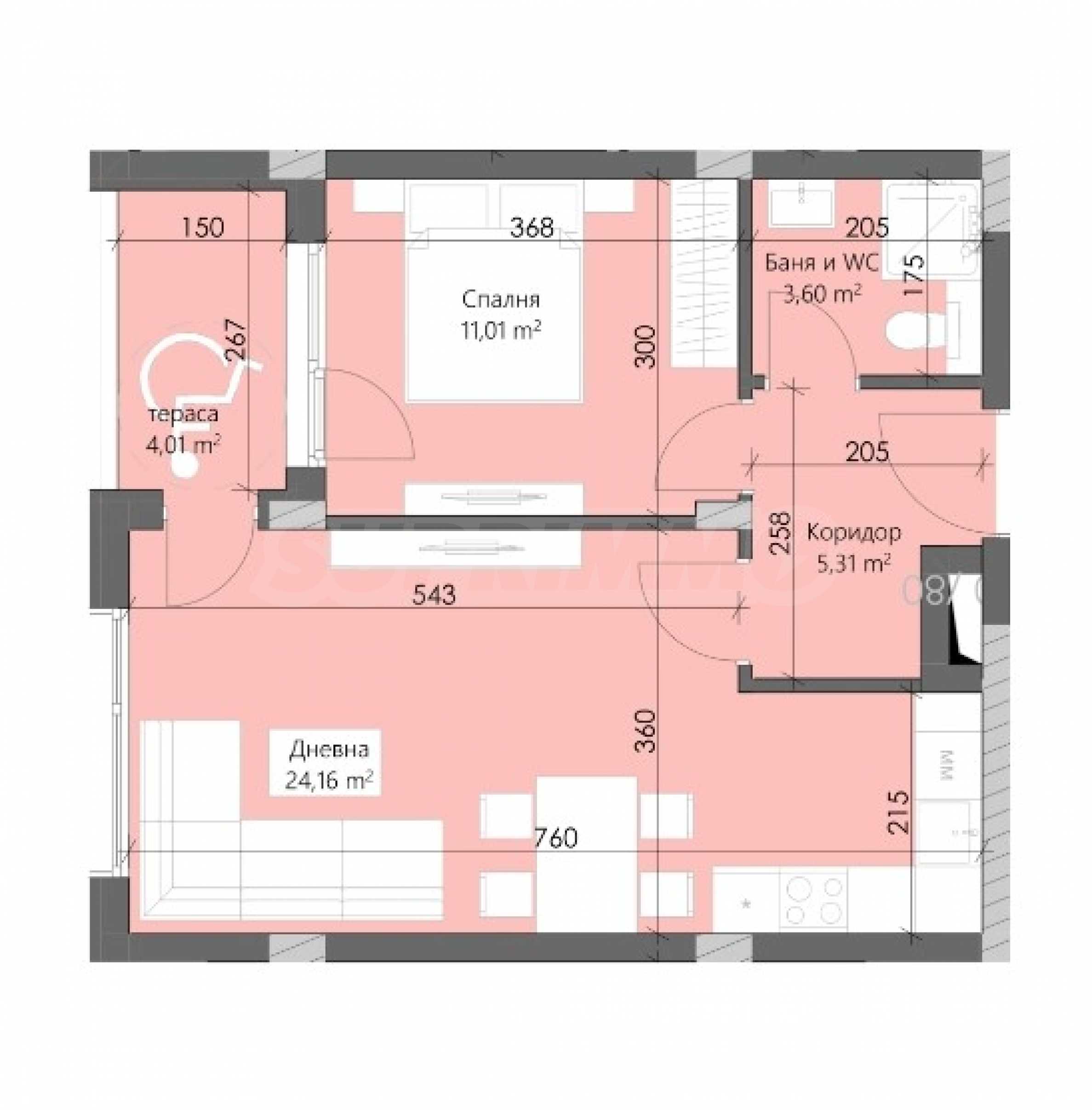 - всекидневна с трапезария и кухненски бокс - 24.16 кв.м;