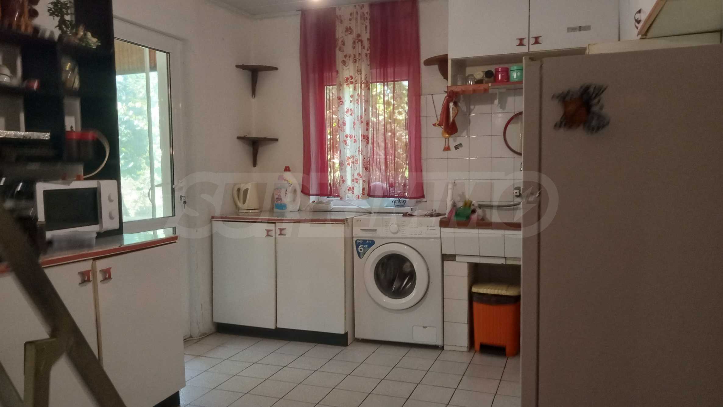 Имотът включва два гаража, единият от които с лятна кухня, както и просторен двор от 1700 кв.м с езерце, множество овощни дръвчета и селскостопански постройки. Къщата е в много добро състояние, с наскоро ремонтиран покрив и е готова за незабавно нанасяне. Разположена на тиха улица, тя предлага чудесни условия за живот в зелена и спокойна среда.
