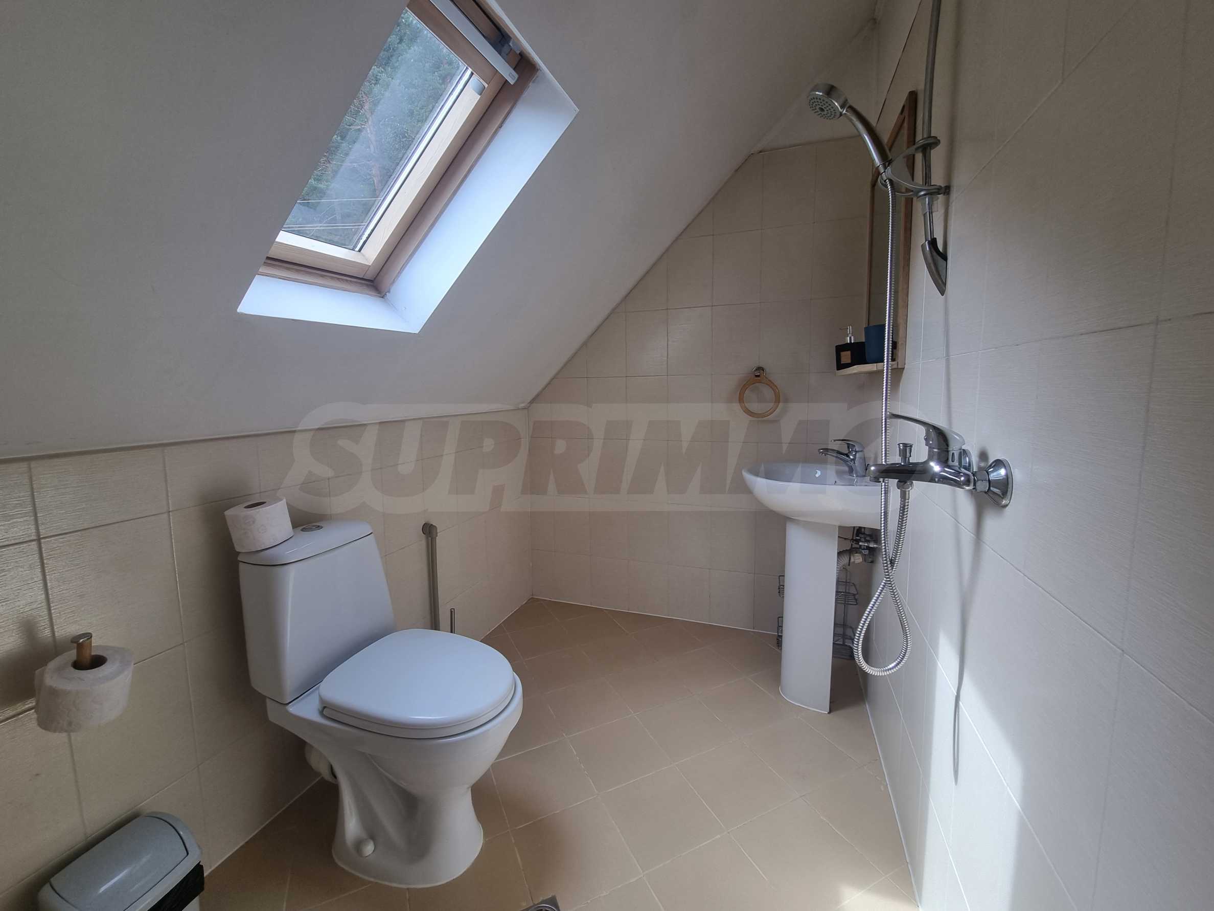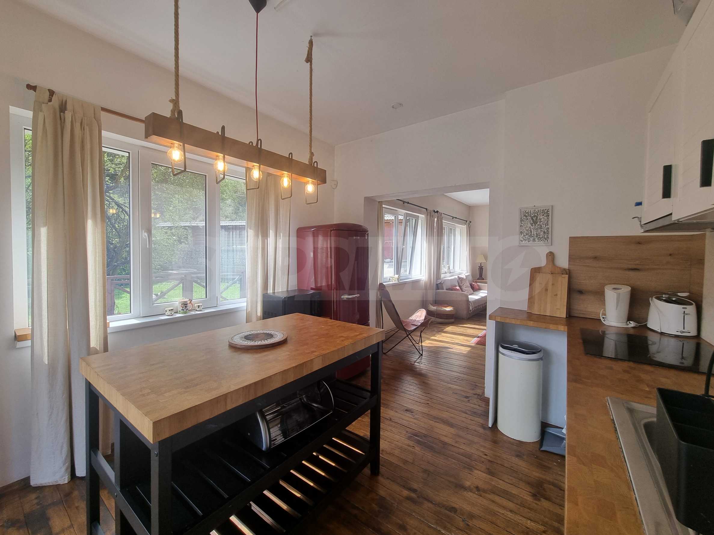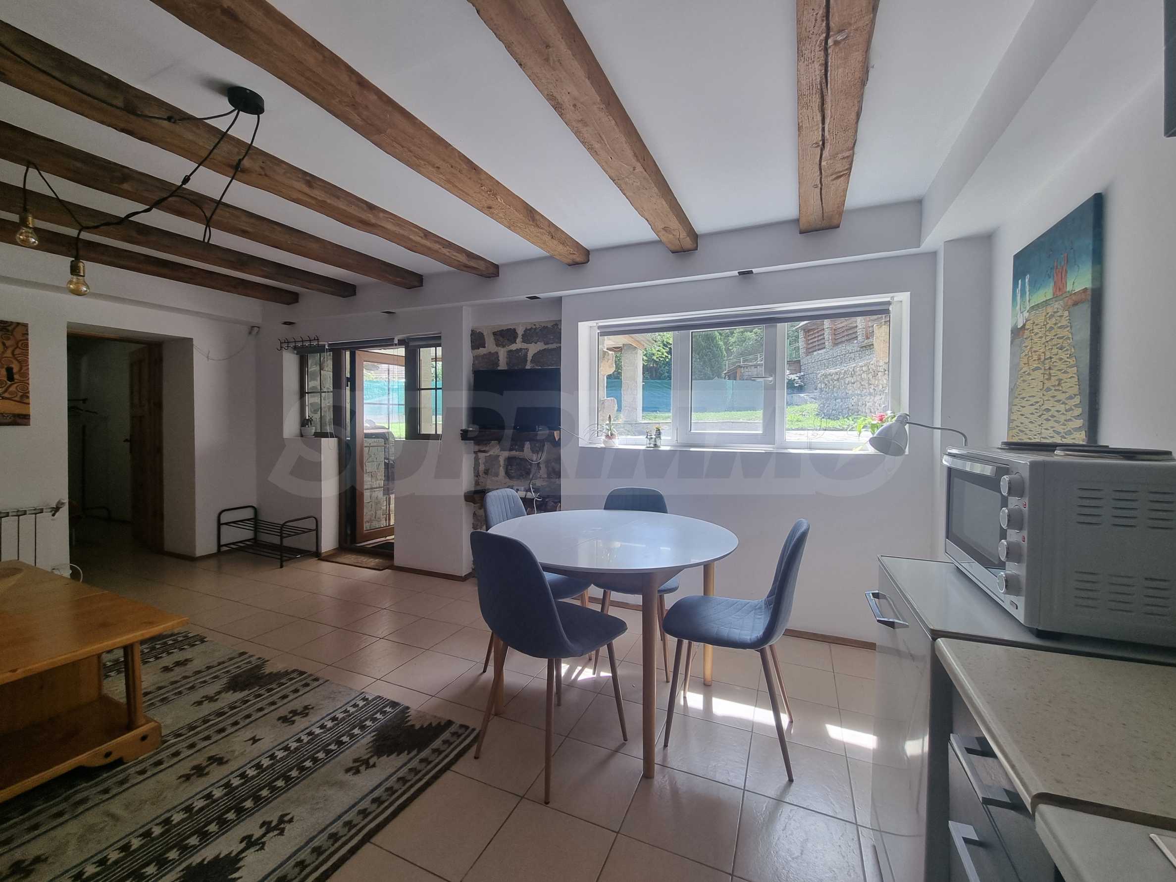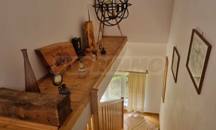 Първи етаж - дневна с кухня и трапезария, излаз към голяма веранда, спалня с баня с тоалетна и вана;