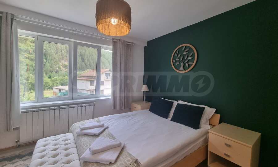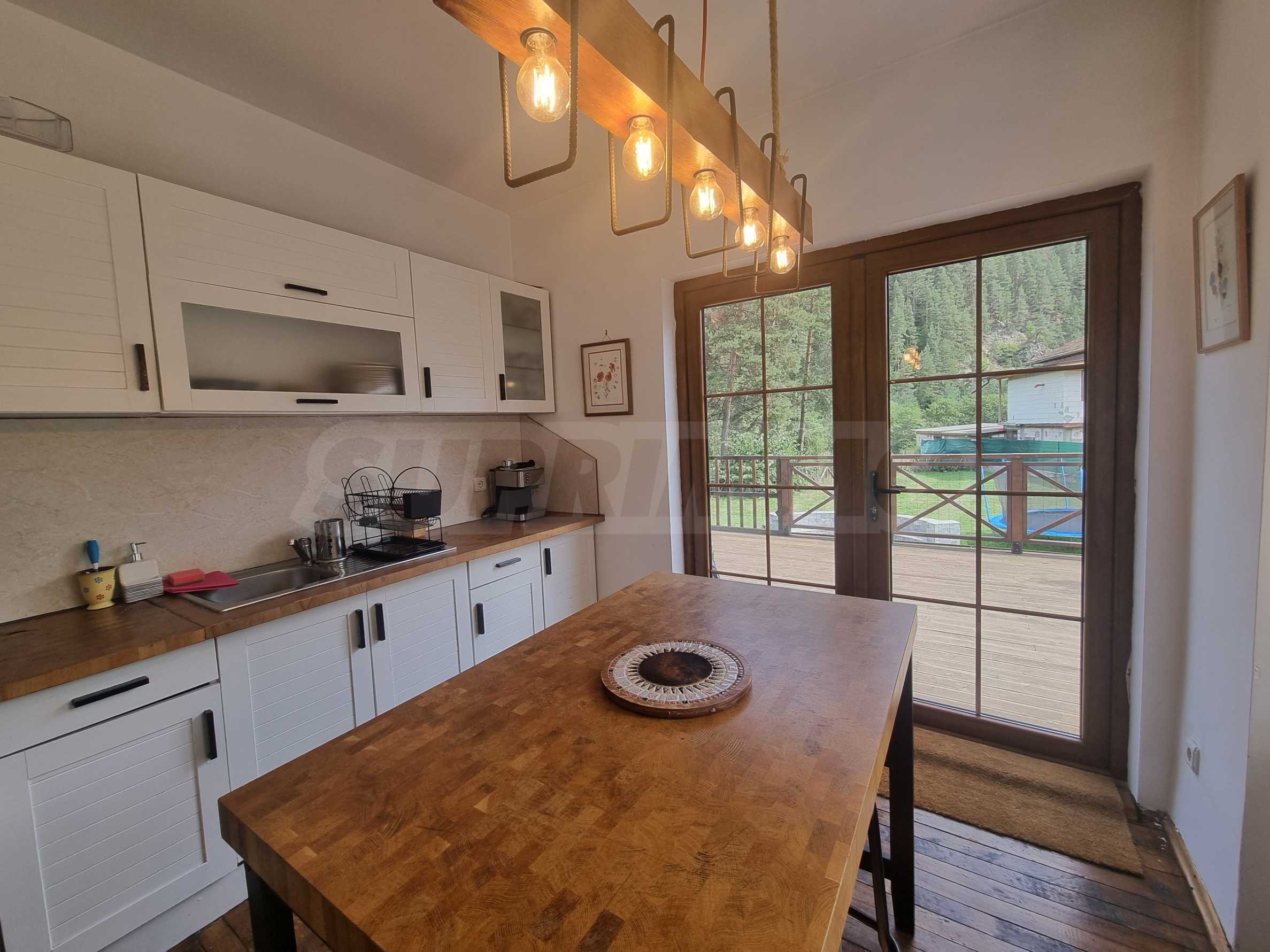 Тази напълно обзаведена планинска вила е в безупречно състояние, готова за обитаване. Материалите и довършителните работи са на най-високо ниво, извършени по индивидуален интериорен проект. Мебелите са в комбинация от дърво и кожа, стилът е модерен, планински, изцяло съпоставим с най-добрите планински къщи тип 'chalet' в алпийските курорти на Западна Европа.