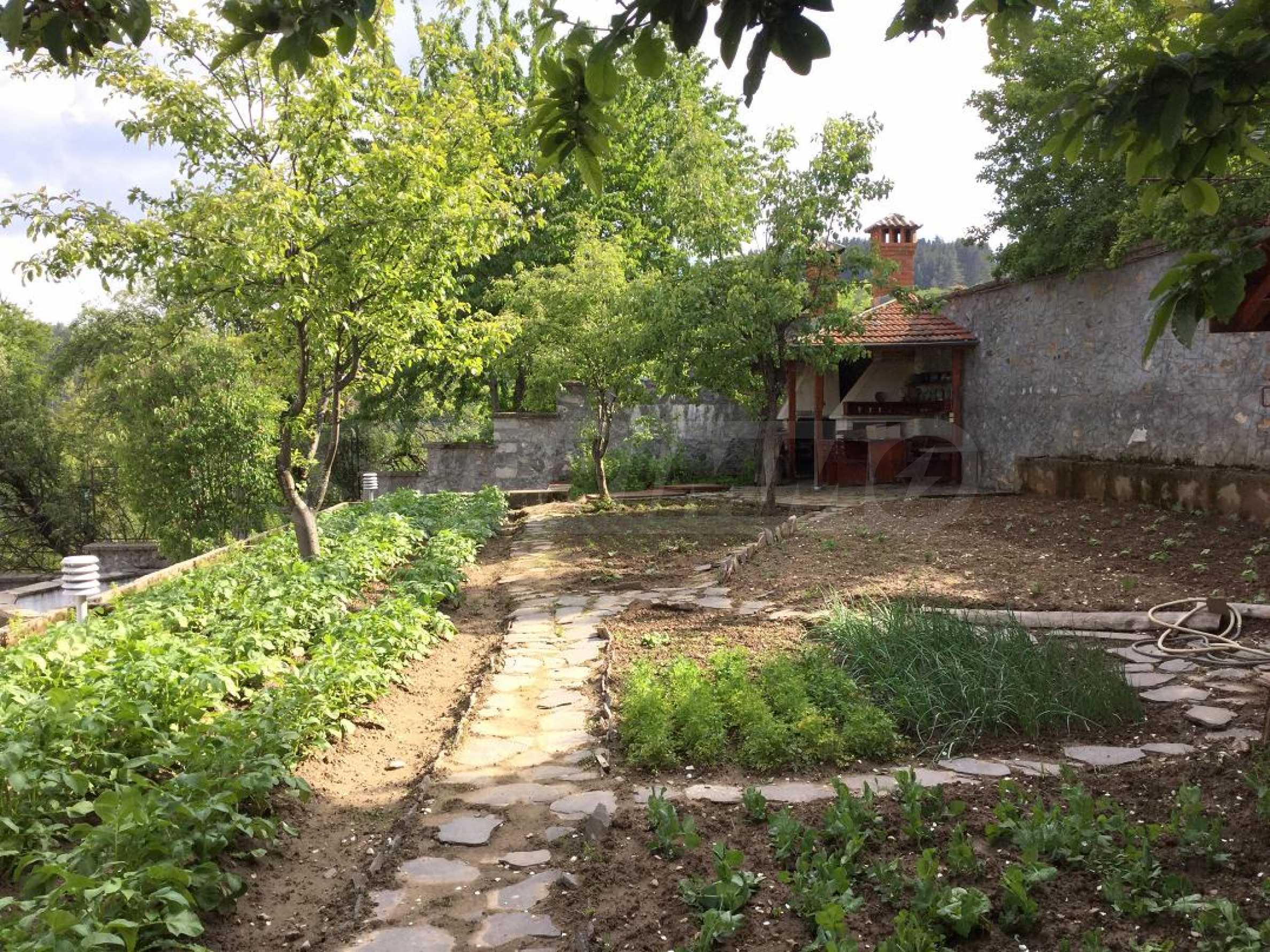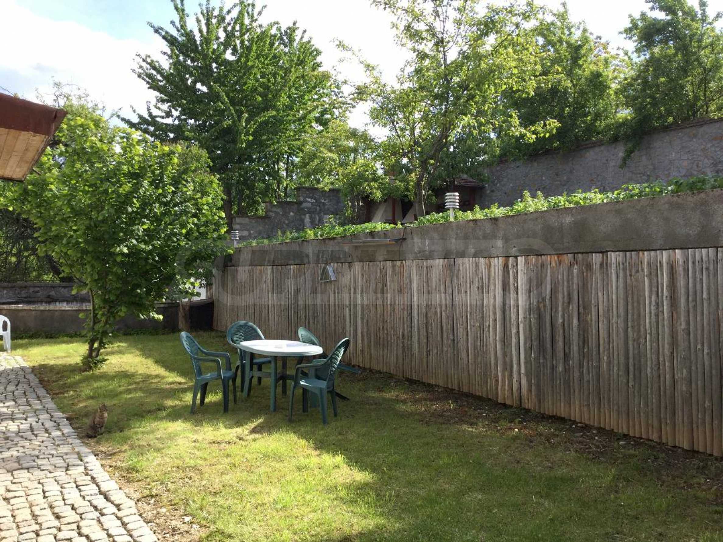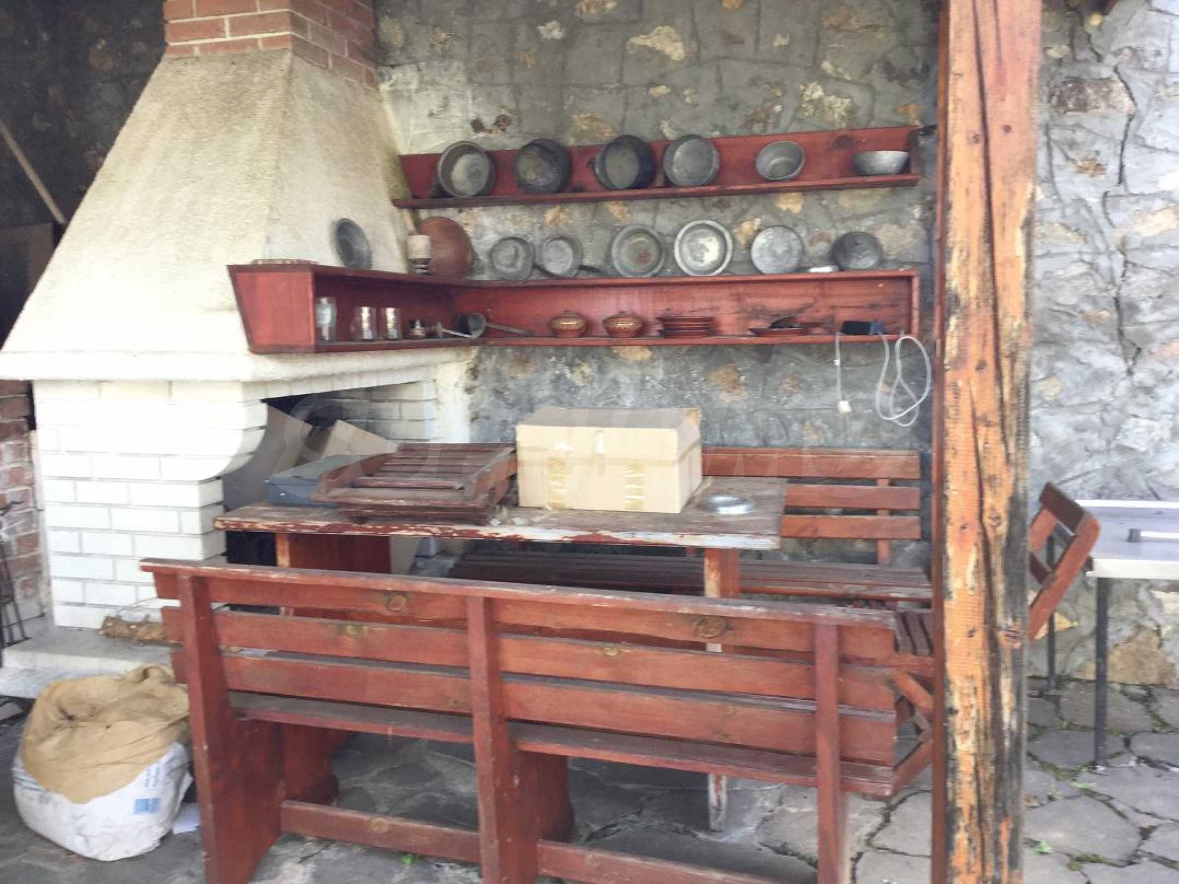 Жилищната част е с отделен двор-градина с рибарник и барбекю.