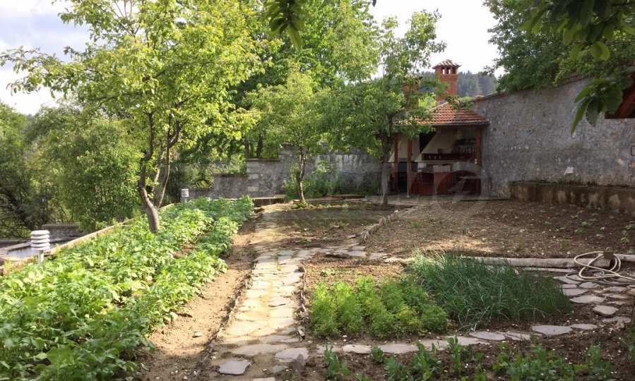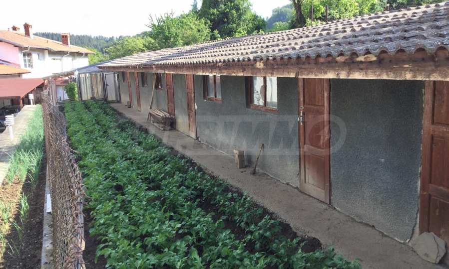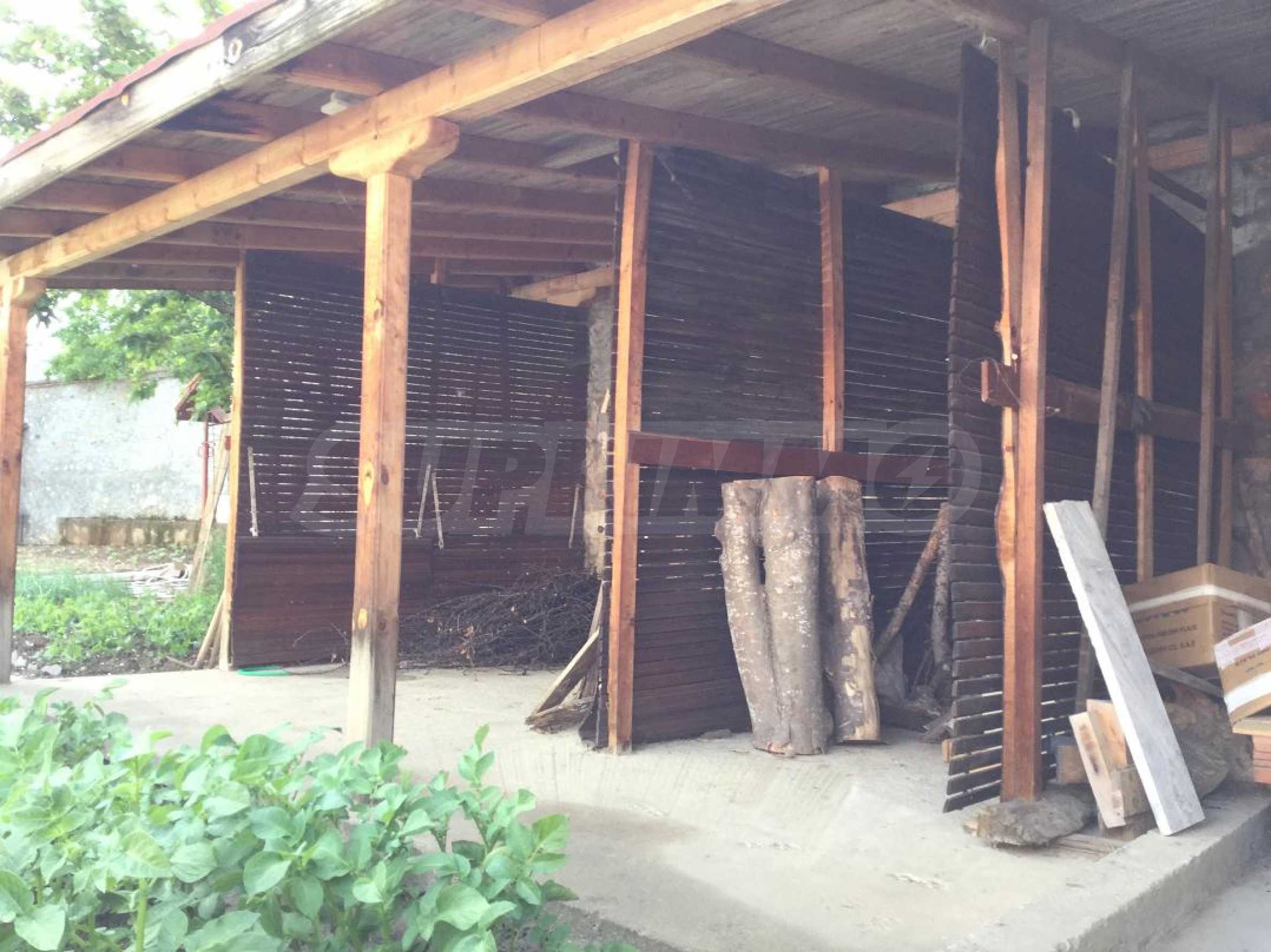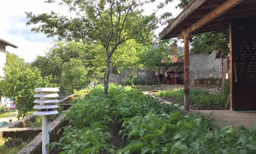 Жилищната част е с отделен двор-градина с рибарник и барбекю.