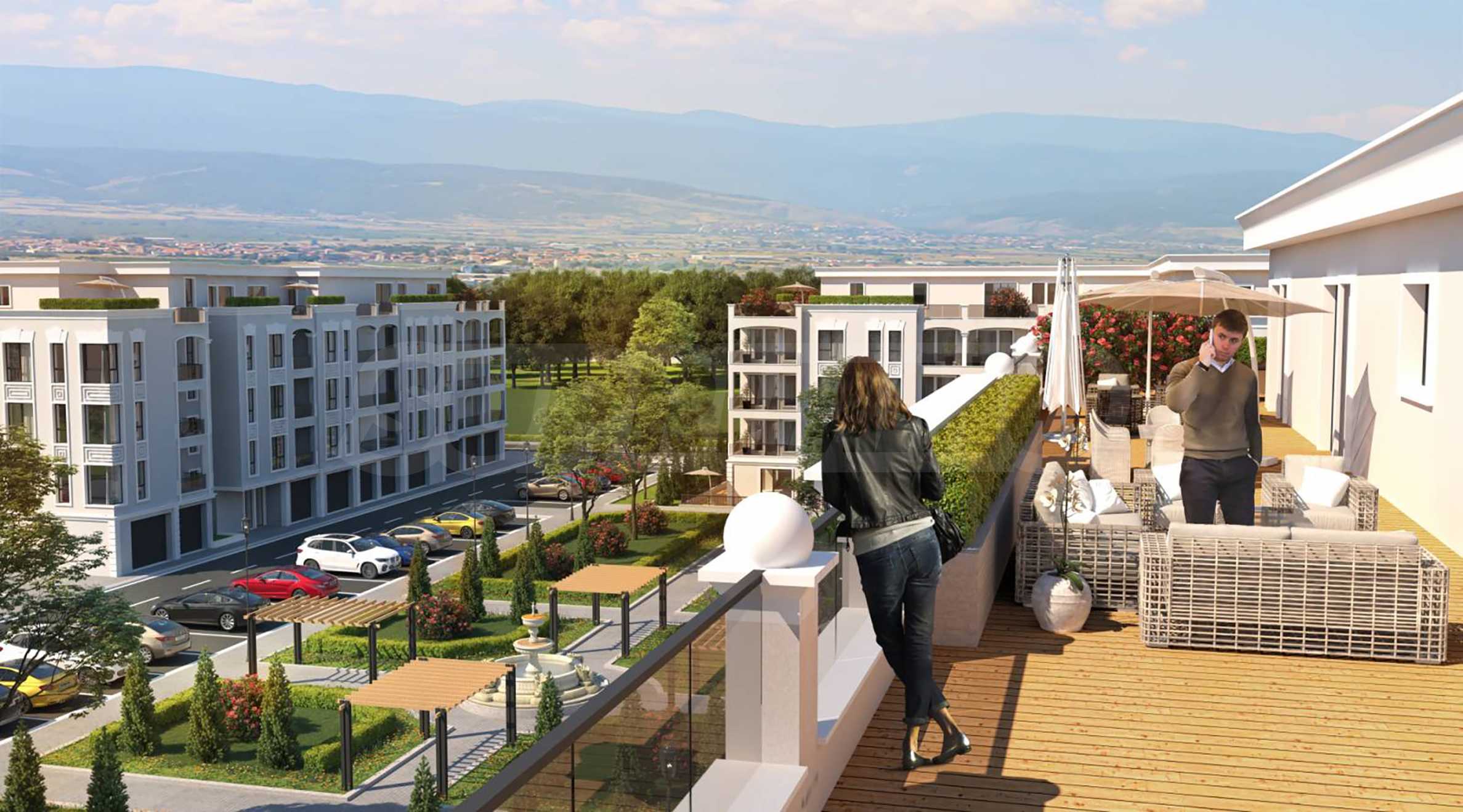 Предлагат се двустайни, тристайни и четиристайни апартаменти. Имотите притежават прекрасни панорамни тераси и индивидуални дворни пространства, които създават усещането и комфорта на еднофамилна къща.