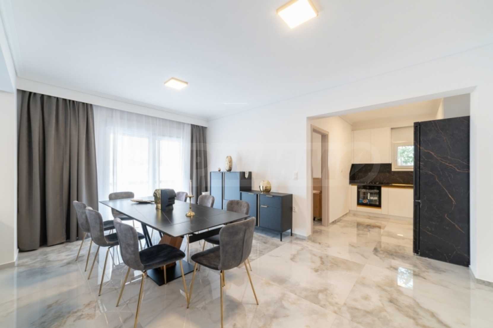 Продава апартамент на 1-ви етаж в района на Дексамени в Кавала. Апартаментът е след основен ремонт през 2024 г. и се предлага напълно обзаведен и оборудван. Състои се от голяма просторна и слънчева дневна с трапезария, две просторни спални и баня. Терасите на къщата са големи, удобни и предлагат красива гледка към морето и градския пейзаж. Имотът разполага с асансьор и е в отлично състояние и е в модерен и съвременен стил.