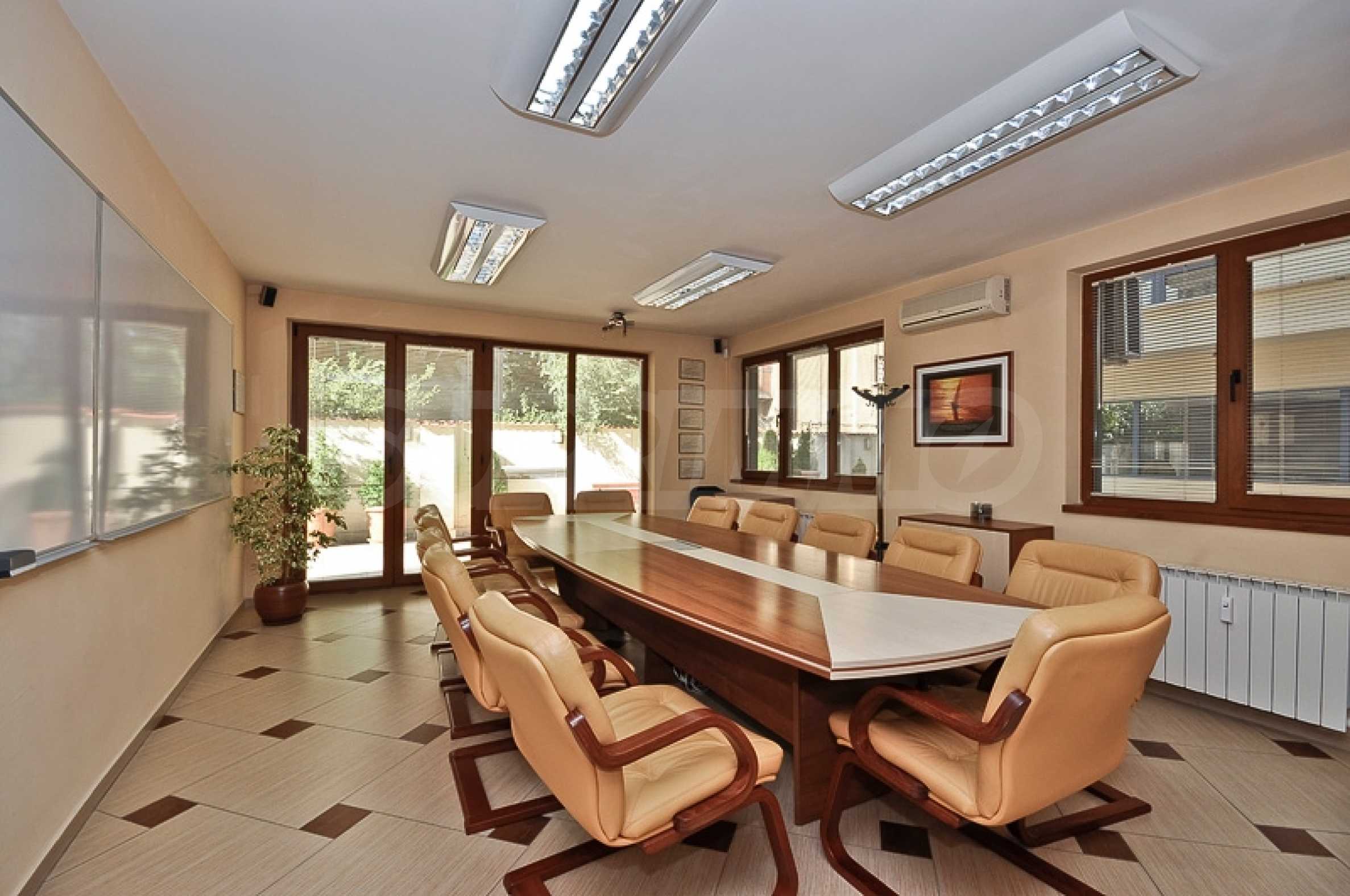 Модерна заседателна зала: На разположение е голяма и модерна конферентна зала, оборудвана с всичко необходимо за провеждане на бизнес срещи, презентации и конференции в професионална и комфортна среда.