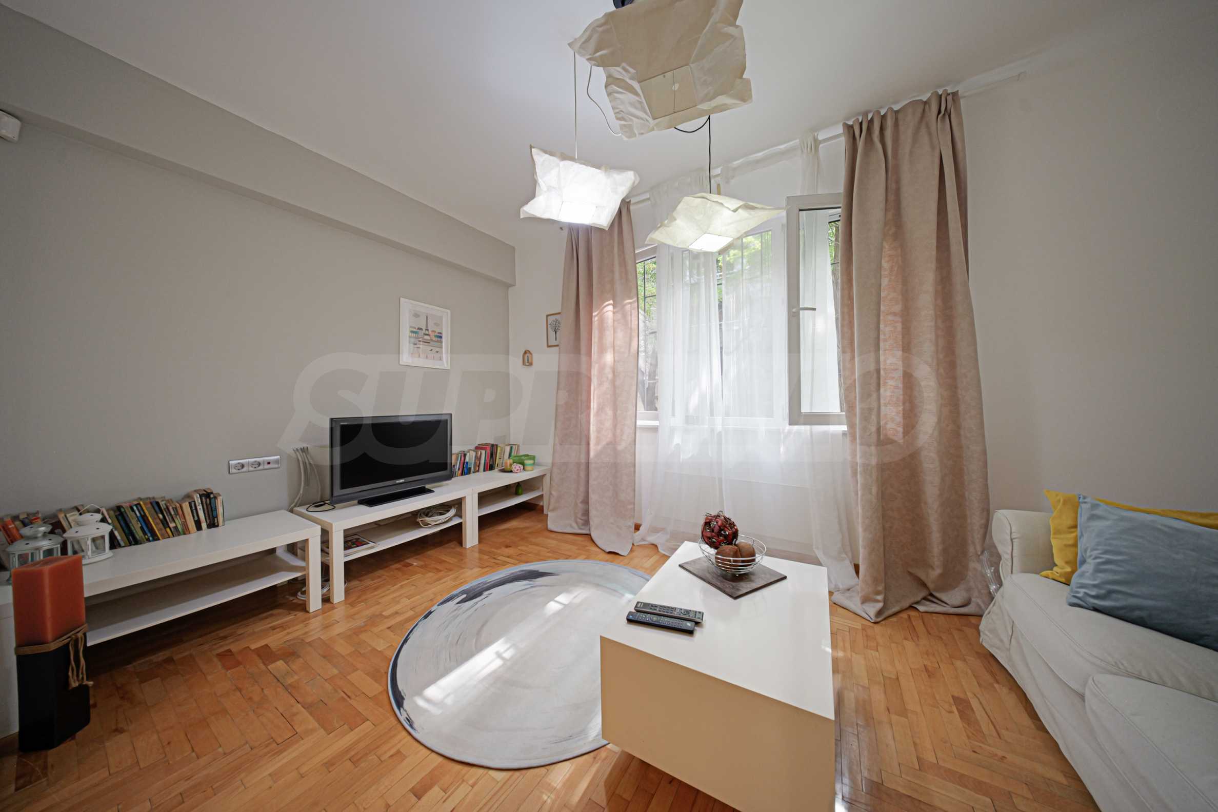 Апартаментът се намира на тиха и спокойна улица, на първи етаж от 5. Състои се от две спални, хол с кухня и трапезария. Топъл през зимата и прохладен през лятото, имотът предлага модерен интериор, с всичко необходимо за живеене. В жилището се допускат домашни любимци.