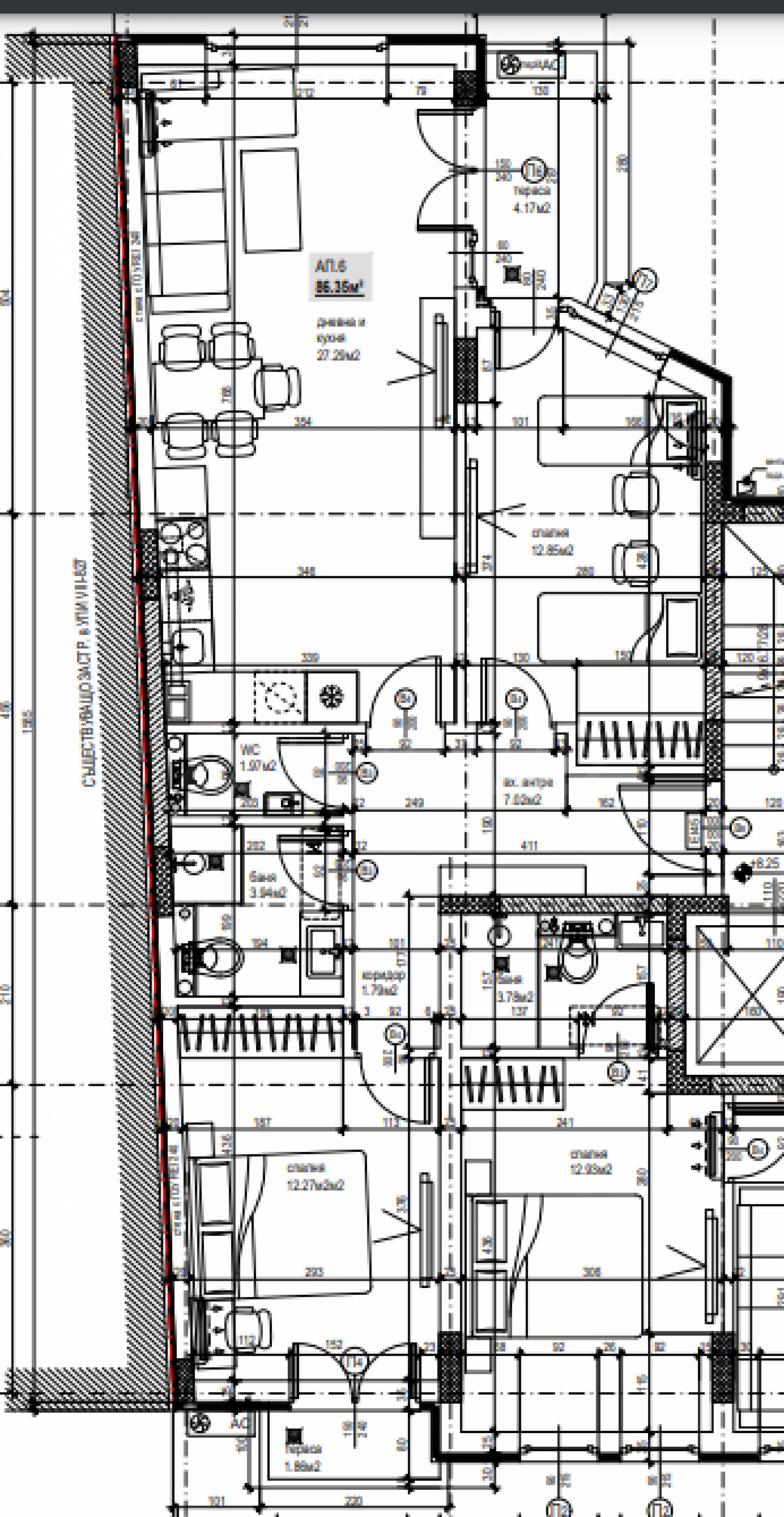 Жилището е с изложение юг/север и добро разпределение с просторни помещения без излишно големи тераси.
