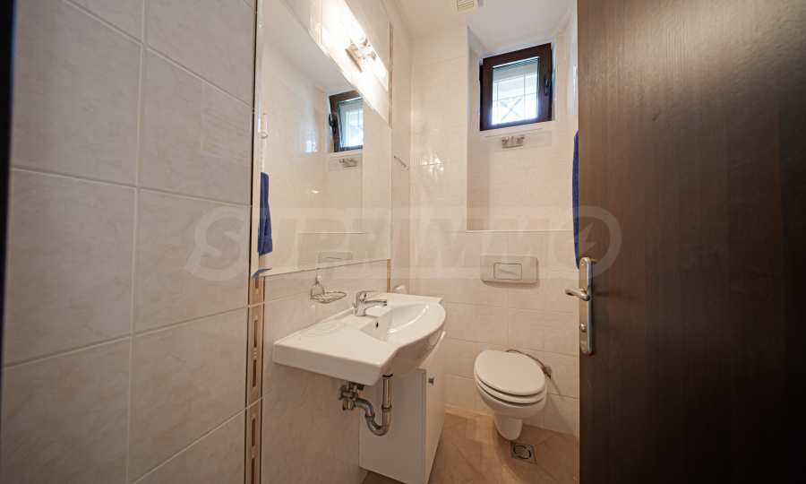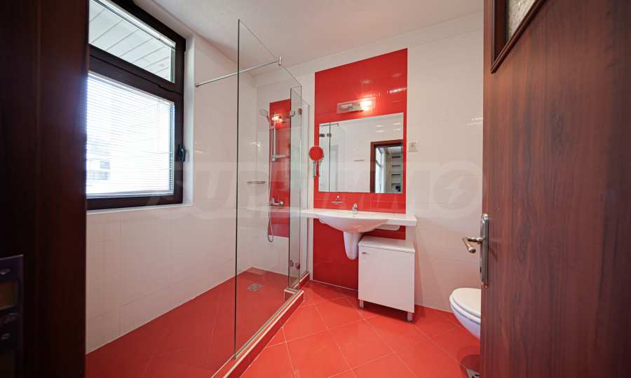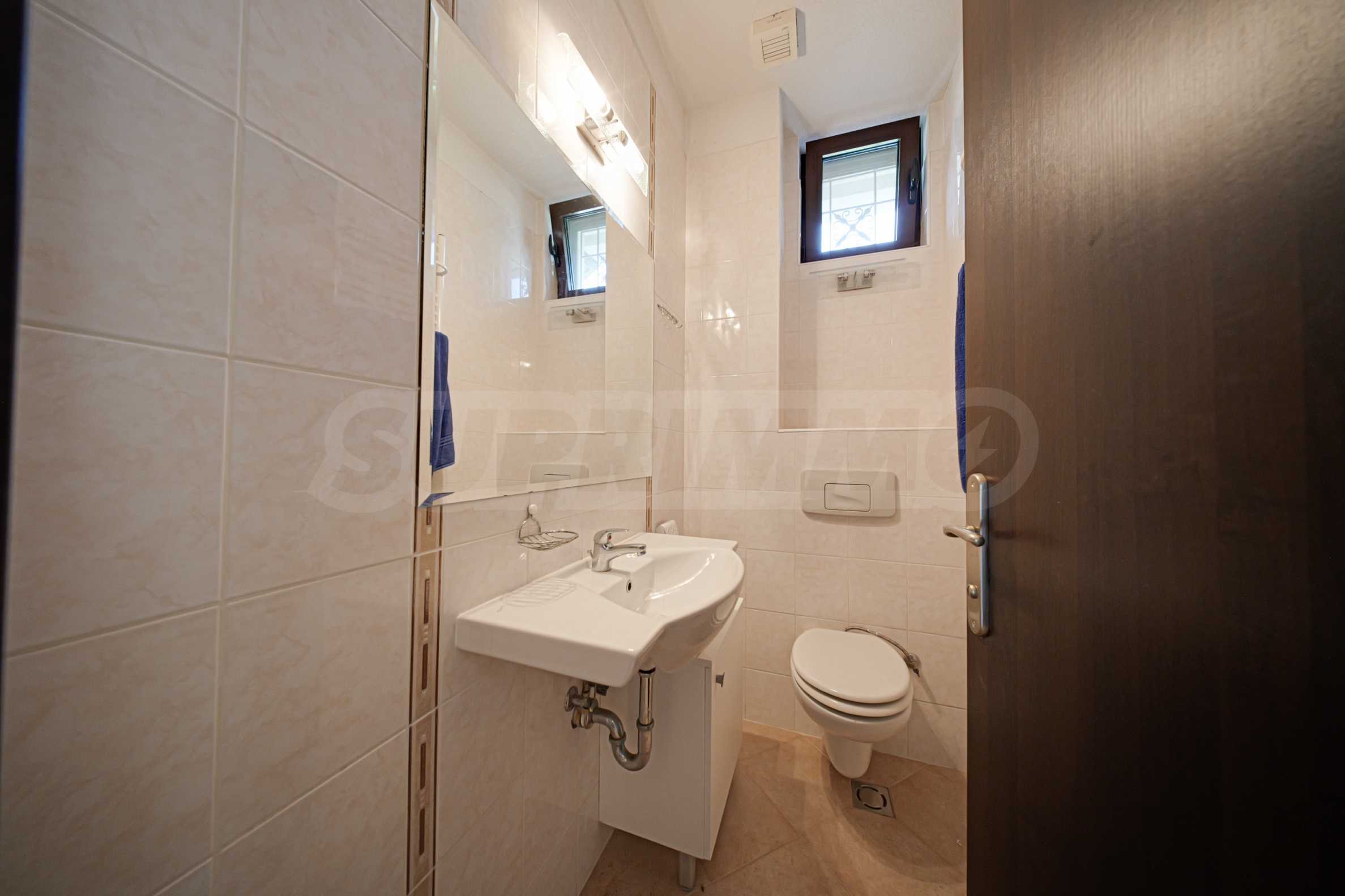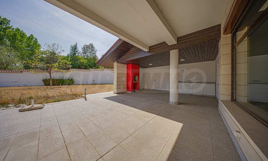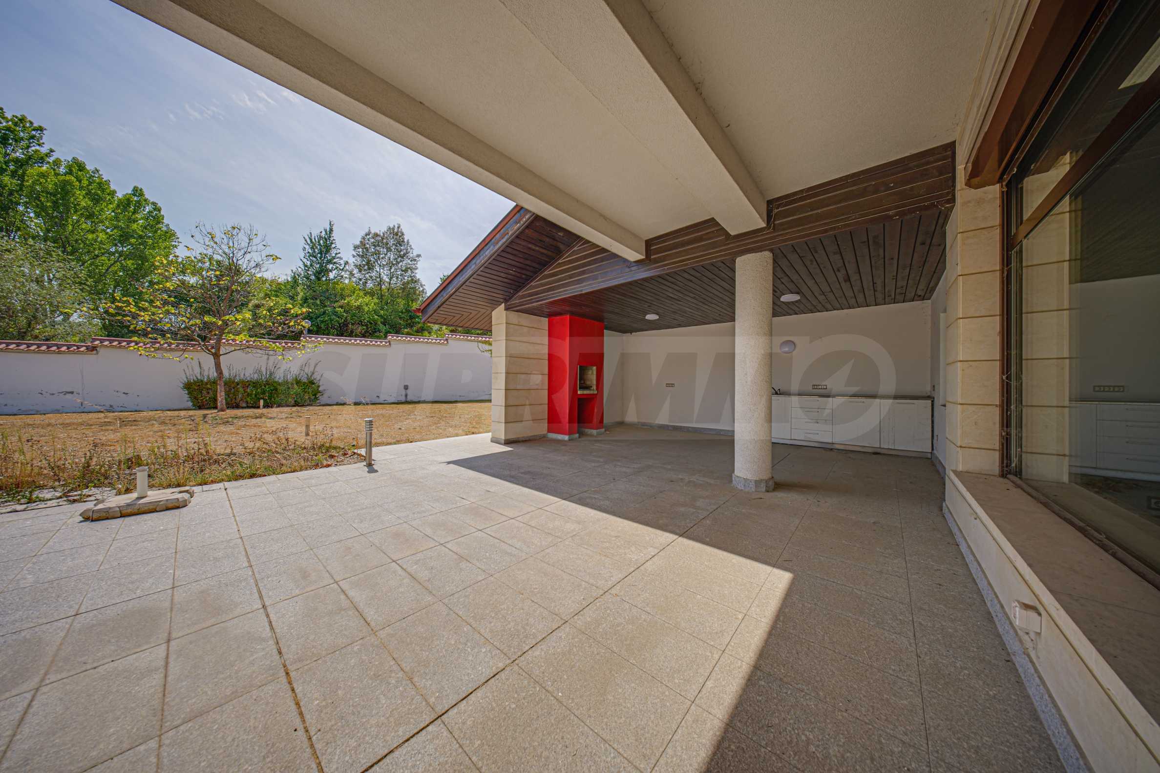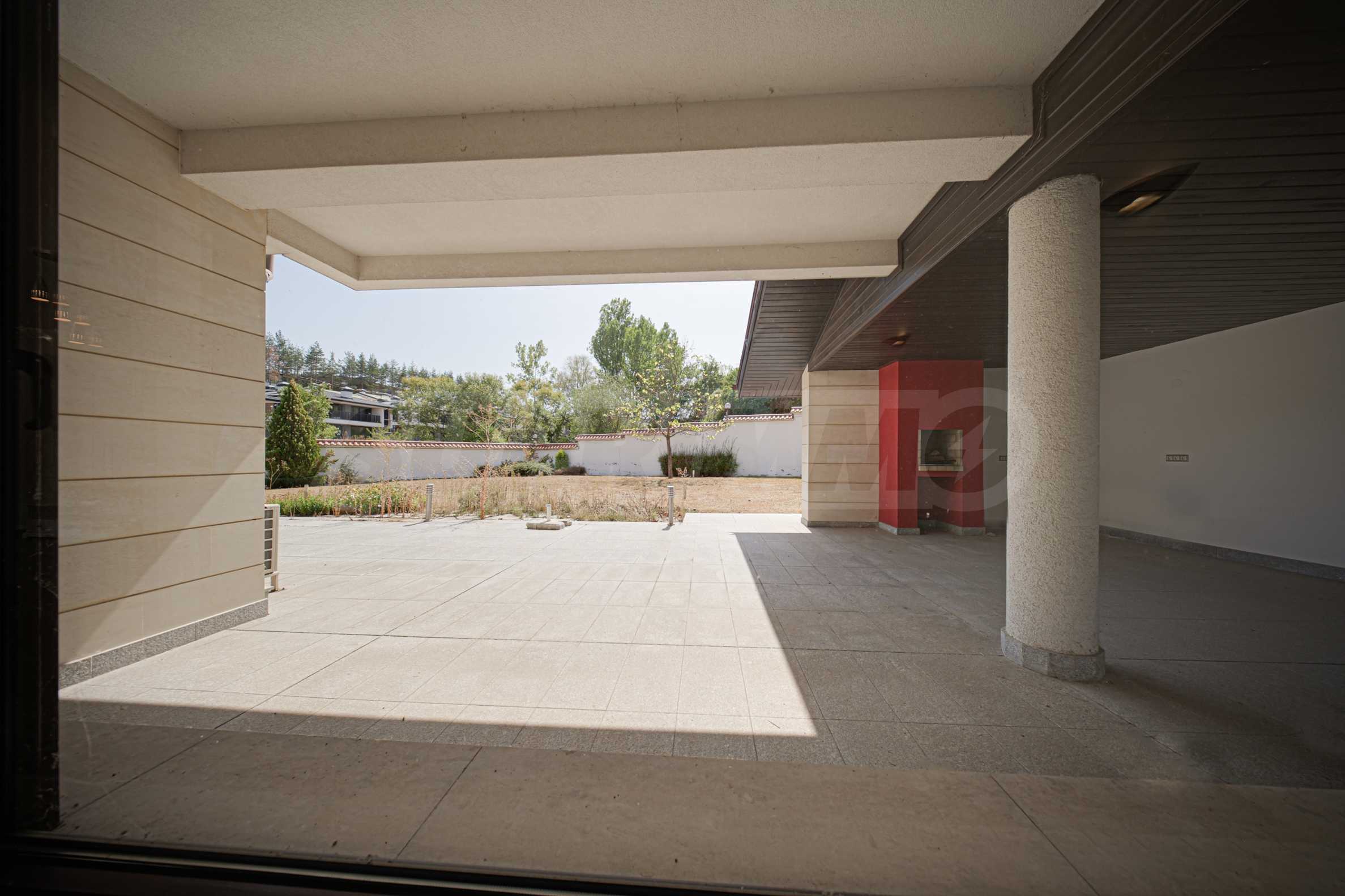 - 1-ви етаж: просторна дневна с камина, трапезария, кухня, баня с тоалетна, спалня с баня и тоалетна, тоалетна, голяма тераса;