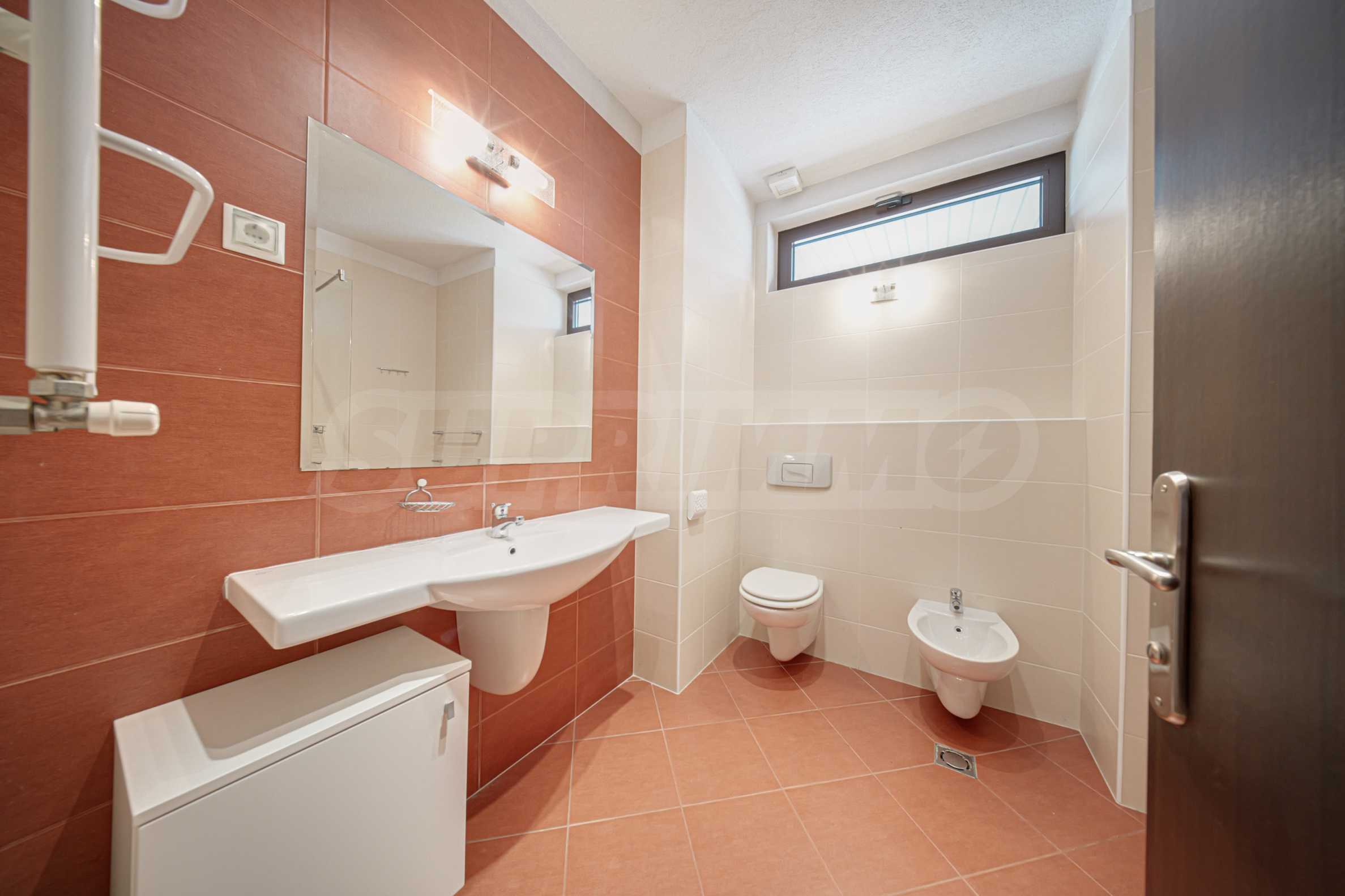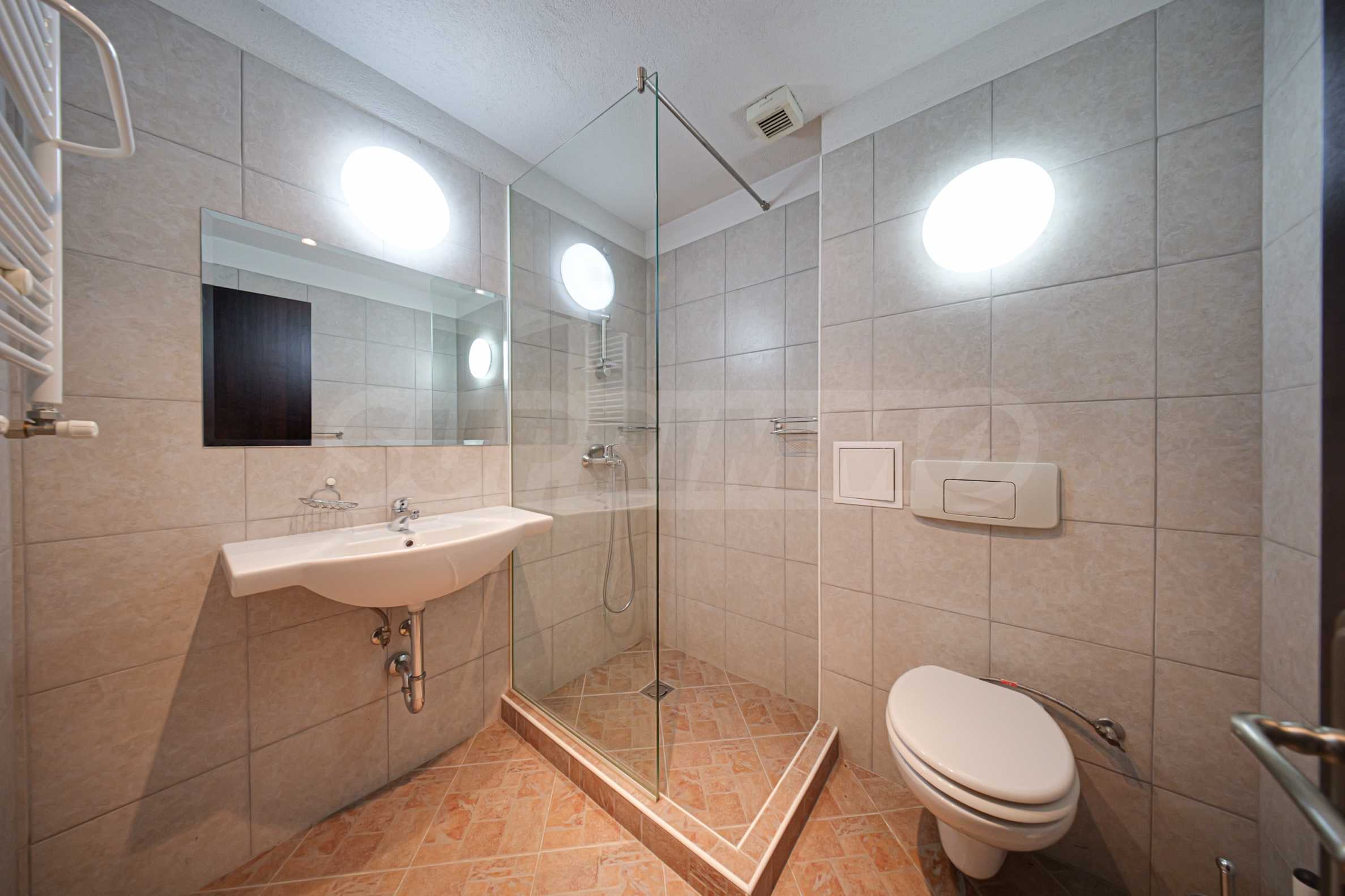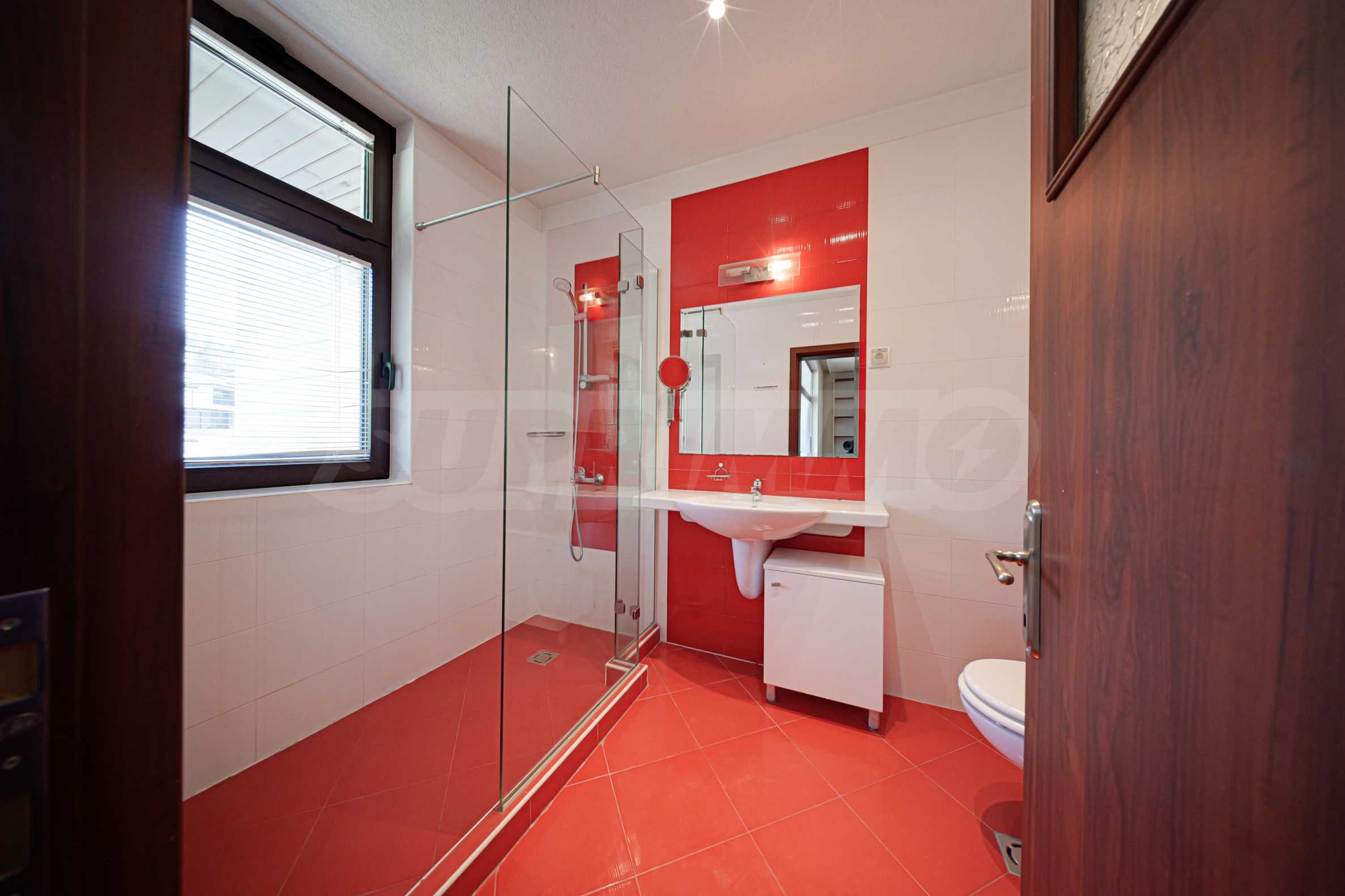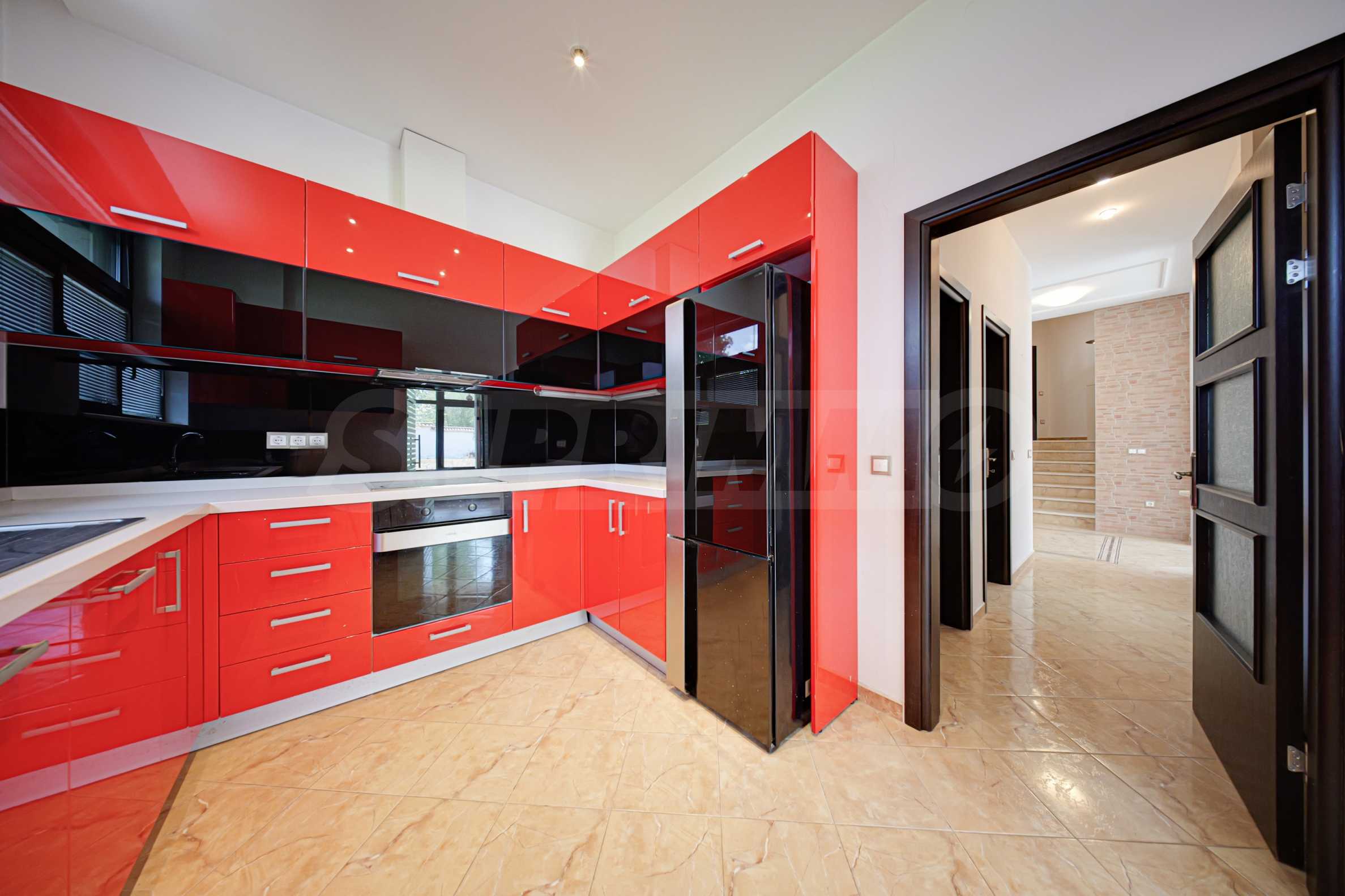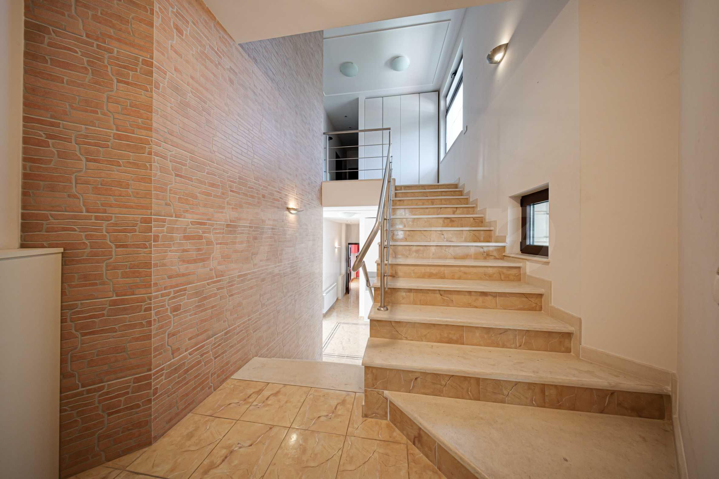 - 1-ви етаж: просторна дневна с камина, трапезария, кухня, баня с тоалетна, спалня с баня и тоалетна, тоалетна, голяма тераса;