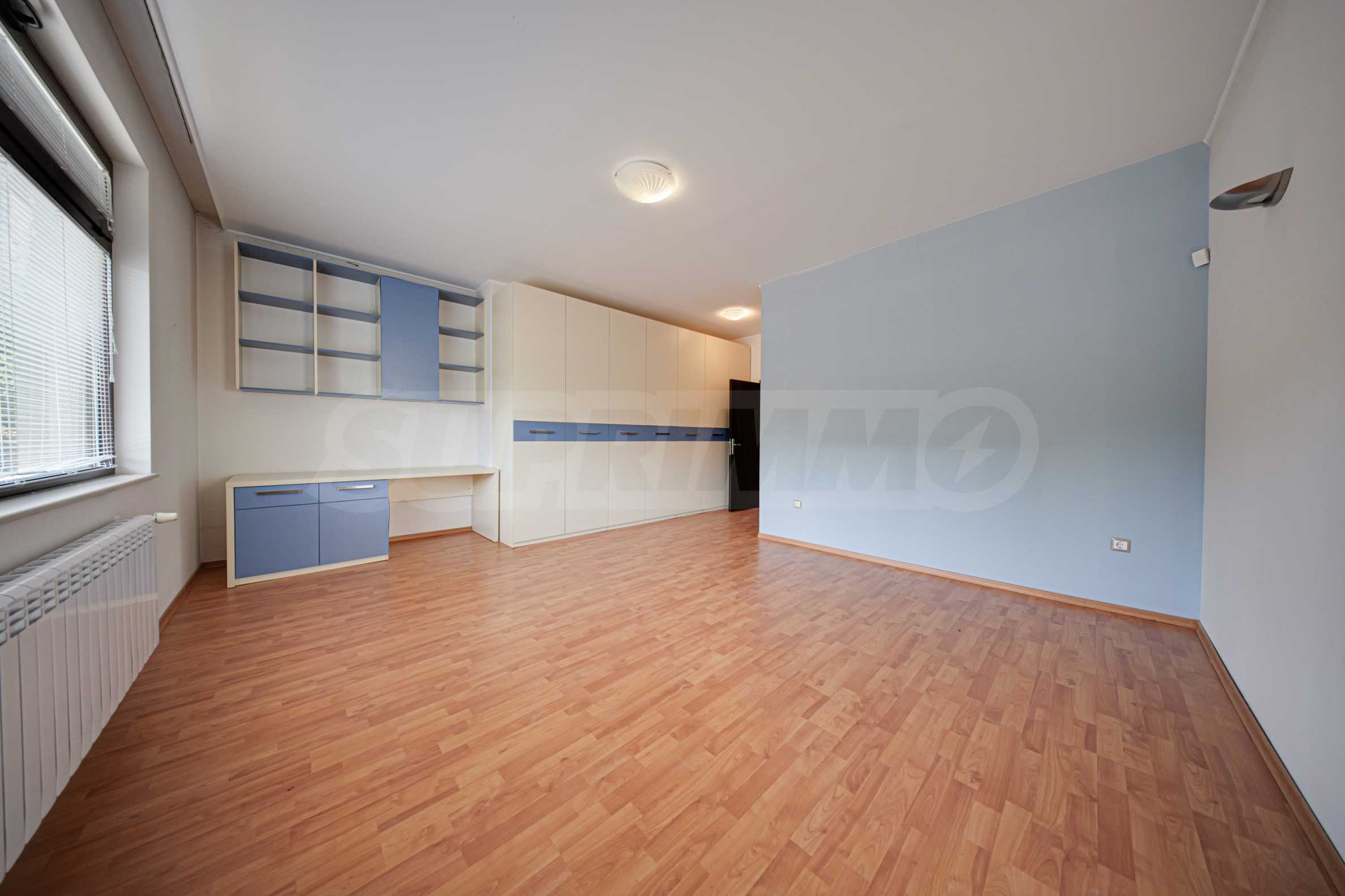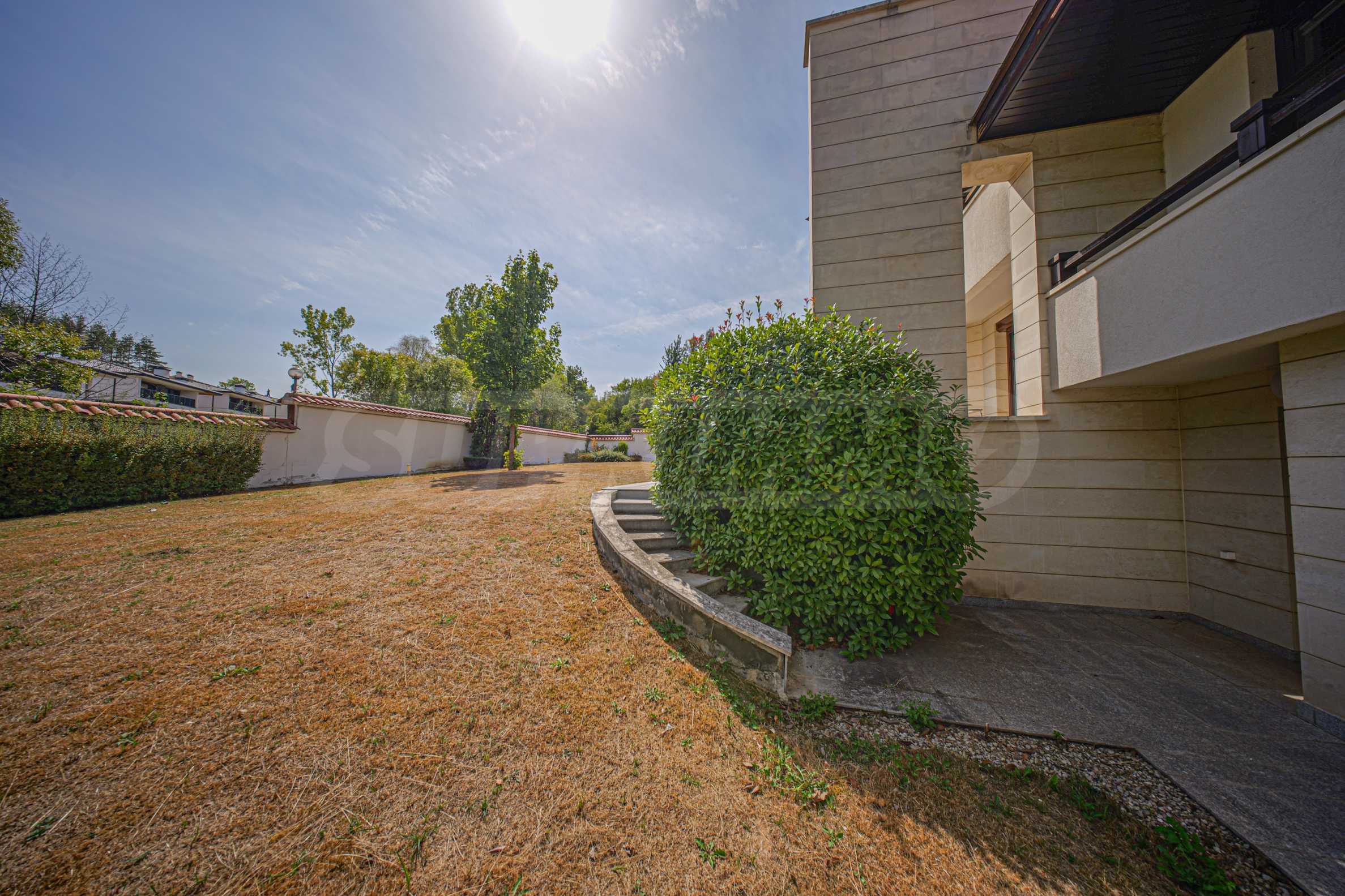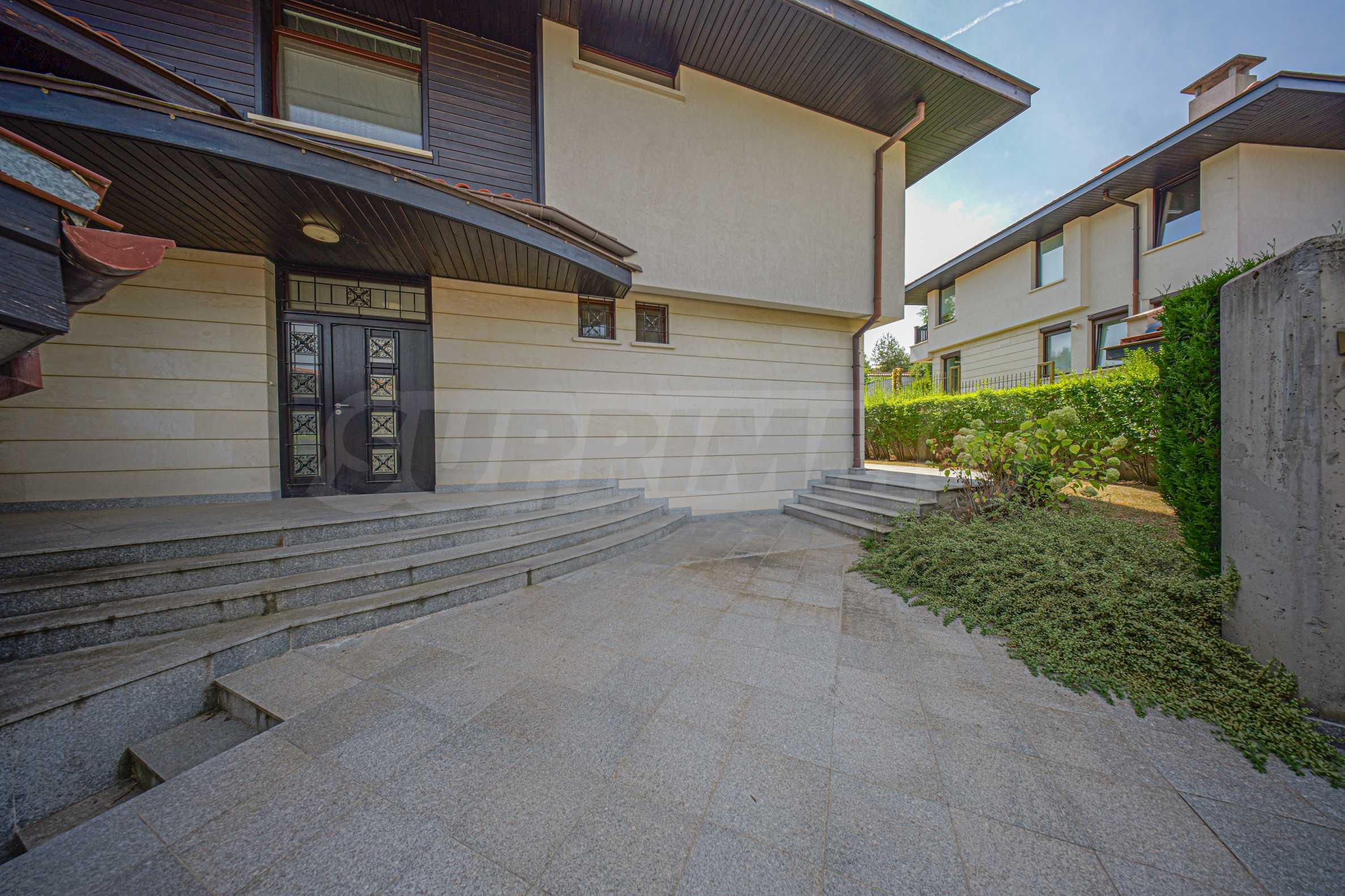 Представяме луксозна къща с голям двор и първокласни удобства, за под наем в елитен затворен комплекс, на непреходна локация в столицата, в подножието на Витоша, до входа на парк "Камбаните". Районът е от най-предпочитаните за живеене поради чистия въздух, малкото застрояване, парк и зелени площи, бързия и удобен достъп до различни точки на града посредством Околовръстен път.