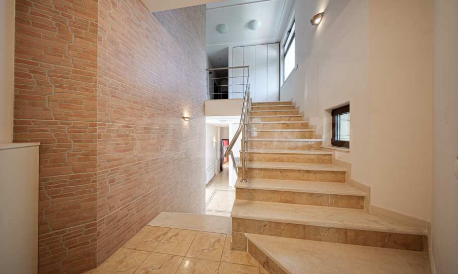 - сутерен: двоен гараж, две паркоместа, фитнес, СПА, сауна, баня с тоалетна, спалня с кухня и баня за персонал, мокро помещение, складово помещение;