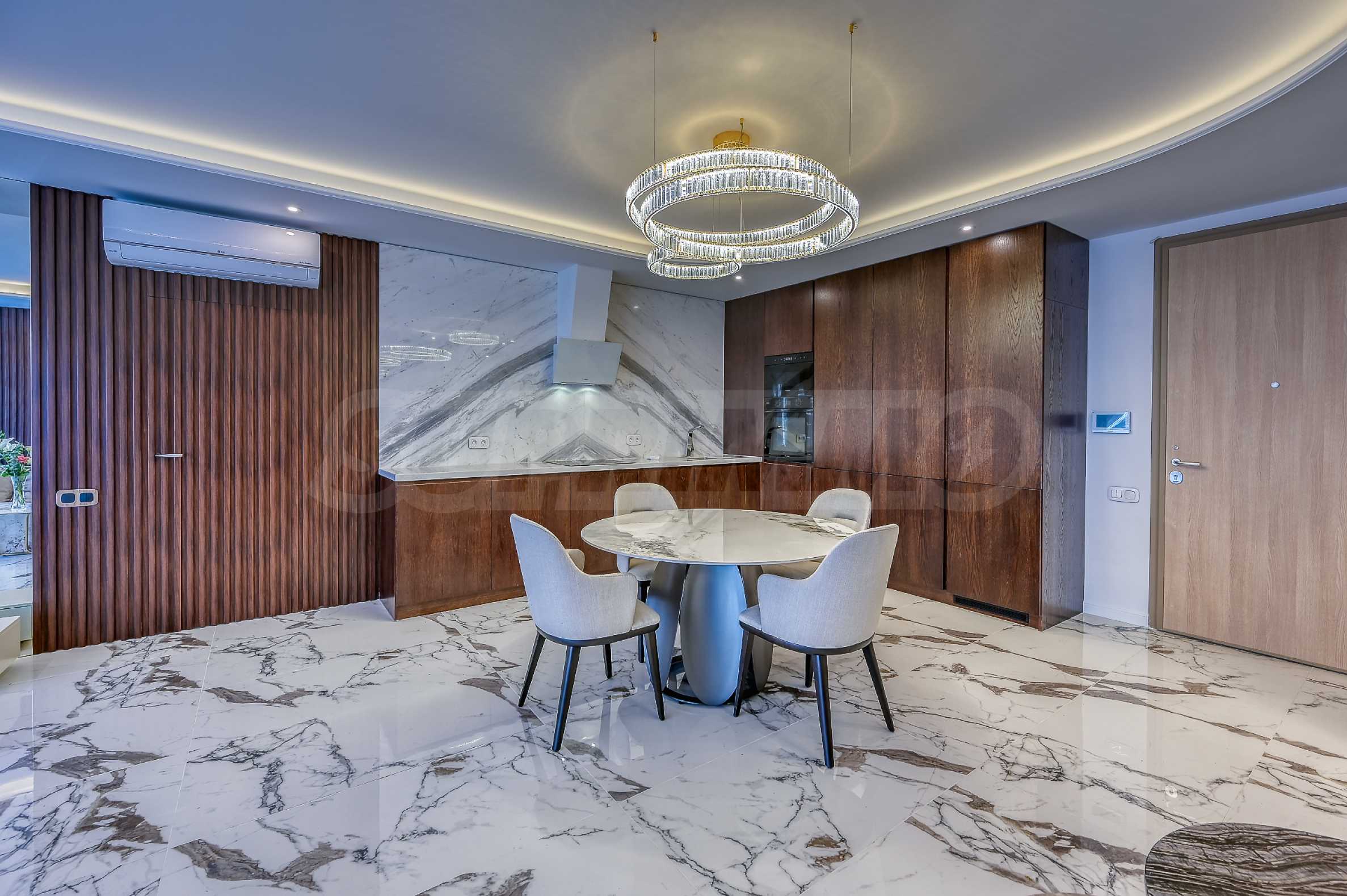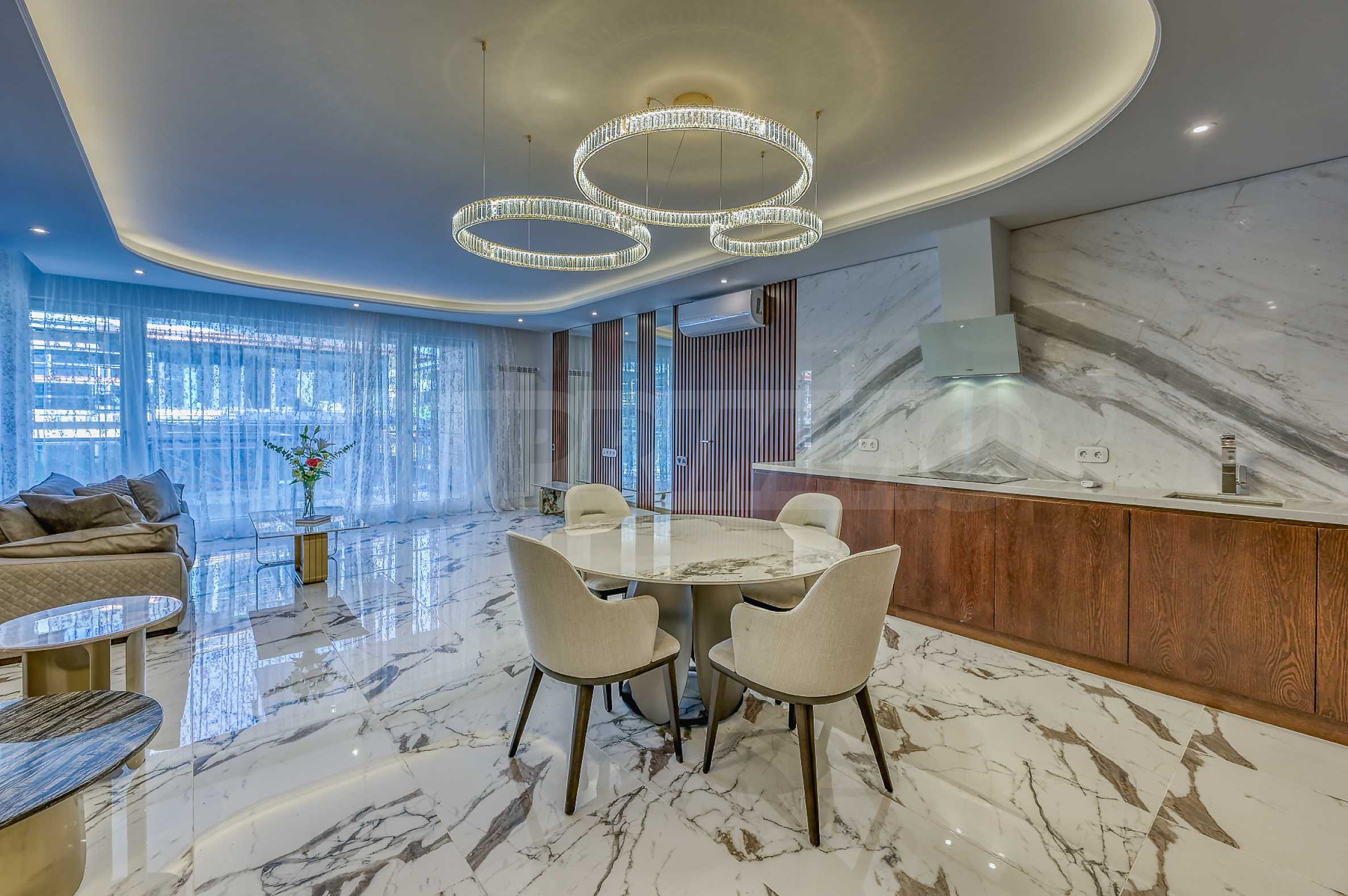 Отлична локация, дизайнерско обзавеждане от най-висок клас, напълно завършен и готов за нанасяне апартамент, отопление на газ и климатици.