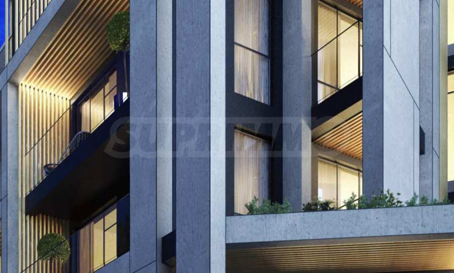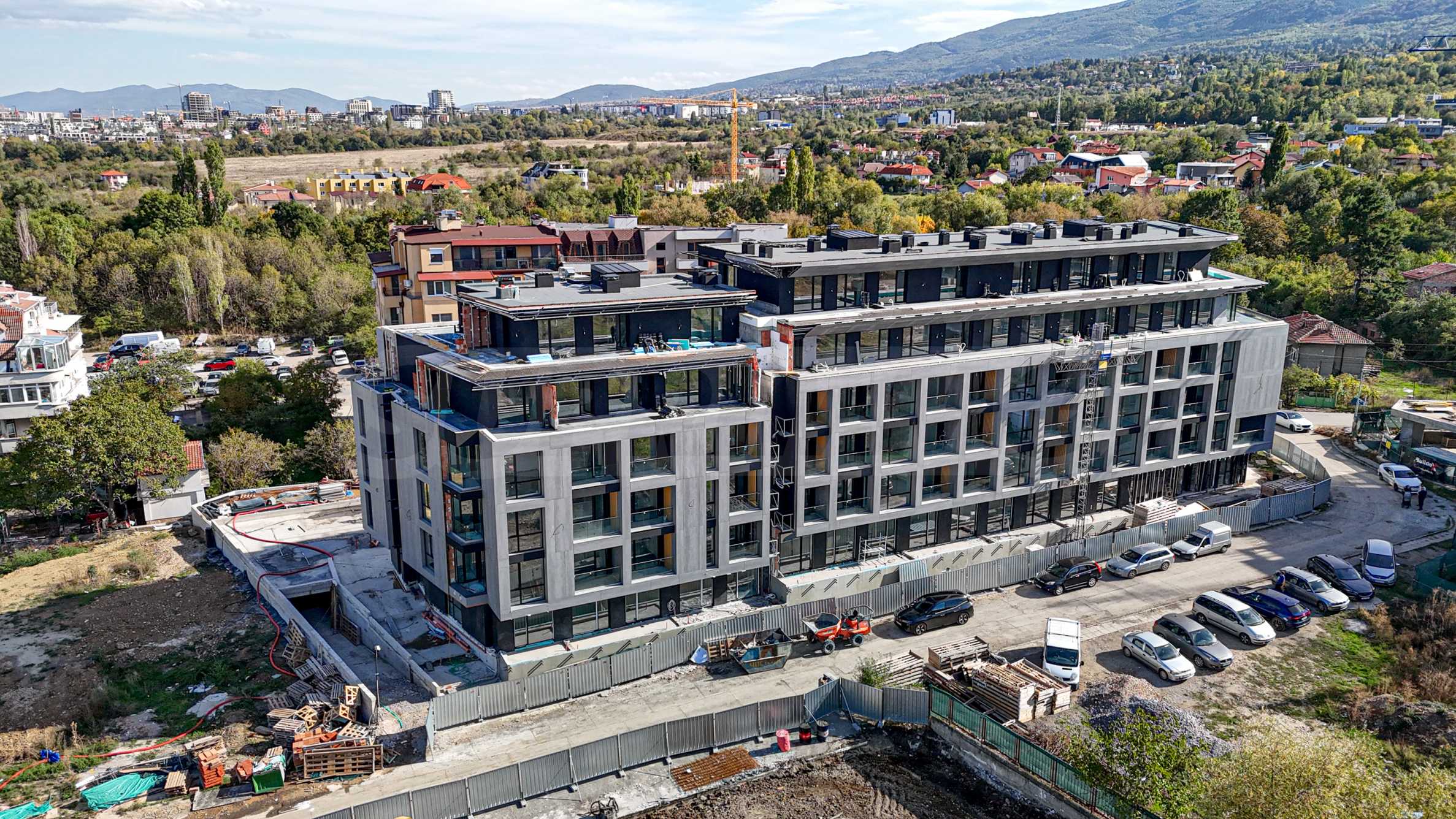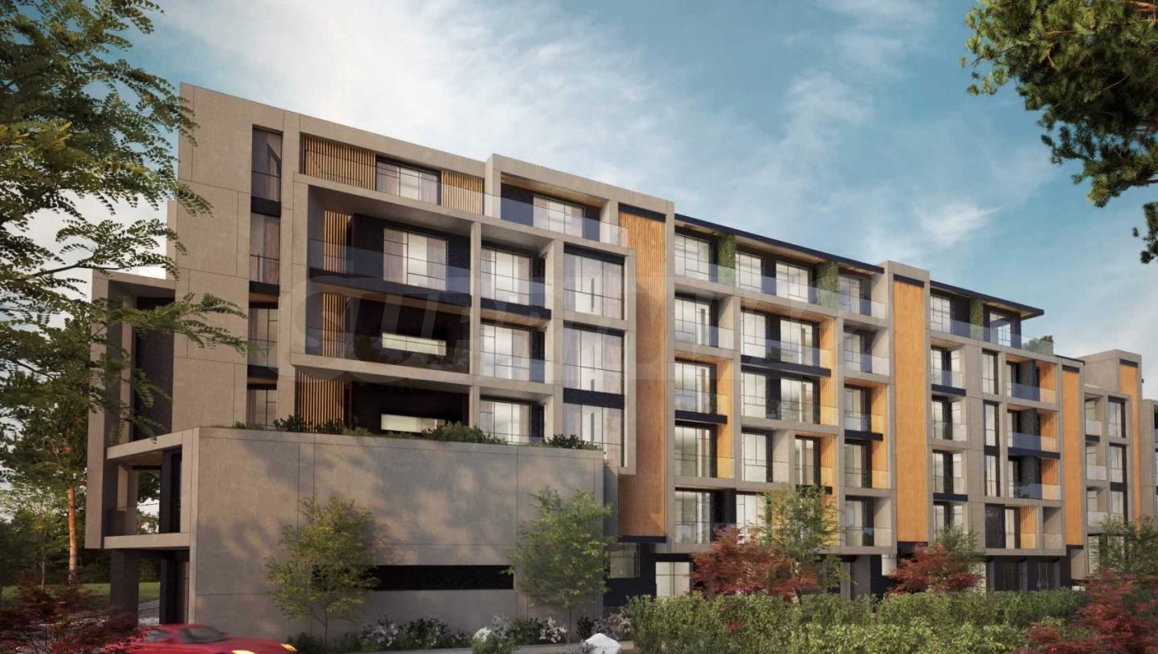 Сградата впечатлява с елегантен дизайн с изчистени линии, комбинация от травертин и дърво, и френски прозорци, които не само гарантират изобилие от естествена светлина, но и откриват гледки към Витоша и зелените площи около комплекса. На разположение на собствениците ще има богато озеленен двор с алеи за разходки и места за отдих, оформени с висока и ниска растителност и водни ефекти, както и ограничен достъп за повече сигурност и спокойствие. Паркирането е решено с подземни паркоместа, а на ниво партер ще се помещава голям супермаркет.