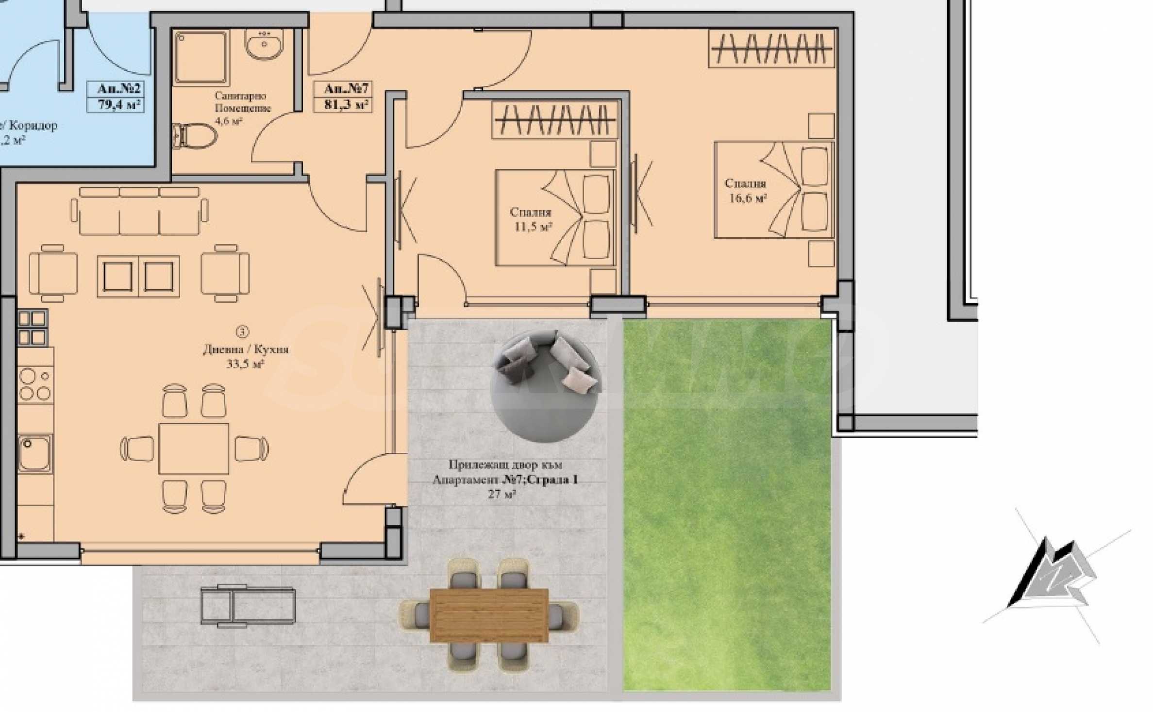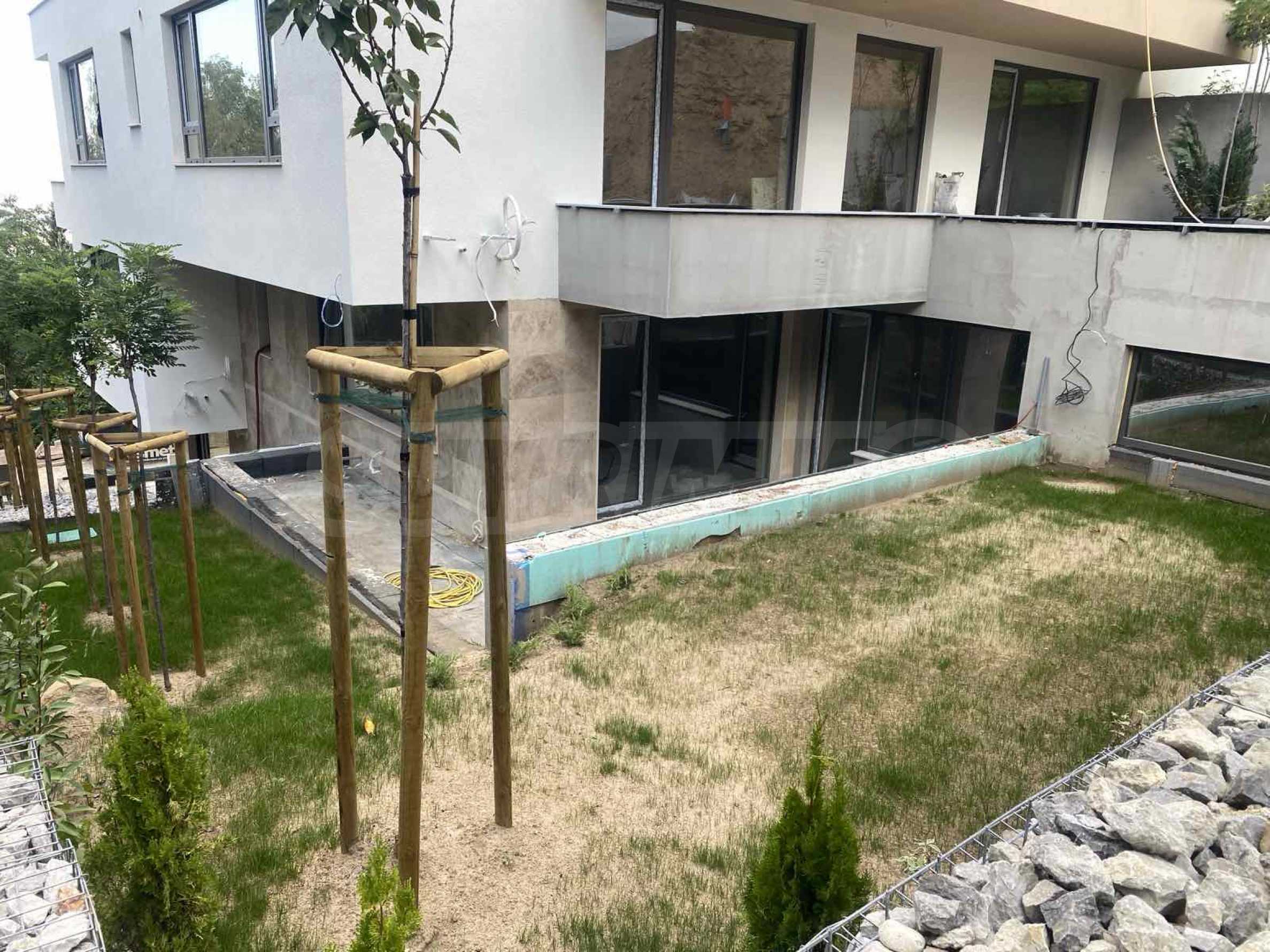 Представяме Ви тристаен апартамент част от бутиков жилищен проект в кв. „Бояна“ – един от най-престижните райони на София. Проектът се състои от две модерни жилищни сгради с елегантна архитектура, вече завършени и с издаден АКТ 16, което осигурява възможност за незабавно нанасяне. Имотът разполага с обща площ 97,56 м2., разпределен между входно антре, всекидневна с кухненски бокс, две спални, баня с тоалетна и тераса с допълнителен двор от 27 кв.м.