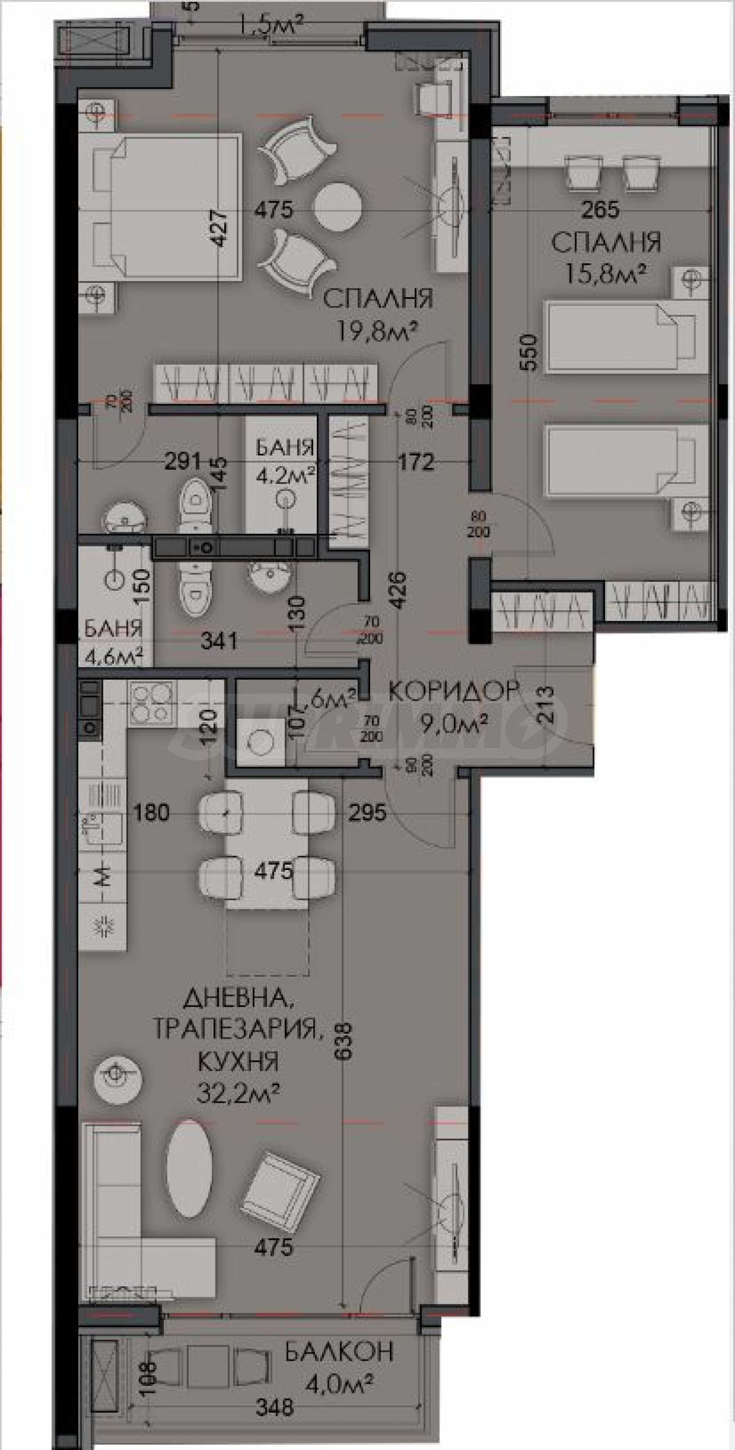 - детска стая - 15.80 кв.м;