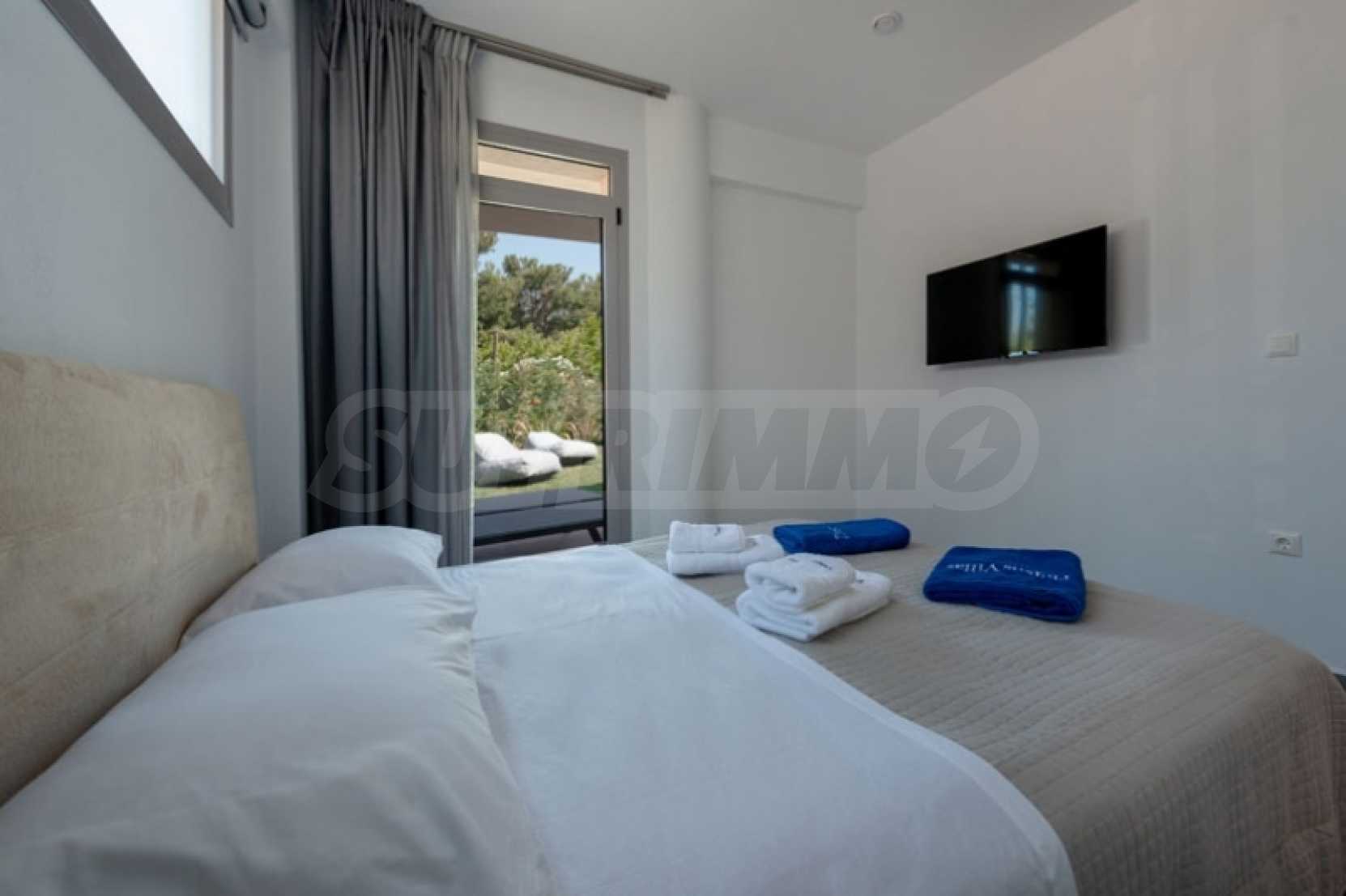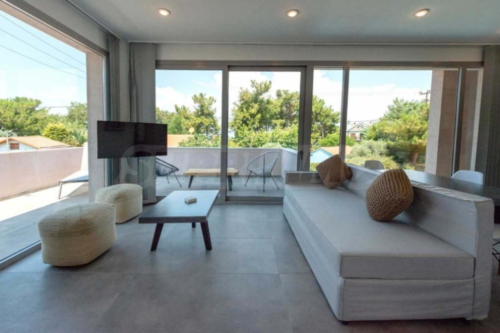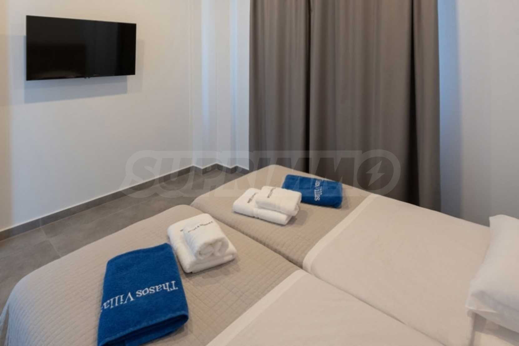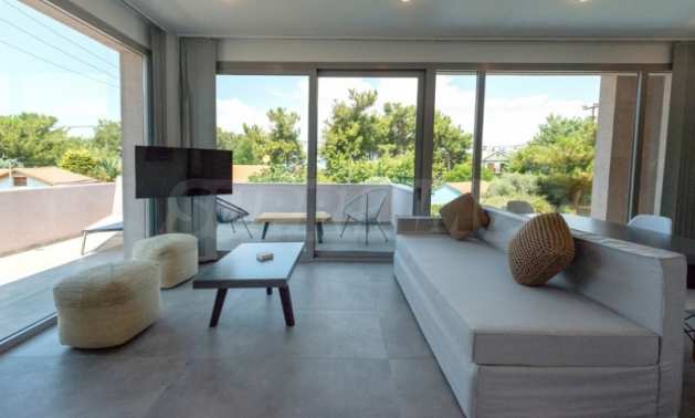 Мезонет ЗА ПРОДАЖБА в Тасос Рахони за € 550 000 Ексклузивност. Тези 150 кв.м. обзаведен мезонет е на приземния етаж и разполага с 4 спални, 2 всекидневни, 2 кухни, 4 бани. Имотът разполага и с Отоплителна система: Климатик, Подова настилка, Гледка към градския пейзаж, Дограма: Синтетична, Блиндирана врата, Градина, Басейн, Климатик, Алармена система, Ел.уреди, Мрежи против насекоми, Стъклопакети, Барбекю, сателитна чиния, открито пространство. Сградата е построена през 2020 г. Площ на парцела: 400 кв. Енергиен клас на сградата: B Разстояние от морето 25 метра,