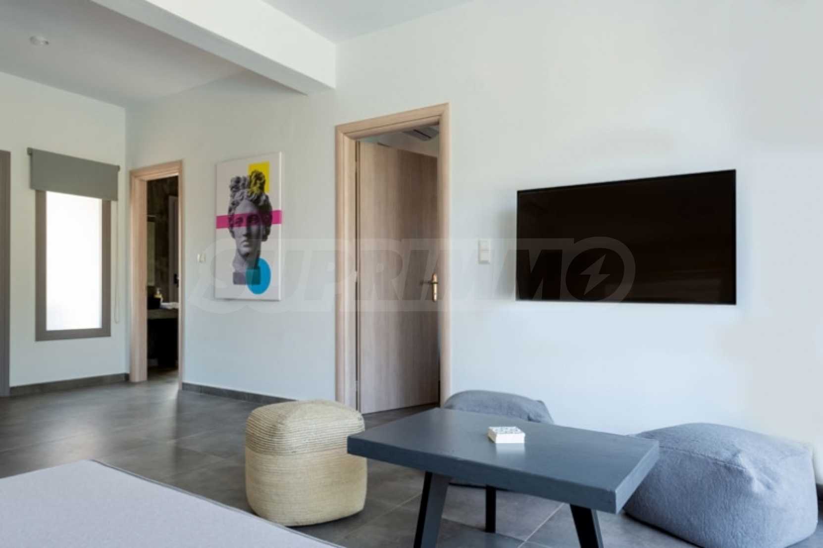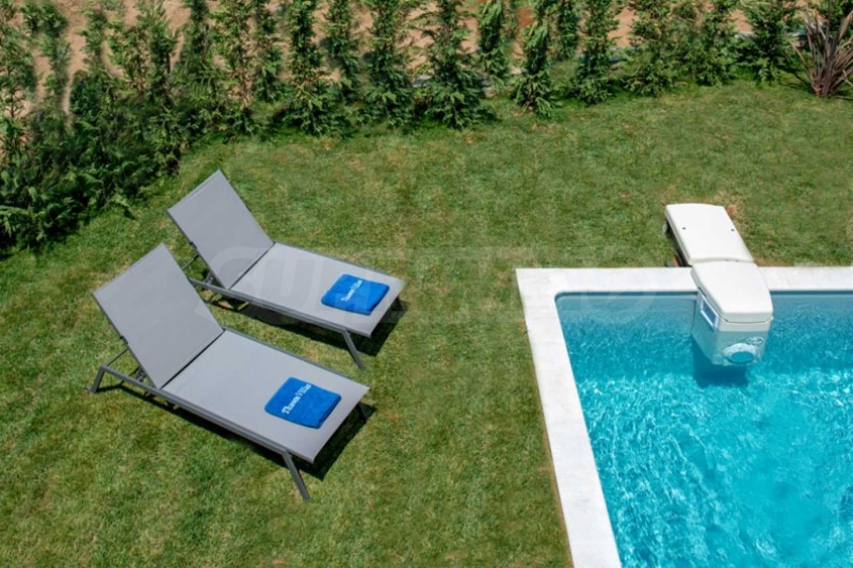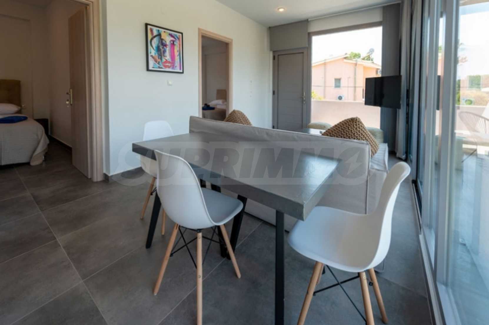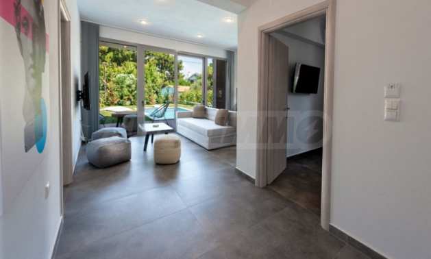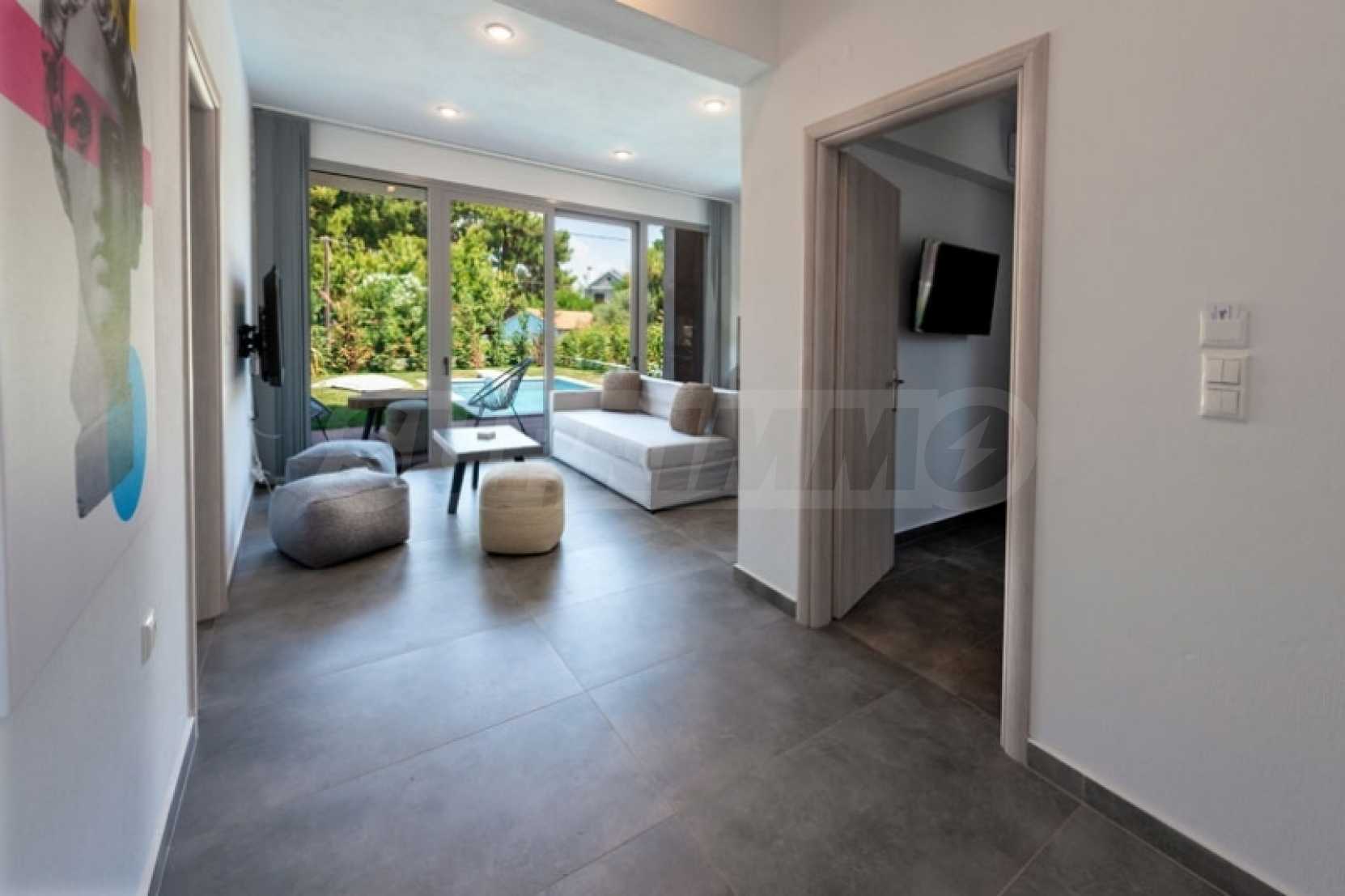 Мезонет ЗА ПРОДАЖБА в Тасос Рахони за € 550 000 Ексклузивност. Тези 150 кв.м. обзаведен мезонет е на приземния етаж и разполага с 4 спални, 2 всекидневни, 2 кухни, 4 бани. Имотът разполага и с Отоплителна система: Климатик, Подова настилка, Гледка към градския пейзаж, Дограма: Синтетична, Блиндирана врата, Градина, Басейн, Климатик, Алармена система, Ел.уреди, Мрежи против насекоми, Стъклопакети, Барбекю, сателитна чиния, открито пространство. Сградата е построена през 2020 г. Площ на парцела: 400 кв. Енергиен клас на сградата: B Разстояние от морето 25 метра,
