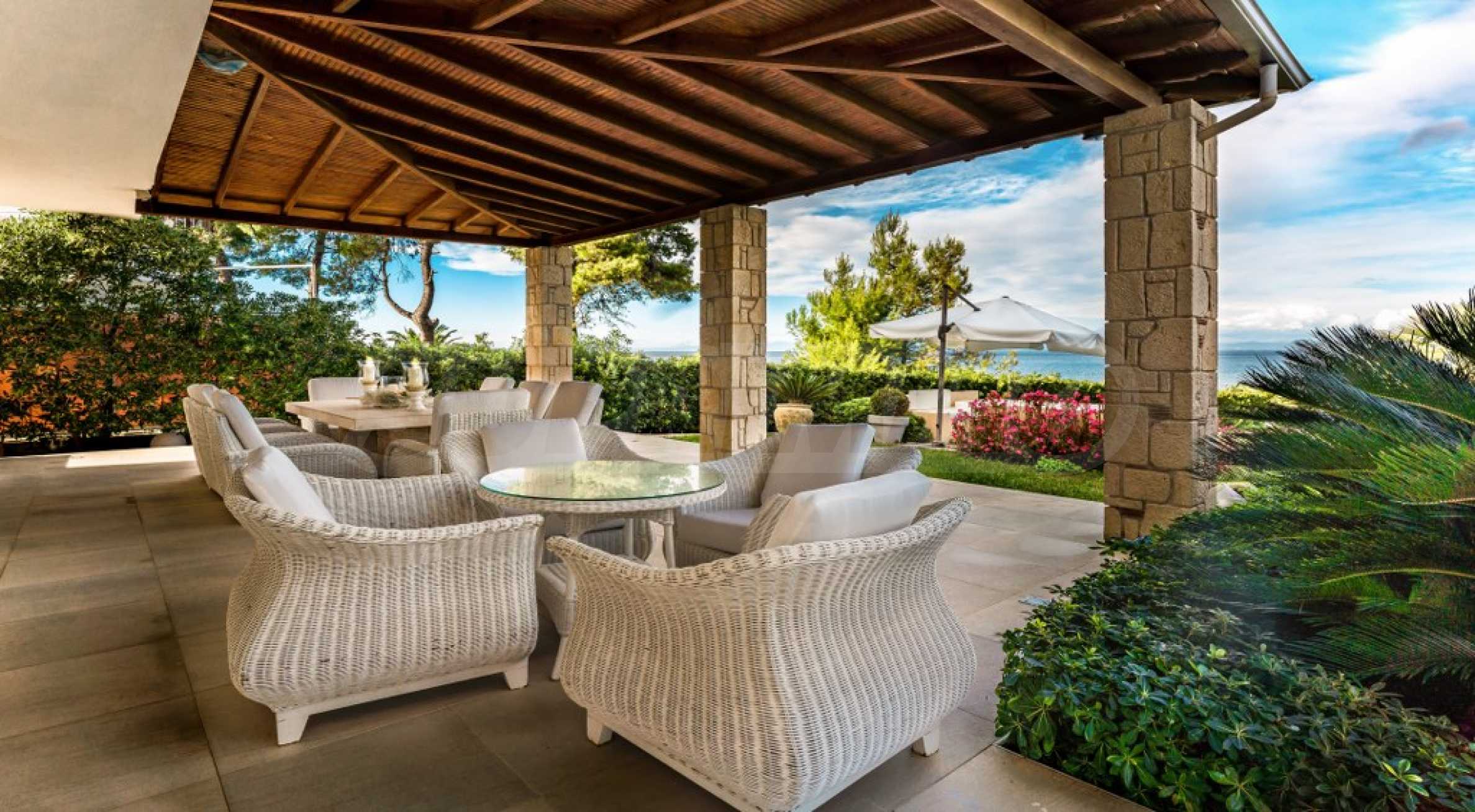 Представяме ви луксозна вила с площ 300 кв.м, разположена на първа линия на морето, върху парцел от 2000 кв.м. Тази изключителна резиденция предлага изискана комбинация от комфорт и елегантност, заобиколена от природна красота и живописни морски пейзажи.