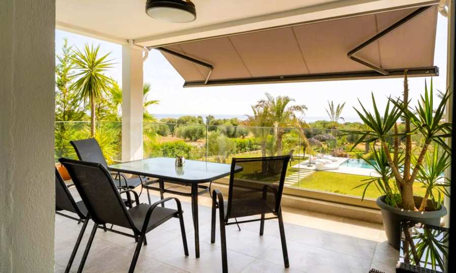 Терасите са проектирани така, че докато пиете сутрешното си еспресо, Егейско море да изглежда като ваш личен басейн. Синьото е толкова наситено, че ще ви трябва филтър... за очите.