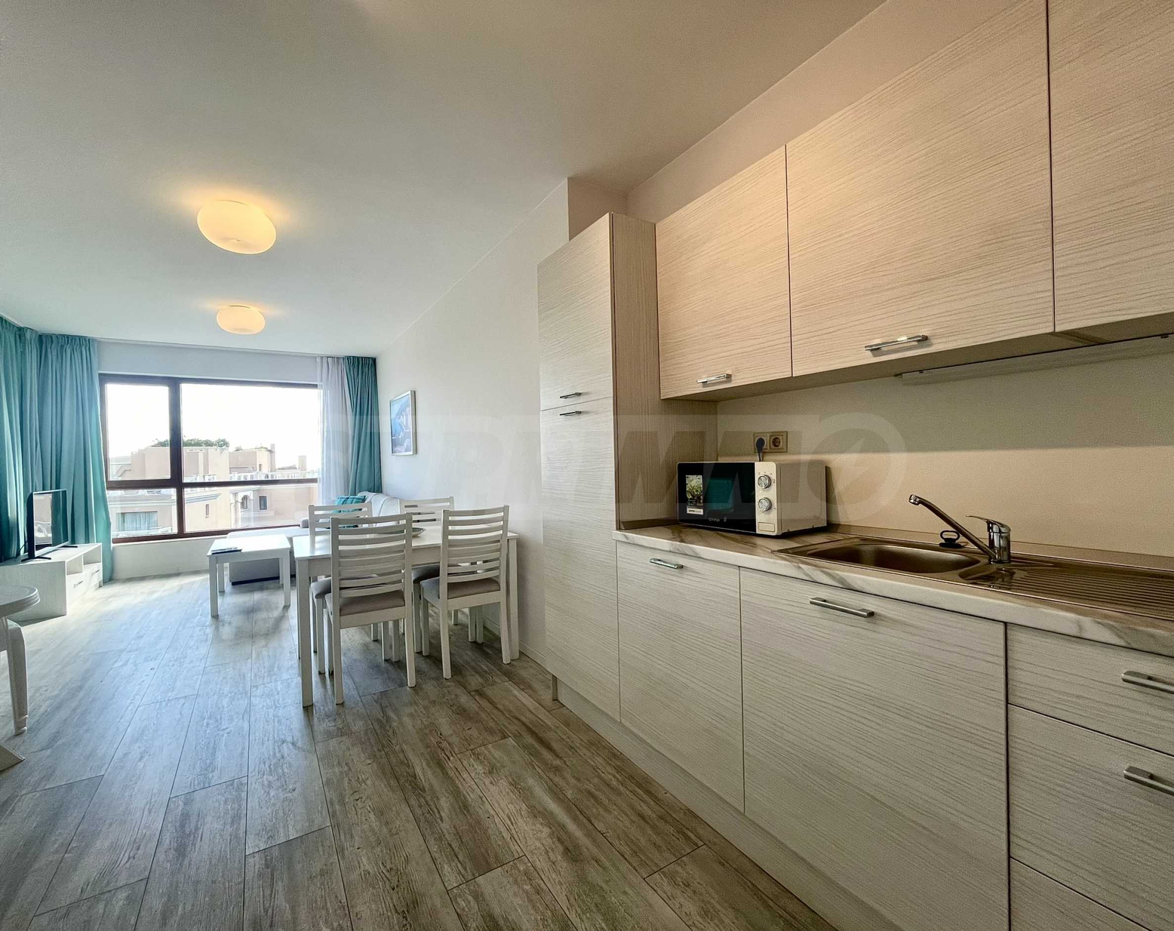 Представяме двустаен апартамент под наем в отлично поддържан, елитен комплекс на самия плаж Кабакум. Удобна локация в близост до автобусна спирка и на 5 минути с кола от супермаркет LIDL.