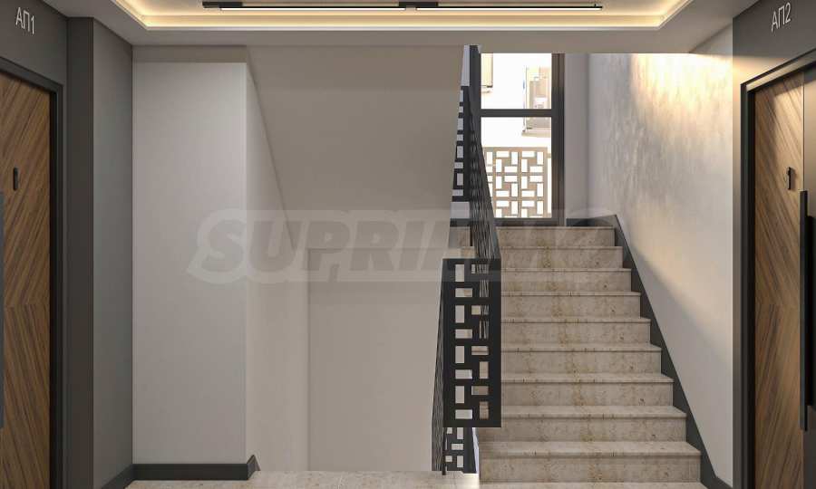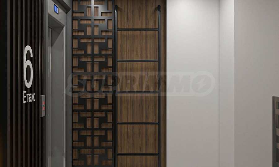 Имотът е с обща площ от 119.56 кв.м, разположен на 5-и етаж и се състои от: антре/коридор, дневна с кухня, две спални, две бани с тоалет, лоджия. Издава се в степен на завършеност по БДС, на шпакловка и замазка.